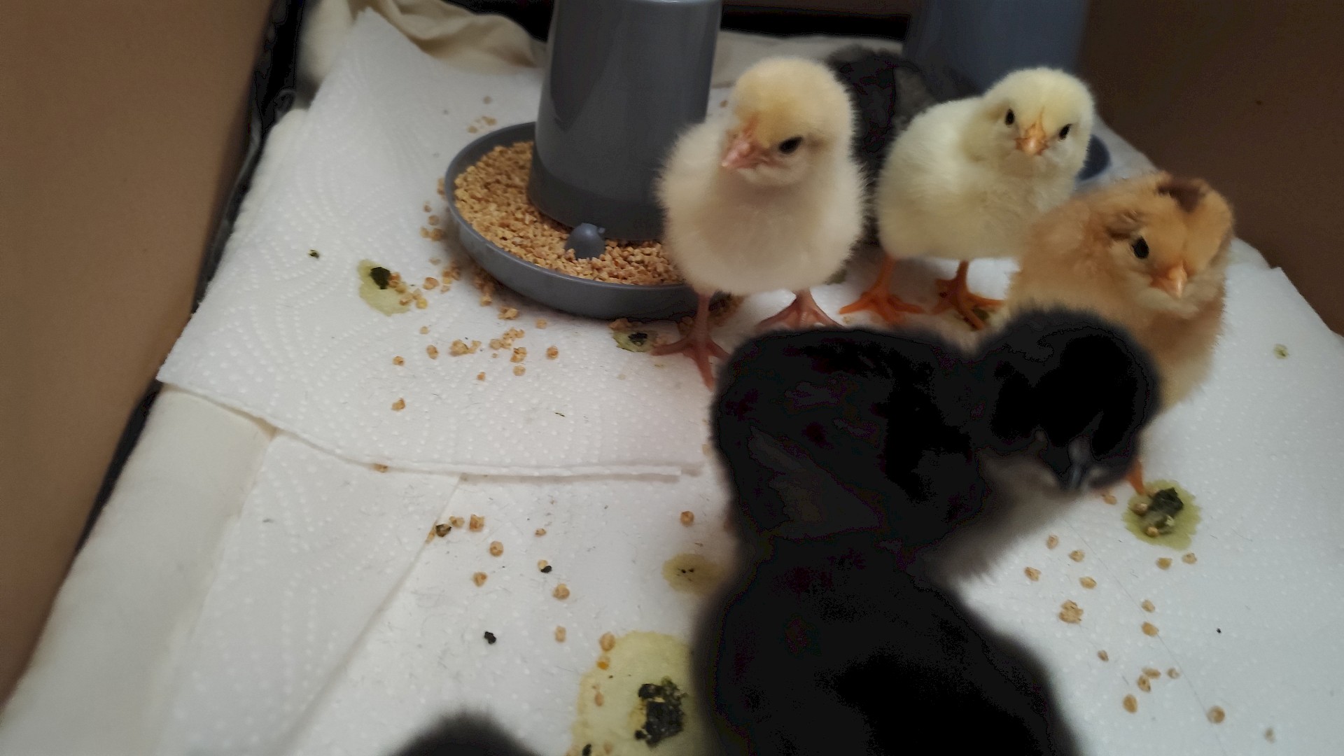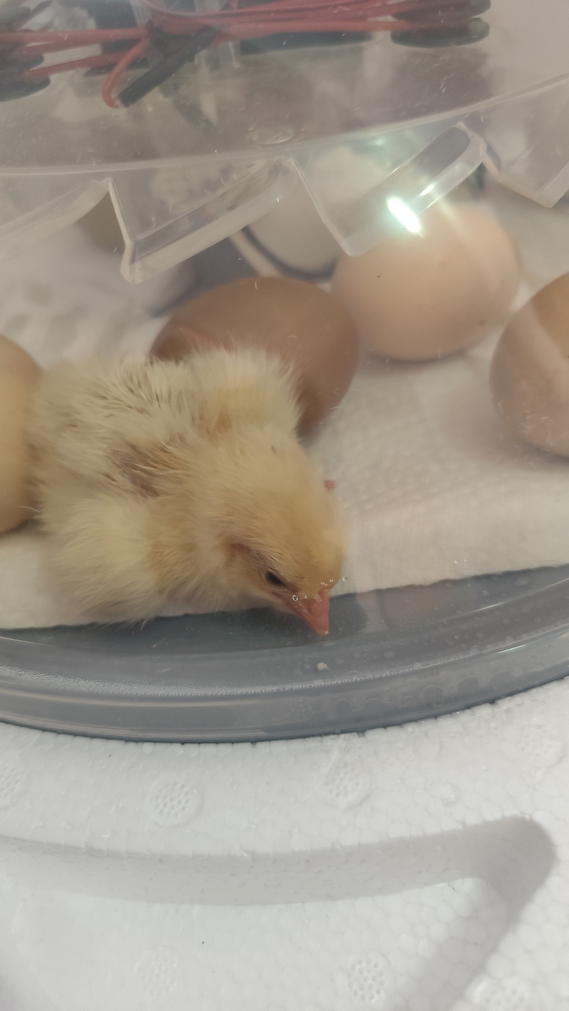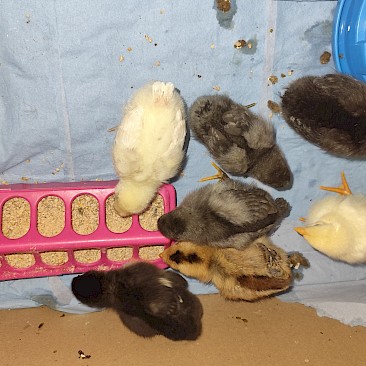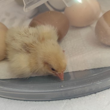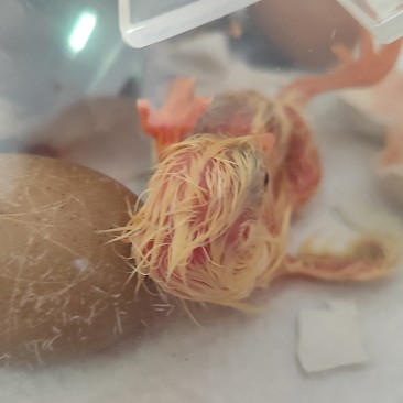 Dieser Bebrütungsvorgang dauert genau 21 Tage, an diesem Tag ist dann der Schlüpf-Tag und man kann live beobachten, wie sich die kleinen Küken aus ihren Eiern herauskämpfen. Es sieht sehr kräfteraubend aus. Damit die Küken ihren Flaum noch gut trocknen können, verbleiben sie noch ca. 24 Stunden im Brutautomat und dann bekommen sie ein größeres zu Hause.