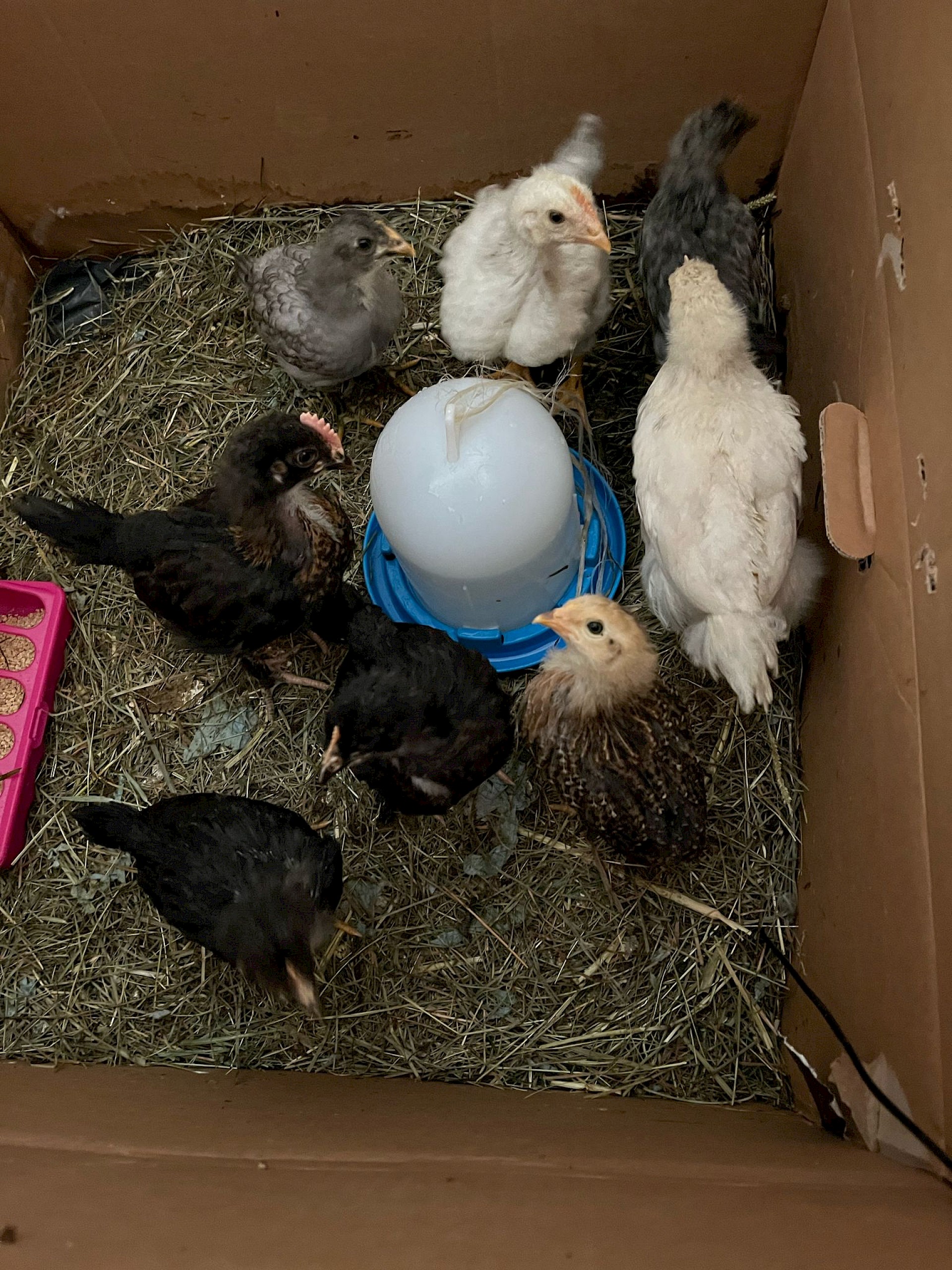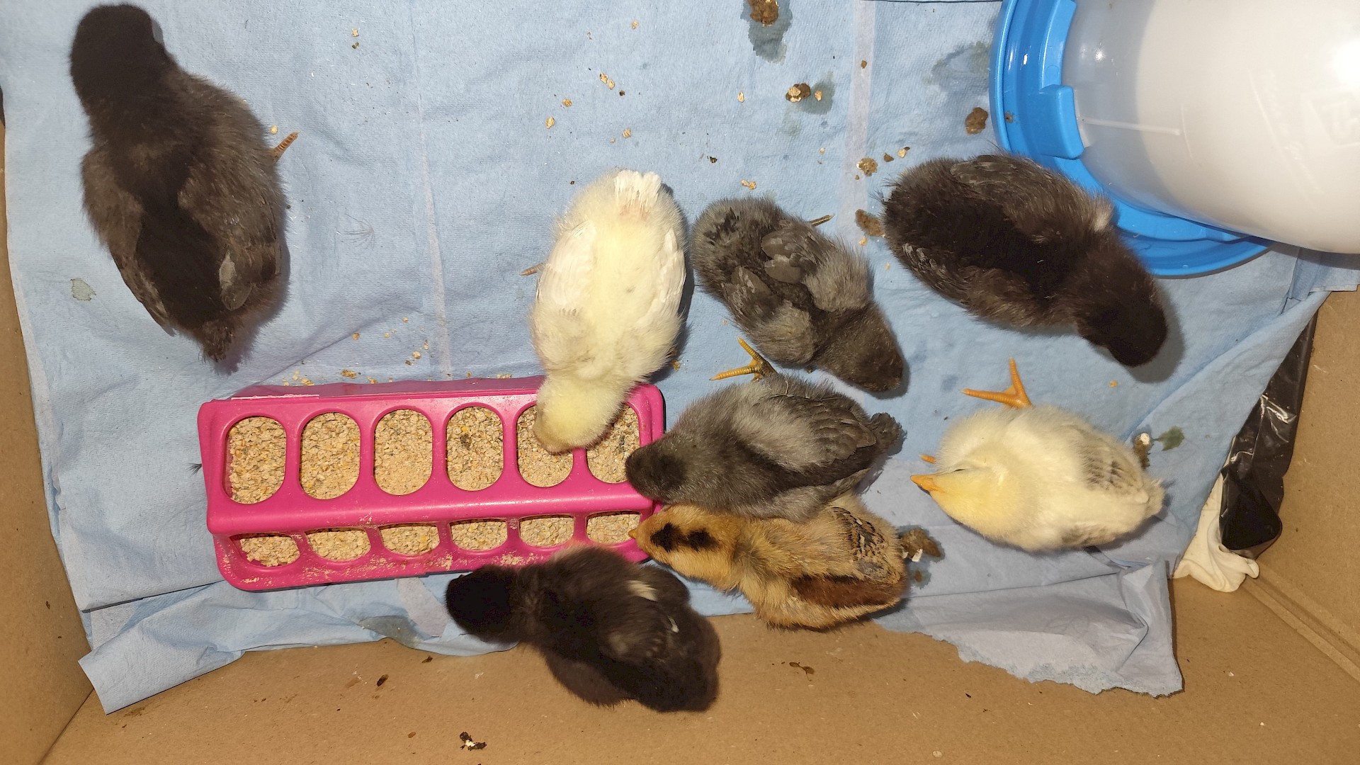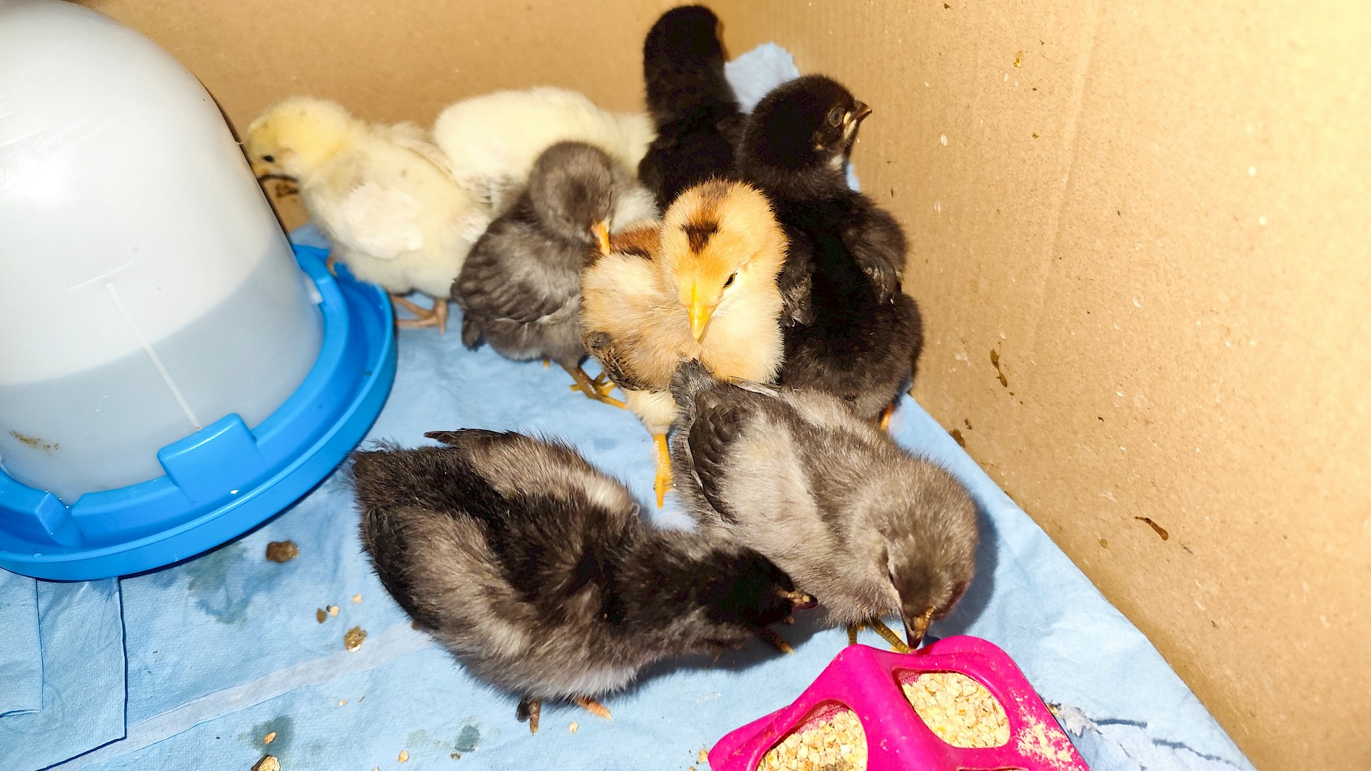 Dieser Bebrütungsvorgang dauert genau 21 Tage, an diesem Tag ist dann der Schlüpf-Tag und man kann live beobachten, wie sich die kleinen Küken aus ihren Eiern herauskämpfen. Es sieht sehr kräfteraubend aus. Damit die Küken ihren Flaum noch gut trocknen können, verbleiben sie noch ca. 24 Stunden im Brutautomat und dann bekommen sie ein größeres zu Hause.