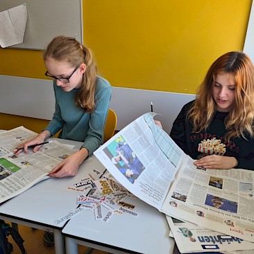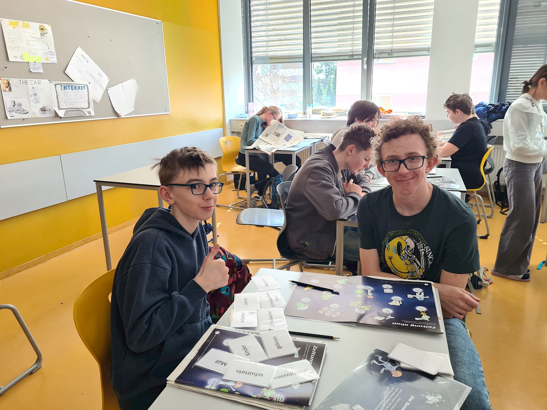 Im Rahmen eines Stationenbetriebs konnten die Schüler*innen wichtige Elemente des Journalismus entdecken. Sie setzten sich mit verschiedenen journalistischen Textsorten auseinander, lernten die unterschiedlichen Ressorts einer Zeitung kennen, gestalteten kreative Schlagzeilen und schlüpften mit dem Mikro in der Hand in die Rolle von Reporter*innen.