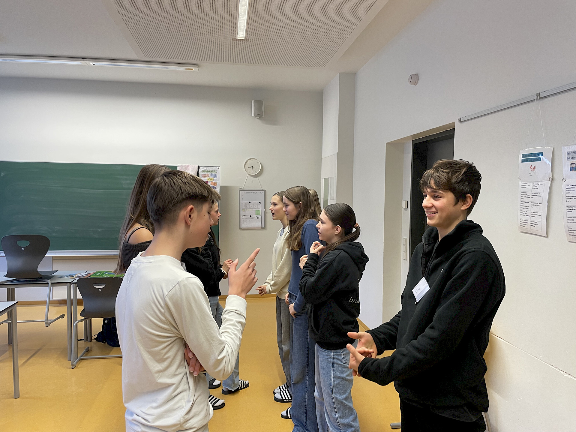 Unter der Anleitung von Siofra (aus Irland) und Jacob (aus den USA) hieß es täglich sechs Einheiten lang “English only“ und die Schüler/innen bekamen pro Workshop-Tag eine Aufgabe gestellt: zum einen hatten sie einen Werbespot (3A) bzw. einen Kurzfilm (4A) zu drehen, zum anderen ein Theaterstück zu einem selbstgewählten Thema zu schreiben, einzustudieren und aufzuführen. Mit verschiedenen Übungen aus der Theaterpädagogik bereiteten die zwei Natives die Schüler*innen auf ihre Rollen und Aufgaben vor und unterstützten sie beim Verfassen von Skripts und Drehbüchern sowie beim Umsetzen ihrer Ideen.