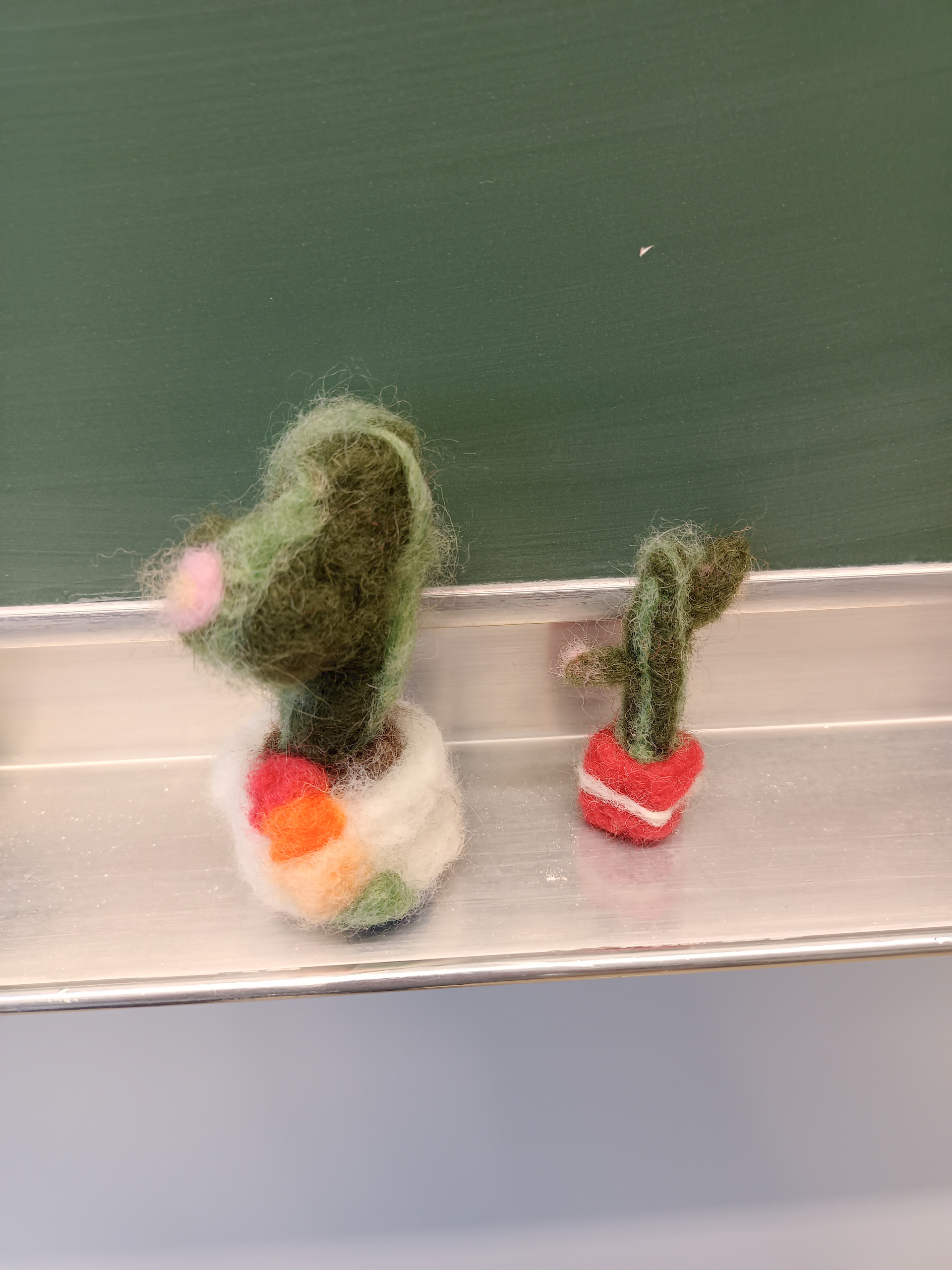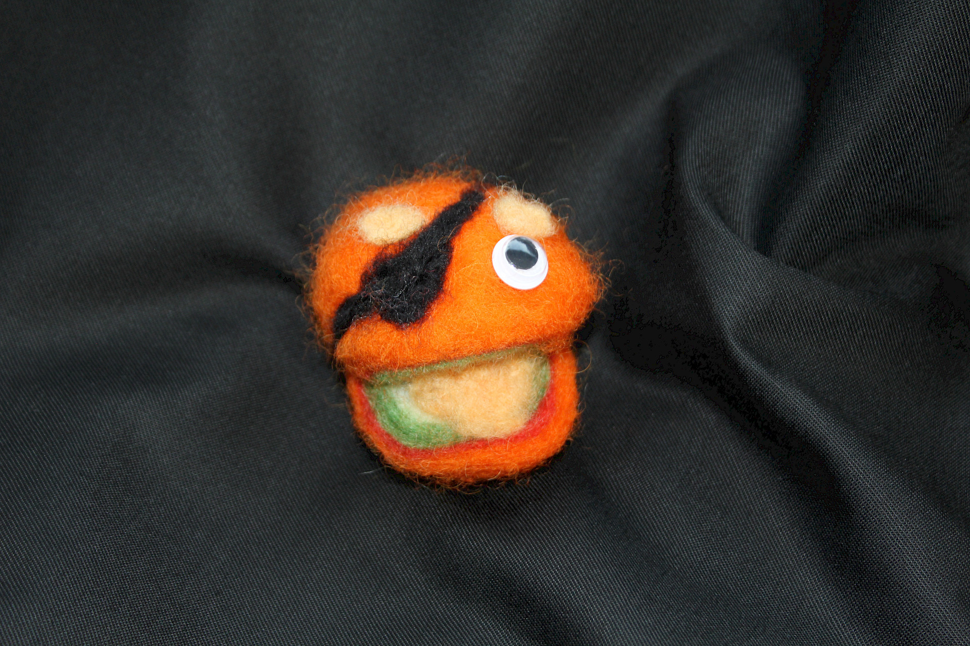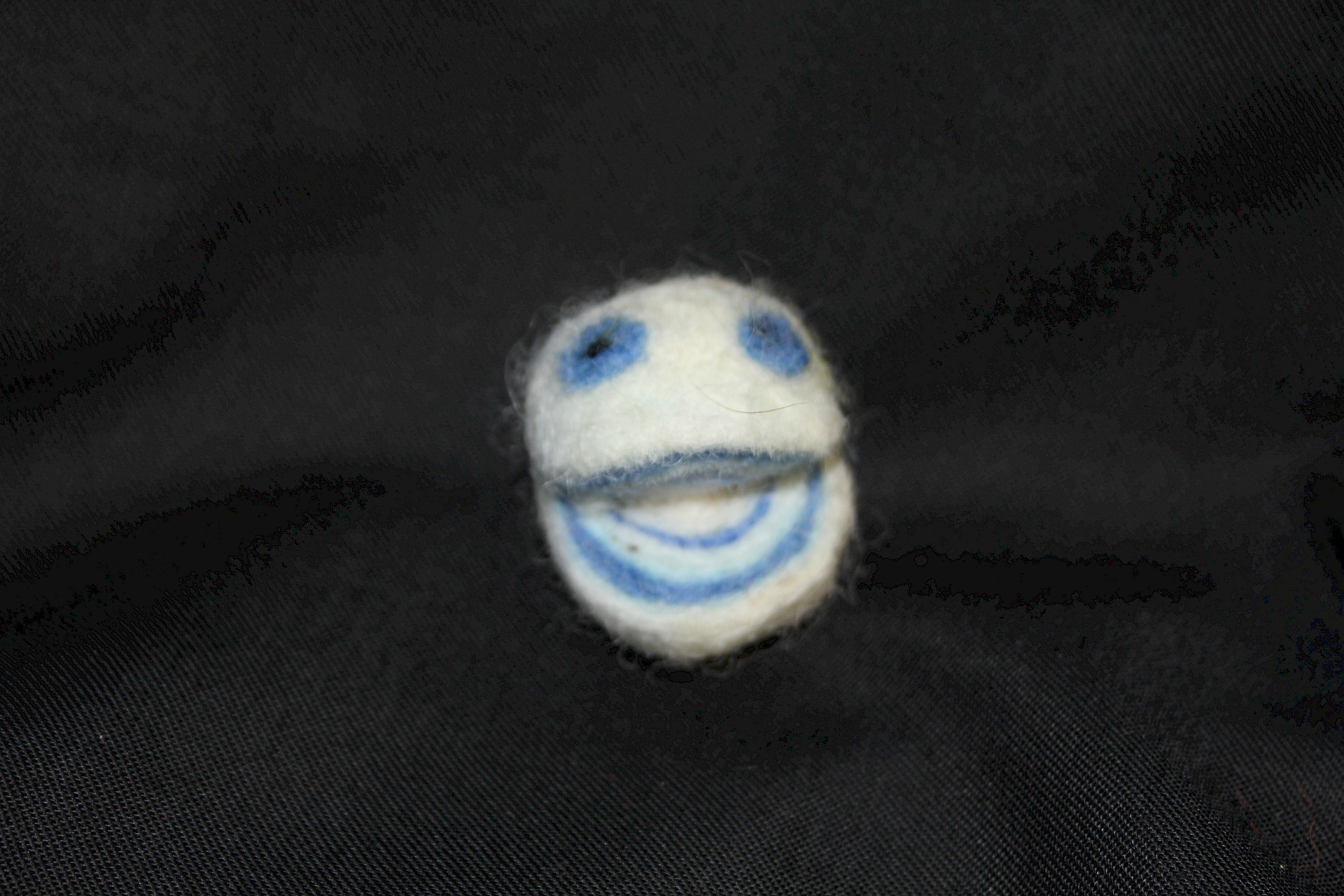 Durch die Nassfilztechnik wurden Filzkugeln in verschiedenen Farben schichtweise gefilzt und dann getrocknet. Danach konnte man die Filzkugeln auseinanderschneiden und weiter dekorieren zu kleinen Filzmonstern.