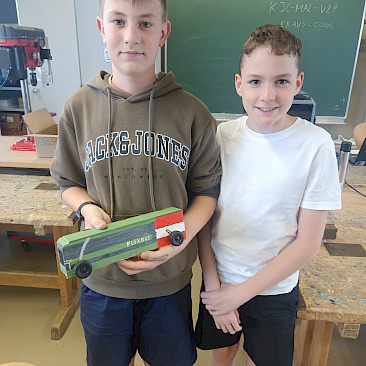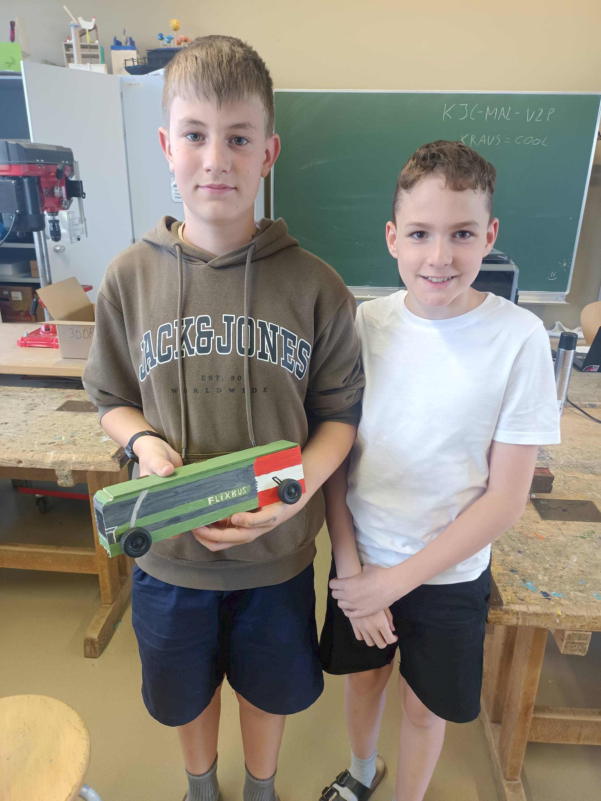 Als Zusatzarbeit wurde von zwei Schülern der 3NA-Klasse ein ferngesteuerter Modellbus gebaut, welcher auch eine Beleuchtung hat. Durch eine detailreiche Lackierung sieht das Modell täuschend echt aus.