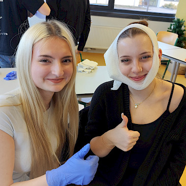 Der Kurs vermittelte praxisnah und anschaulich die wesentlichen Grundlagen der Ersten Hilfe: von der Sicherung einer Unfallstelle über das Absetzen eines Notrufs bis hin zur stabilen Seitenlage. Auch die Wiederbelebung inklusive Defibrillation, Maßnahmen zur Blutstillung, Wundversorgung sowie der Umgang mit Knochenbrüchen wurden trainiert. Ebenso übten die Jugendlichen, Verletzte bis zum Eintreffen des Rettungsdienstes bestmöglich zu betreuen und Menschen in akuter Gefahr sicher zu retten.