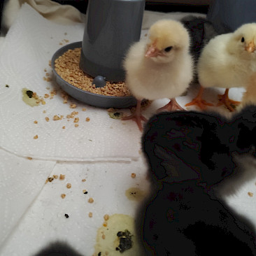 In Biologie wurden befruchtete Eier aus einem Zuchthühnerbauernhof in einem Brutkasten ausgebrütet und das Aufwachsen der kleinen geschlüpften über einige Wochen beobachtet. – Die waren dann für diesen Zeitraum die „großen Lieblinge“ im Brucknergym Wels. Die Beschäftigung mit Befruchtung, Tierhaltung, Vor- und Nachteilen von verschiedenen Chemikalieneinsätzen, sowie die Untersuchung von Eiern waren dort weitere Themen, die durch Arbeitsblätter, Internetrecherchen, Plakate bei „Projekttagen“ aufgearbeitet wurden.
