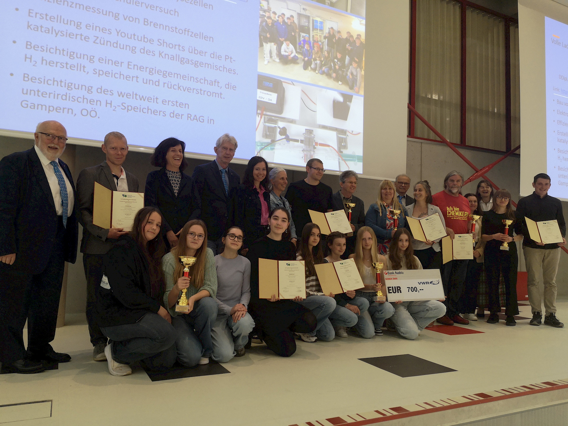 In der Chemie wurde die (nachhaltige) Herstellung von Wasserstoff thematisiert und eine Elektrolyse von Wasser selbst durchgeführt um die in der Physik durchgeführten „Wettrennenversuche“ zwischen einem geschlüpften Hahn und dem bei den Projekthilfen mitgegebenen Wasserstoff Brennstoffzellenauto eine „Green Chemistry Grundlage“ zu geben.