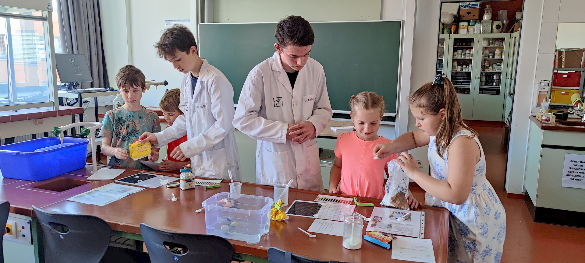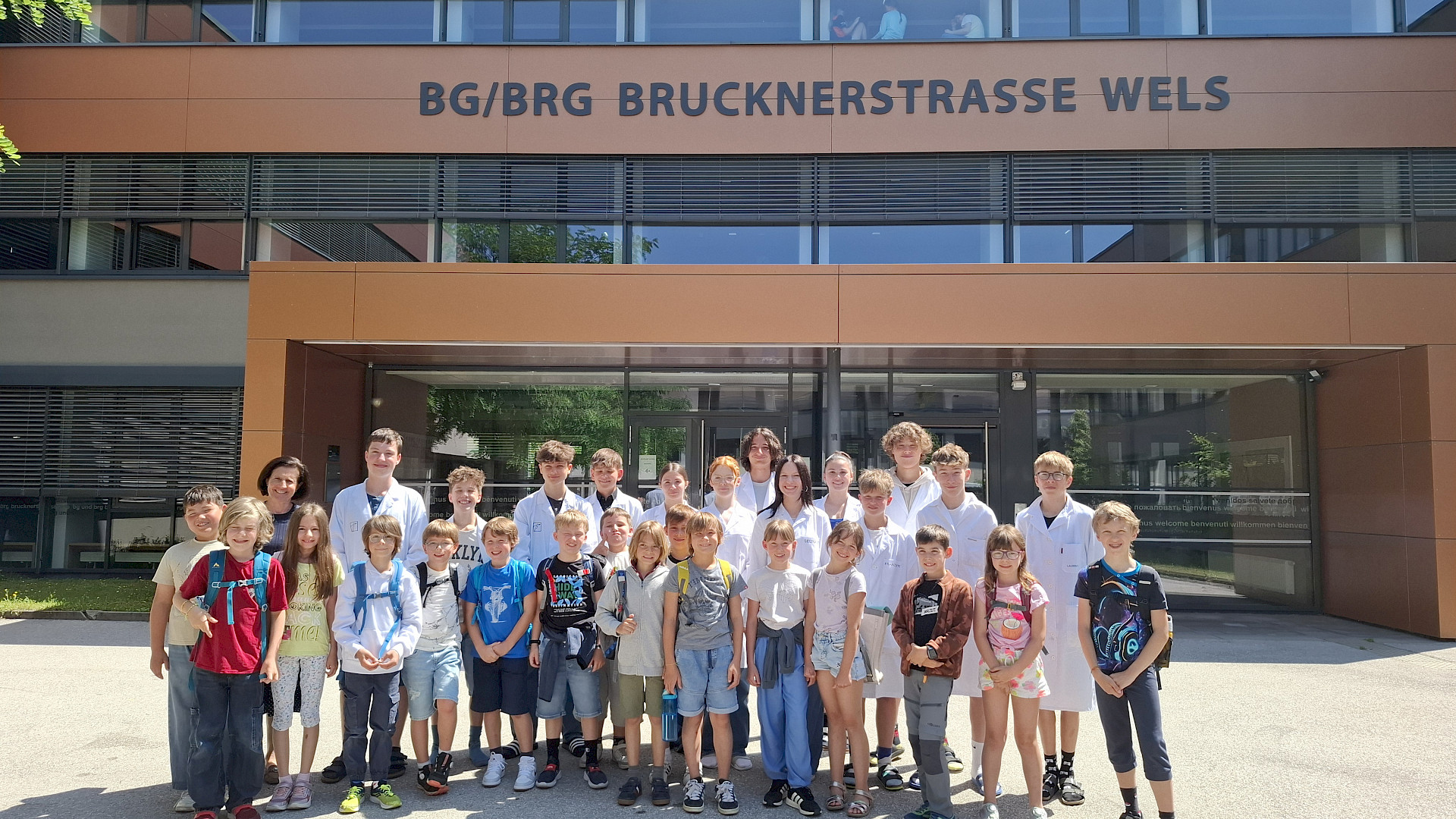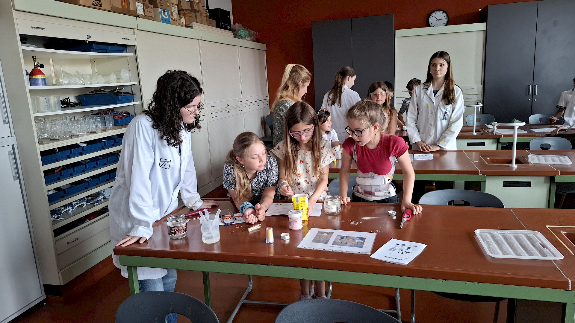 Der Besuch der Volksschulklassen im Chemie-Labor ist immer ein besonderes Highlight für unsere Schüler*innen der vierten NAWI-Klassen. Im Laufe des Schuljahres wurden Experimente ausprobiert, Versuchsanleitungen erstellt und überlegt, wie man die Theorie der Versuche kindgerecht erklären kann.