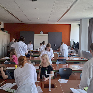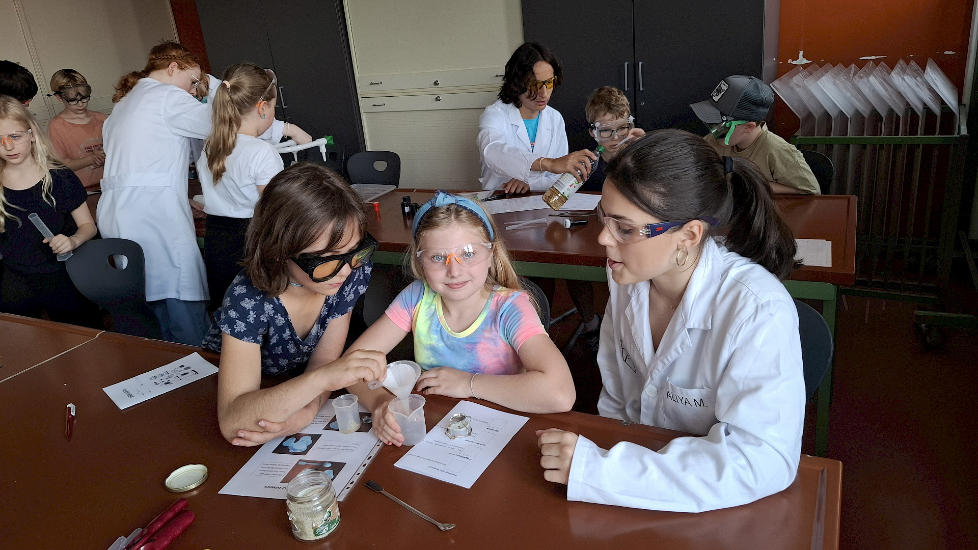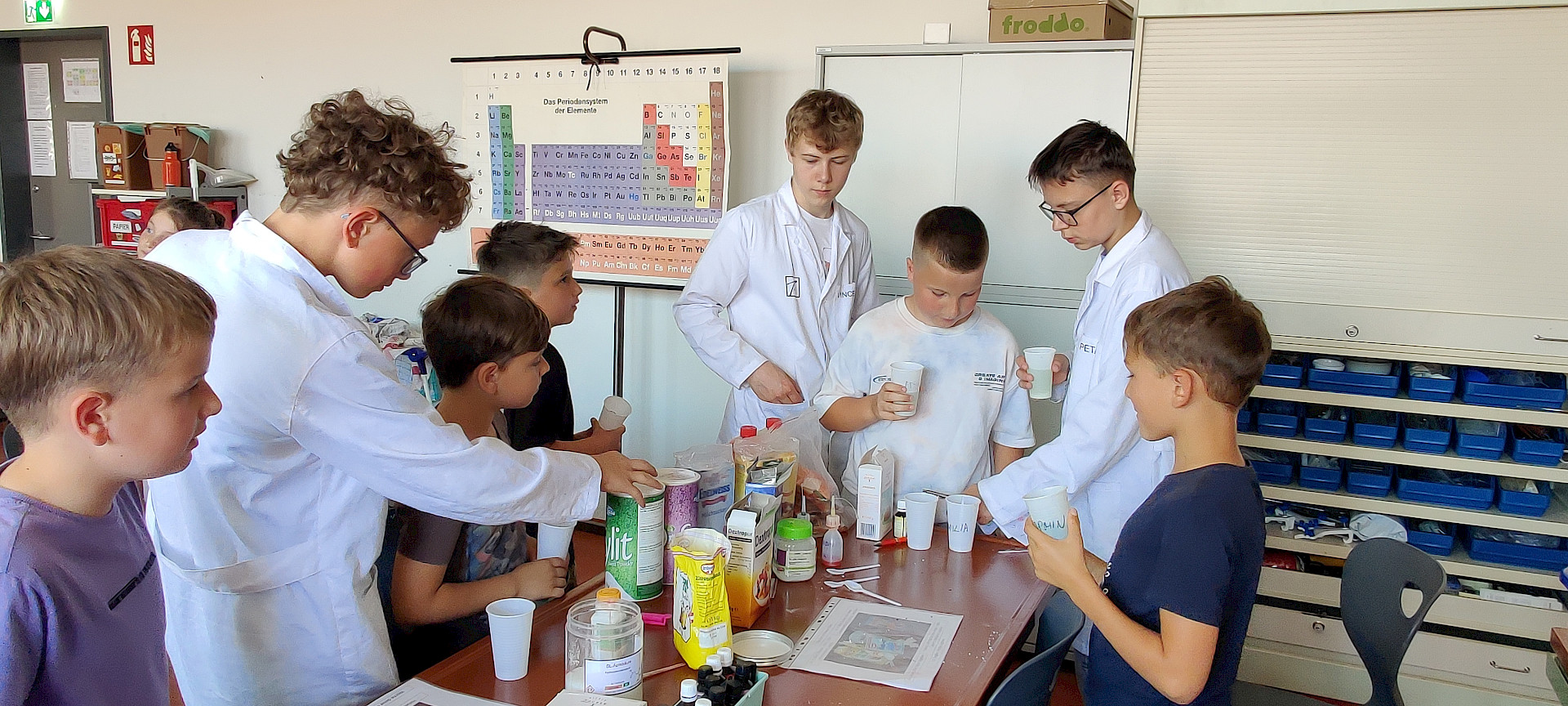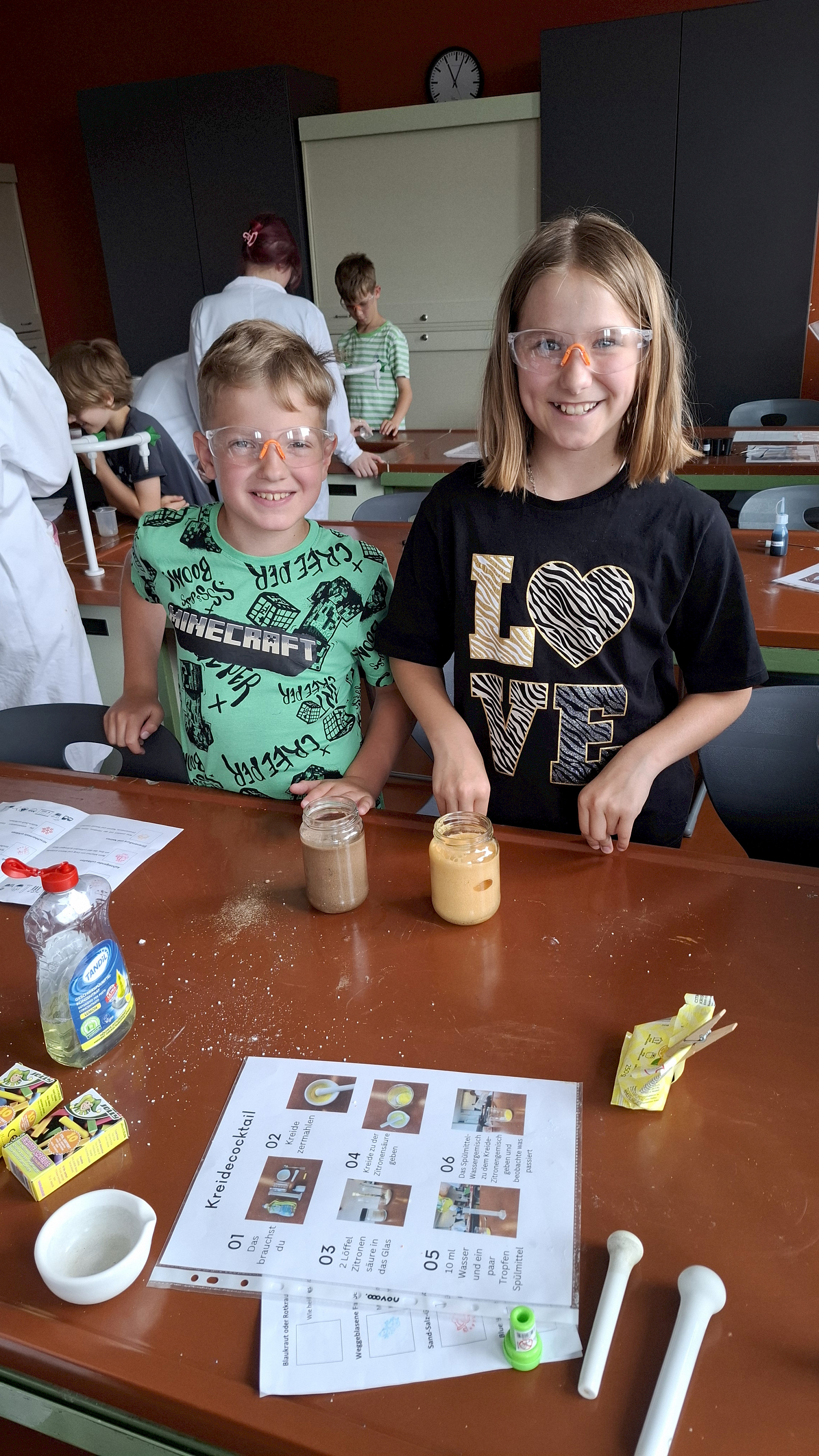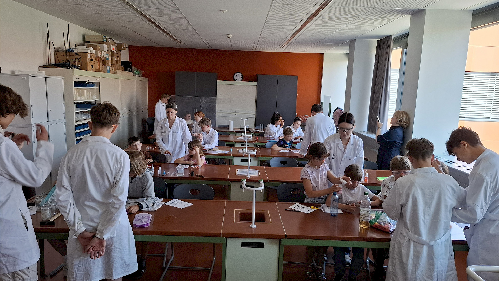 Der Besuch der Volksschulklassen im Chemie-Labor ist immer ein besonderes Highlight für unsere Schüler*innen der vierten NAWI-Klassen. Im Laufe des Schuljahres wurden Experimente ausprobiert, Versuchsanleitungen erstellt und überlegt, wie man die Theorie der Versuche kindgerecht erklären kann.