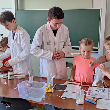 Die jungen Gäste waren begeistert vom gemeinsamen Forschen und für die Schüler*innen der vierten NAWI-Klassen war es eine wertvolle Erfahrung, einmal selbst in die Rolle der Lehrperson zu schlüpfen und ihr Wissen weiterzugeben.