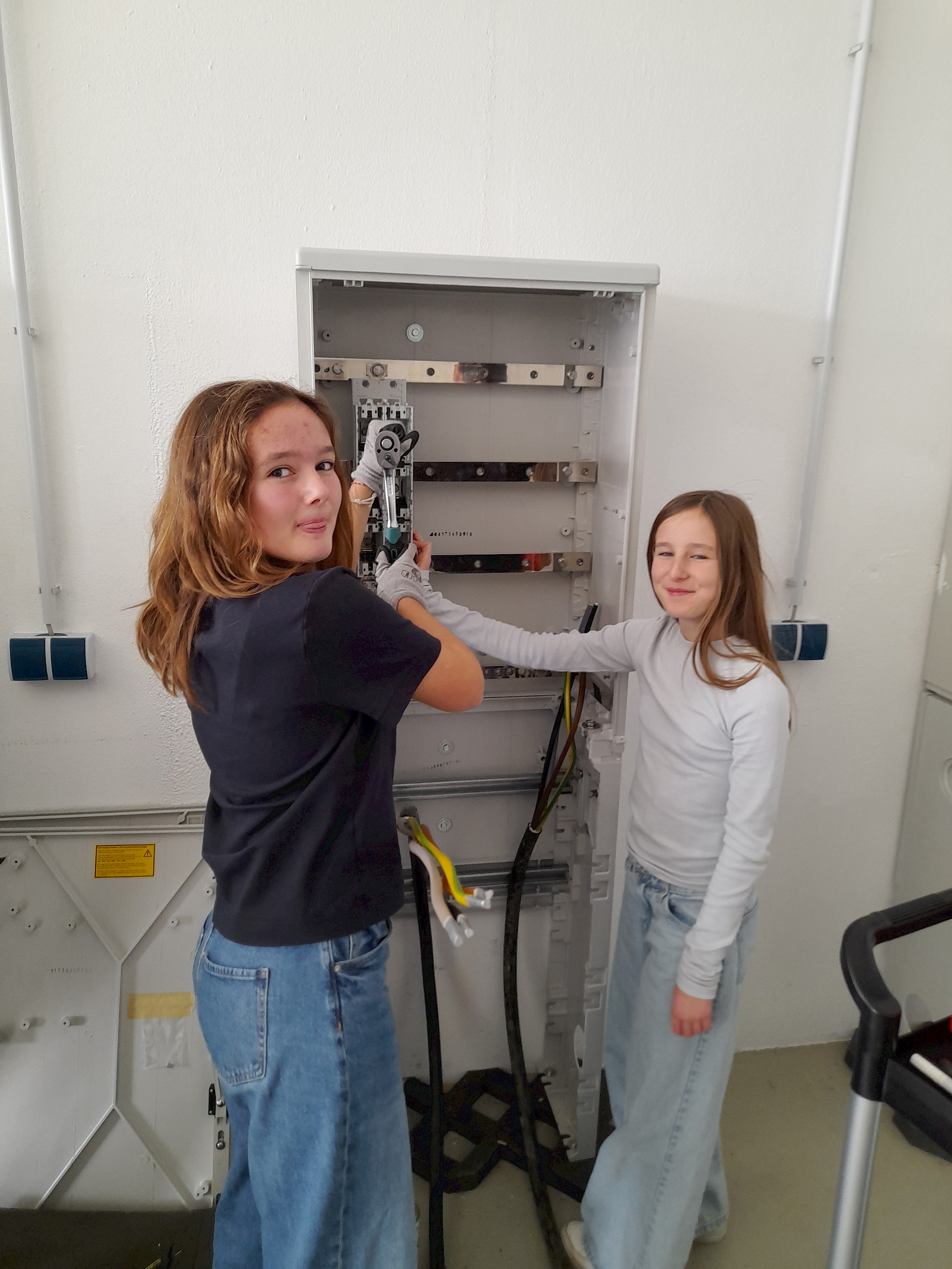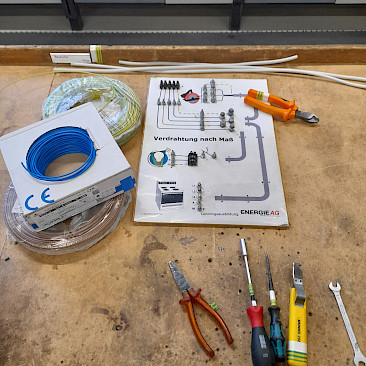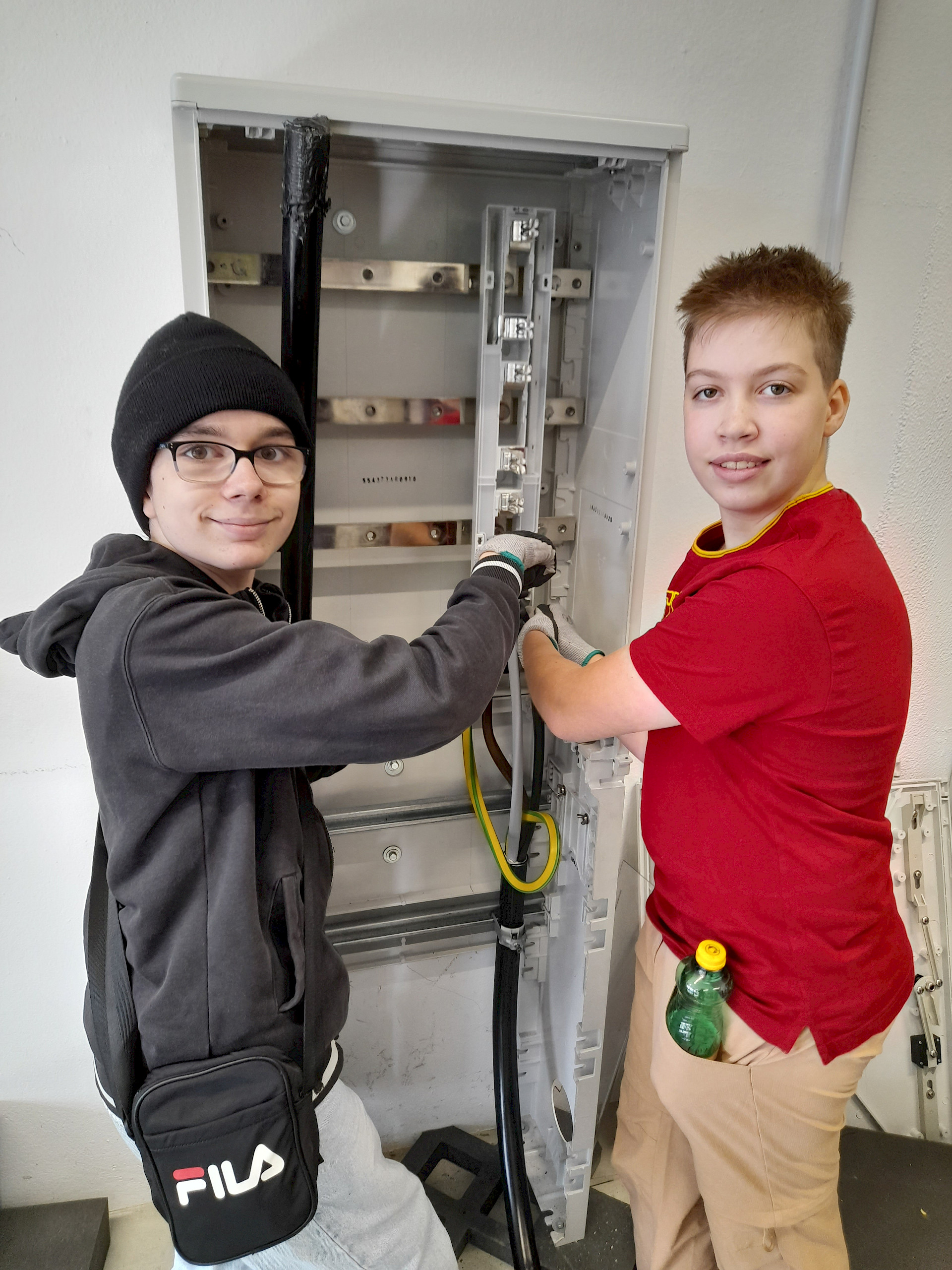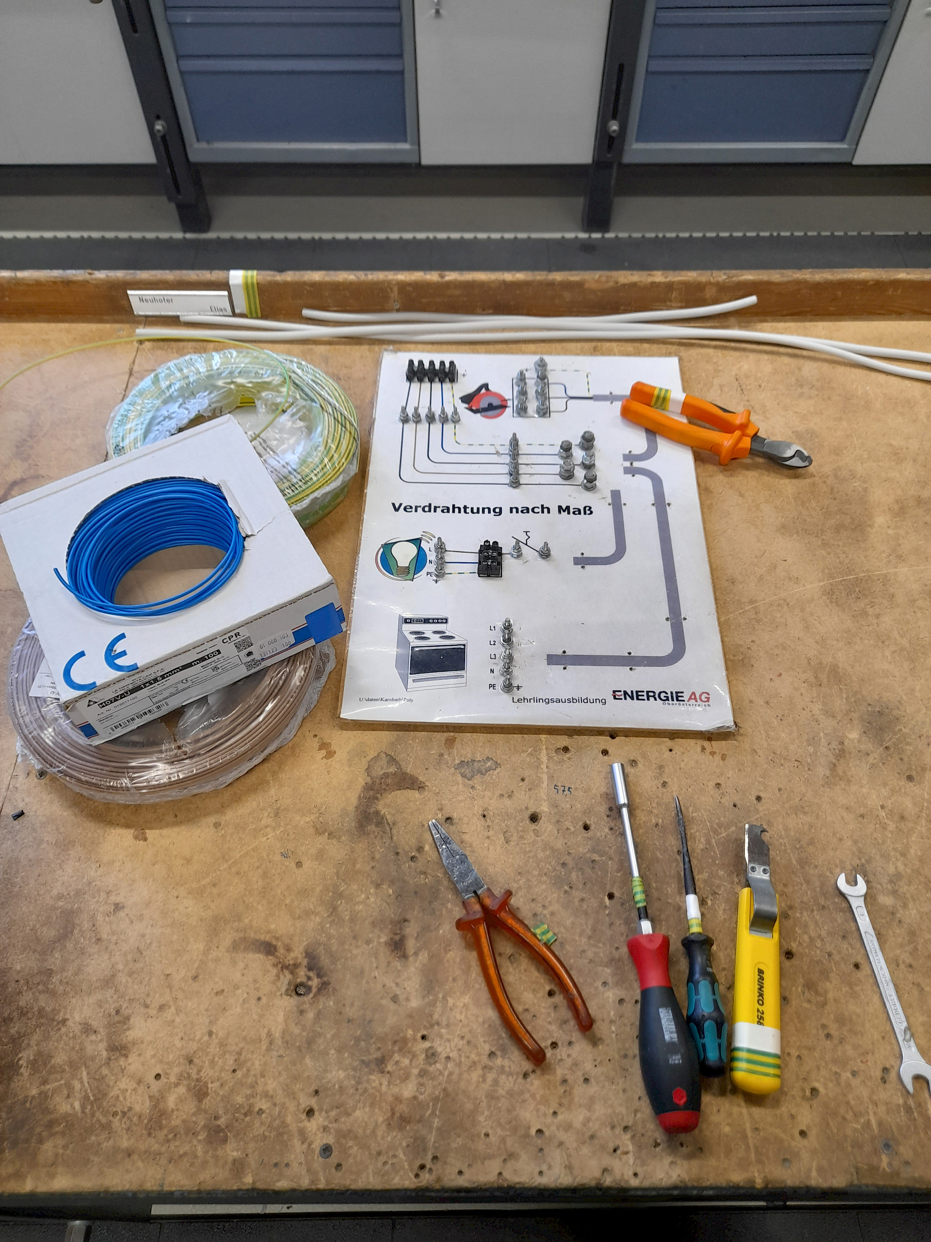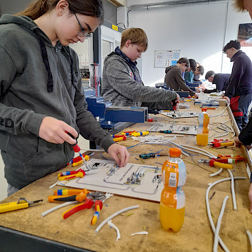 An der zweiten Station standen Verdrahtungsübungen im Mittelpunkt, wie sie in typischen Haushaltsinstallationen vorkommen. Die Schüler*innen arbeiteten mit verschiedenen Kabeltypen und lernten die Aufgabe von Schutzleiter, Neutralleiter und Außenleiter kennen.