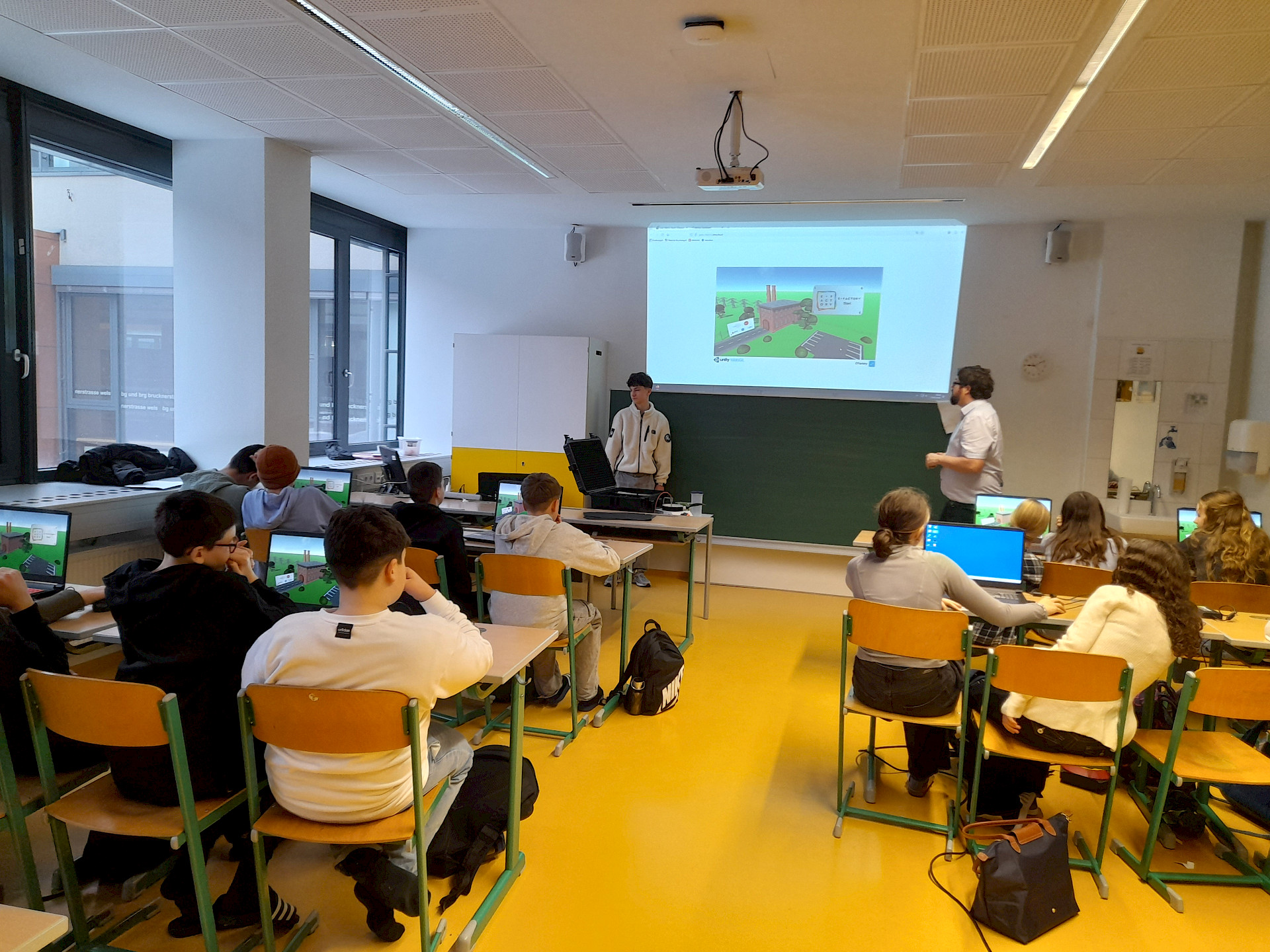 In einer interaktiven 3D-Computersimulation übernahmen die Jugendlichen die Rolle von ProduktionsleiterInnen und steuerten eine virtuelle Schokoladenfabrik. Im Mittelpunkt stand weniger das Produkt als vielmehr die Frage, wie Energie effizient eingesetzt werden kann. Die Schüler*innen entschieden, ob fossile oder erneuerbare Energiequellen genutzt werden, analysierten den Energieverbrauch einzelner Maschinen und wählten Maßnahmen zur Reduktion von CO₂-Emissionen.