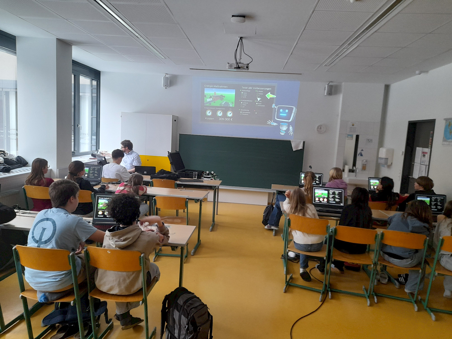 Mit viel Neugier experimentierten die Schüler*innen mit unterschiedlichen Einstellungen, verglichen Energieverbrauch und Emissionen und diskutierten die Auswirkungen ihrer Entscheidungen auf Umwelt, Klima und Kosten.