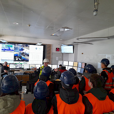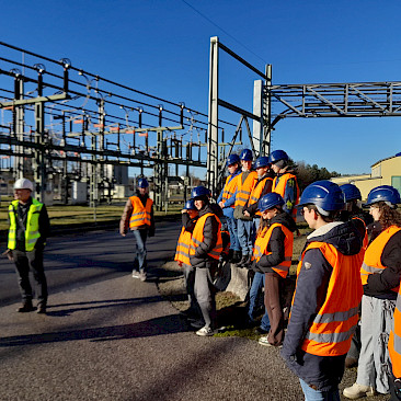 Danach ging es auf Erkundungstour durchs Kraftwerk: Wir bestaunten das Biomassekraftwerk, die Turbinenhallen und den Kontrollraum, in dem – kaum zu glauben – nur fünf Personen ausreichen, um das ganze Kraftwerk im Vollbetrieb zu steuern. Außerdem erfuhren wir, wie der Strom seinen Weg von der Erzeugung bis in unsere Steckdosen nimmt.