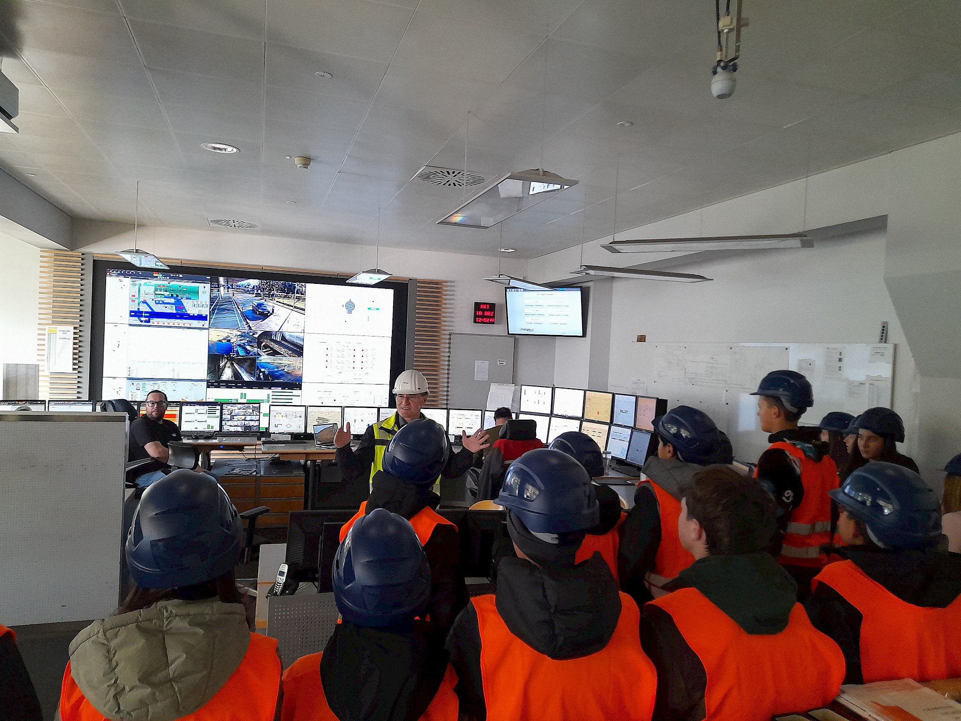 Am 10. Dezember 2025 besuchte die 4D-Klasse das Kraftwerk Timelkam, einen der modernsten Kraftwerksstandorte Europas. Gleich zu Beginn durften wir im Museum ein spannendes Video über Strom, die Entstehung der Kraftwerke und das Verhalten am Kraftwerksgelände ansehen, um uns auf das Kommende einzustimmen.