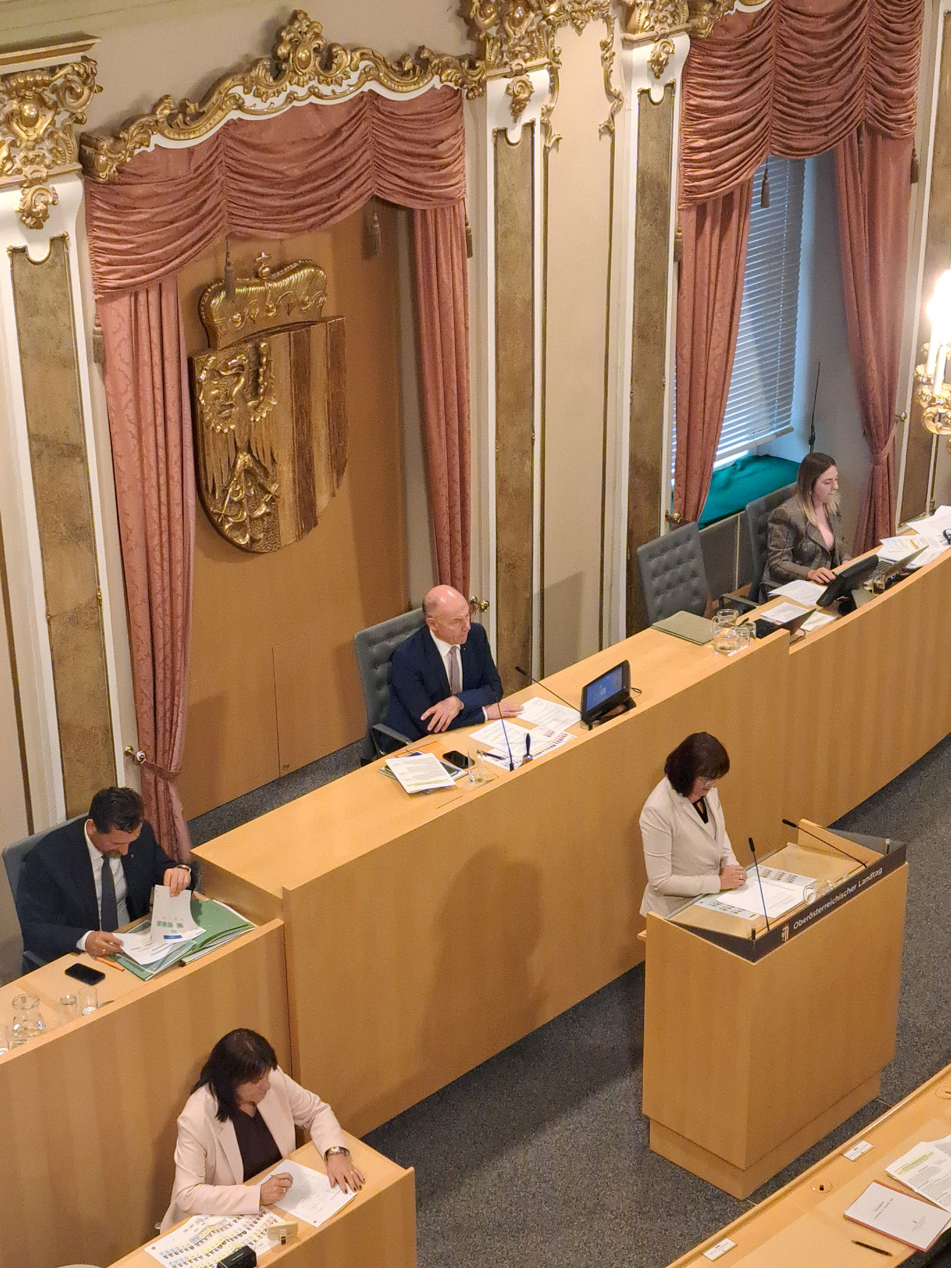Diese und viele andere Fragen stellten Schüler*innen des Brucknergymnasiums Wels am 25. September 2025 Abgeordneten des oberösterreichischen Landtags. Denn im Rahmen einer Exkursion hatten alle 6. Klässler*innen die Gelegenheit, eine laufende Landtagssitzung von der Besuchertribüne aus zu verfolgen und mit Vertreter*innen aller Parteien ins Gespräch zu kommen. Dabei erhielten die Schüler*innen einen Einblick in die parlamentarische Arbeit und lernten politische Abläufe und verschiedene Positionen kennen.