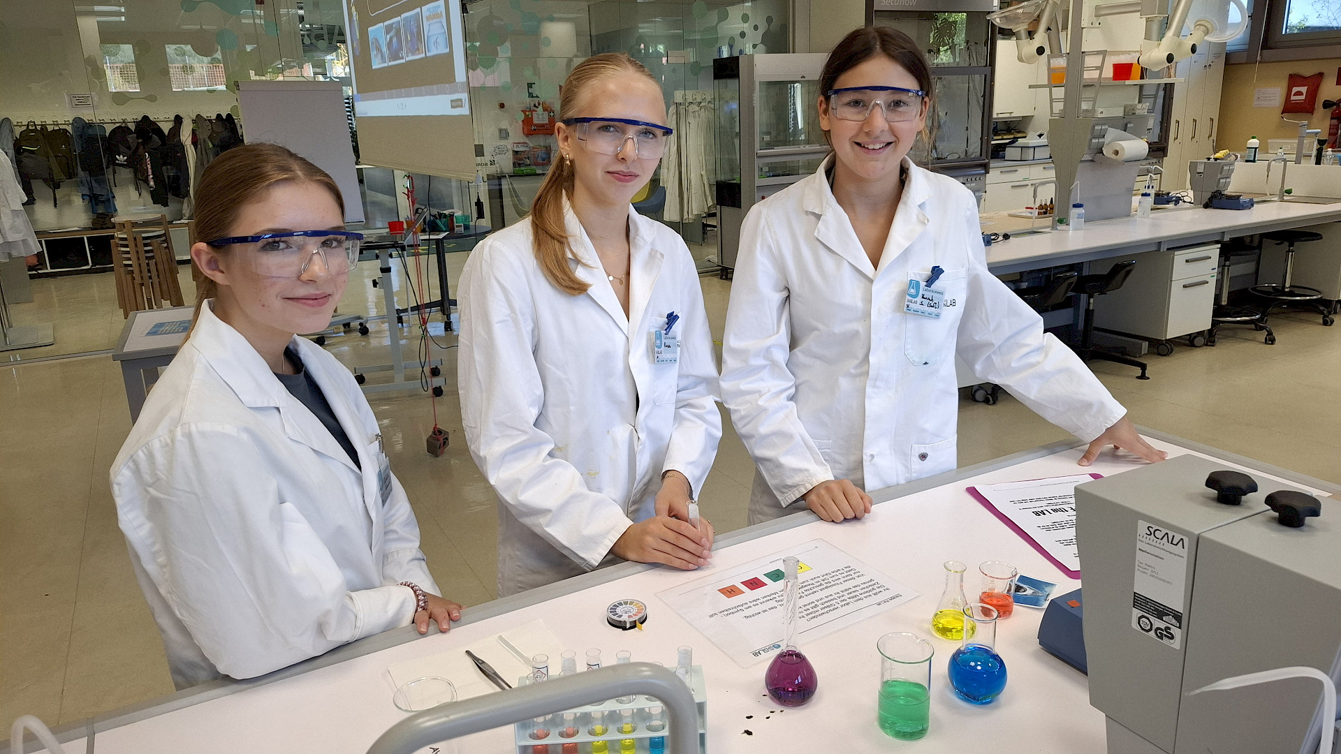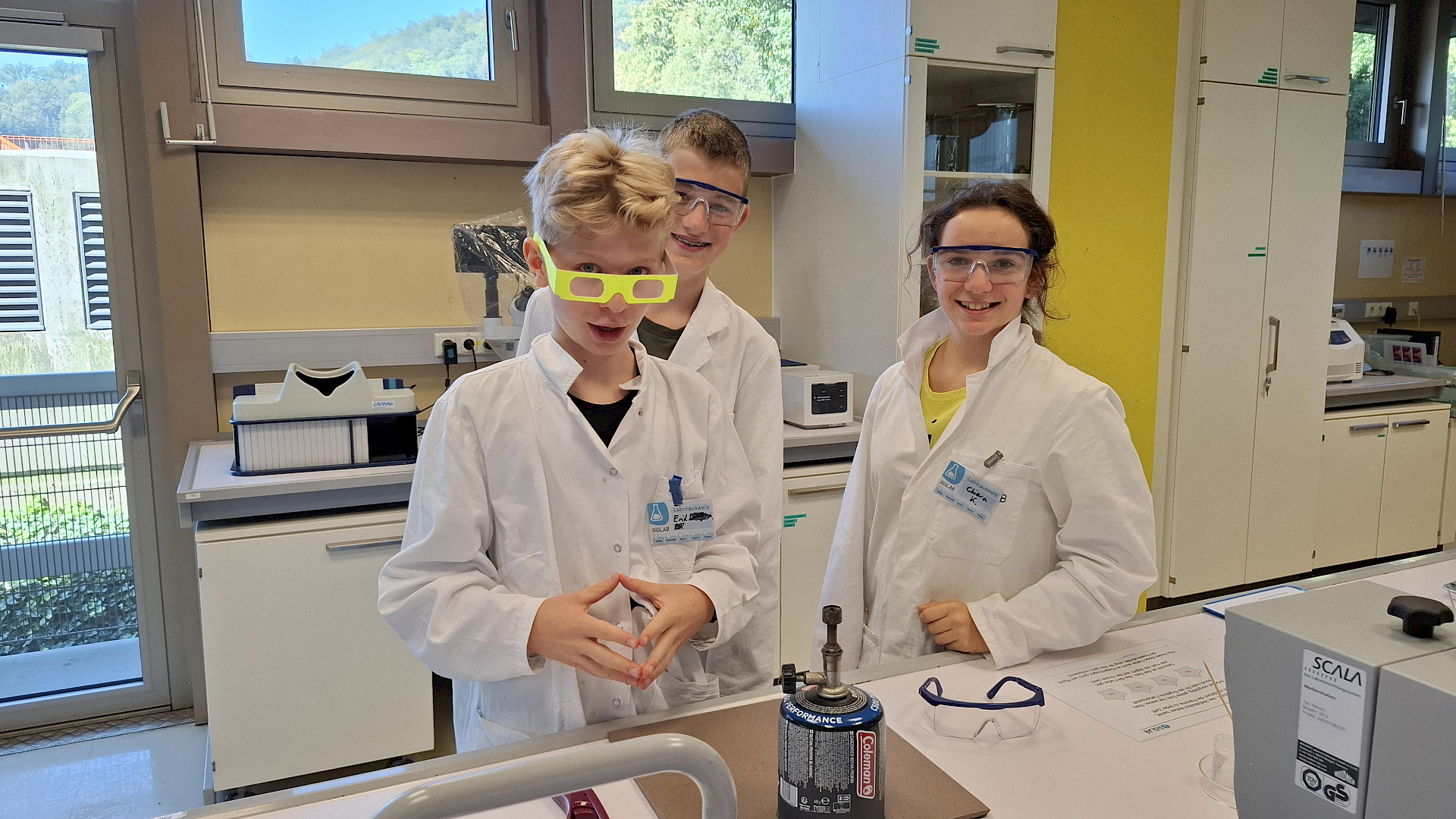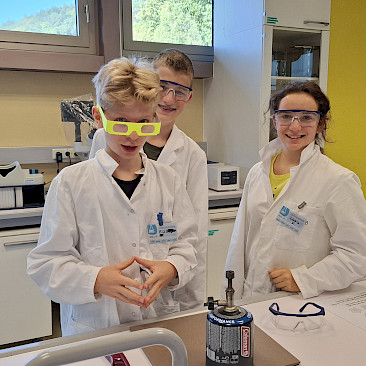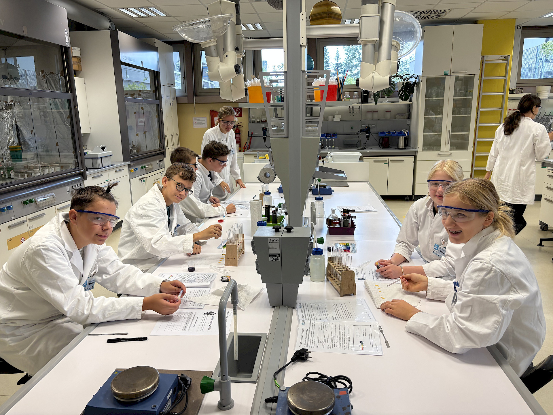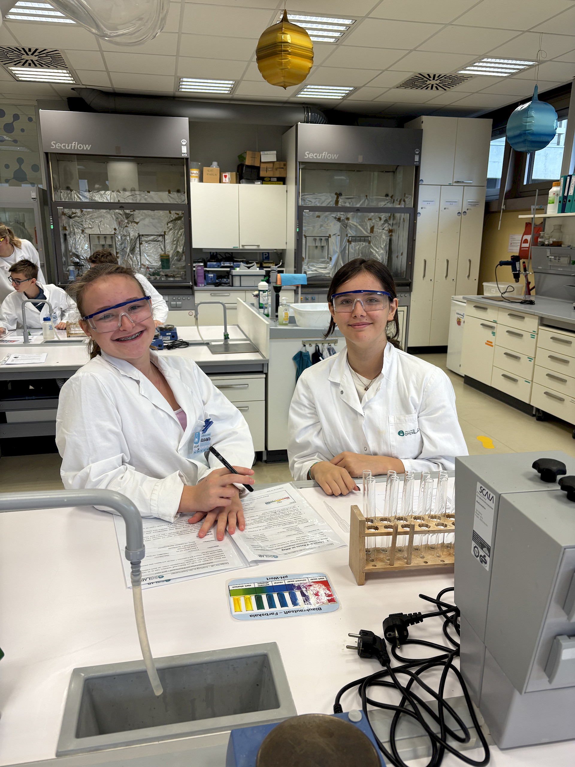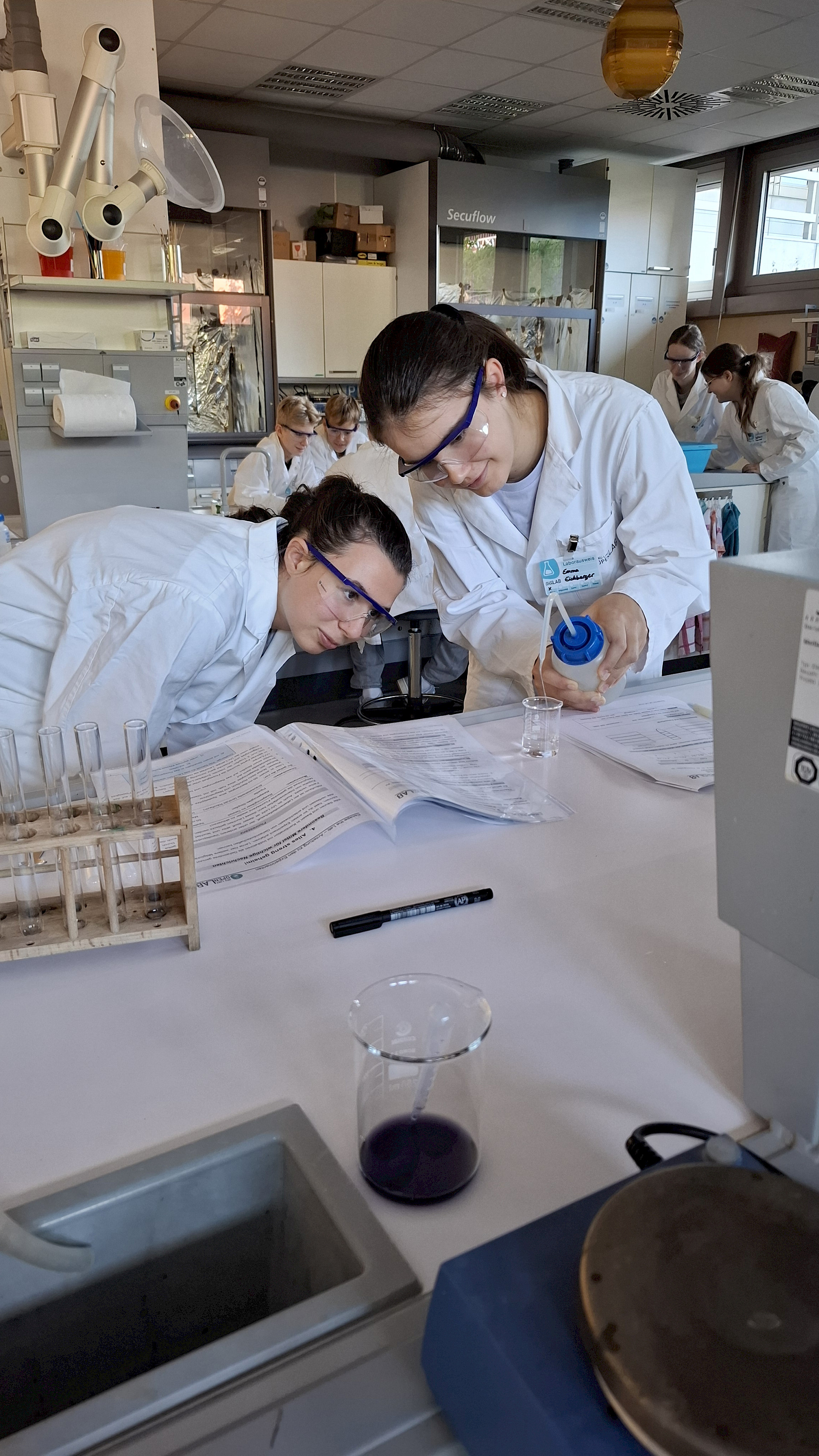 Für die Schüler*innen der 4NA und 4NB steht heuer Chemie-Labor auf dem Stundenplan. Aus diesem Grund stand gleich in den ersten Schulwochen ein Besuch im Open Lab der JKU Linz an. Ausgestattet mit der notwendigen Schutzkleidung durften die Schüler*innen dort selbst im Labor ausprobieren, ob man Flüssigkeiten stapeln kann oder was das Gegenteil von sauer ist. Außerdem wurde herausgefunden, wie die Farben in Feuerwerken entstehen und welche Möglichkeiten es gibt, Geheimschriften sichtbar zu machen.