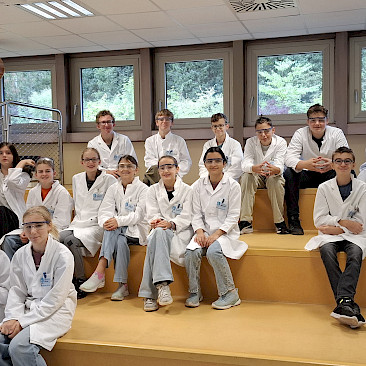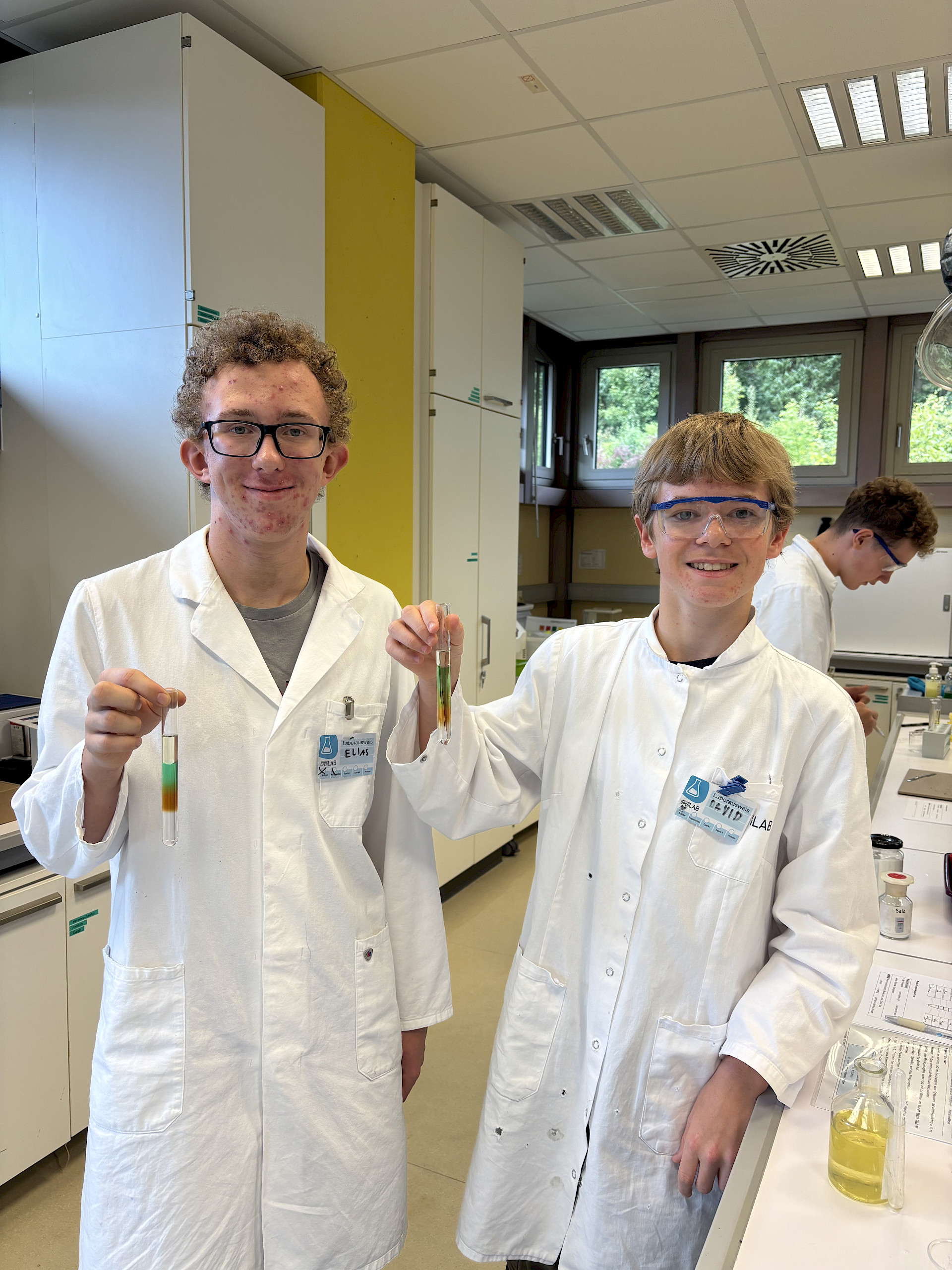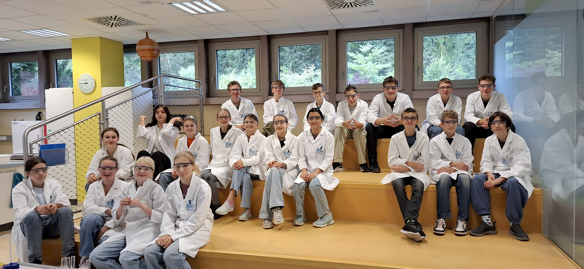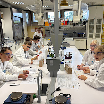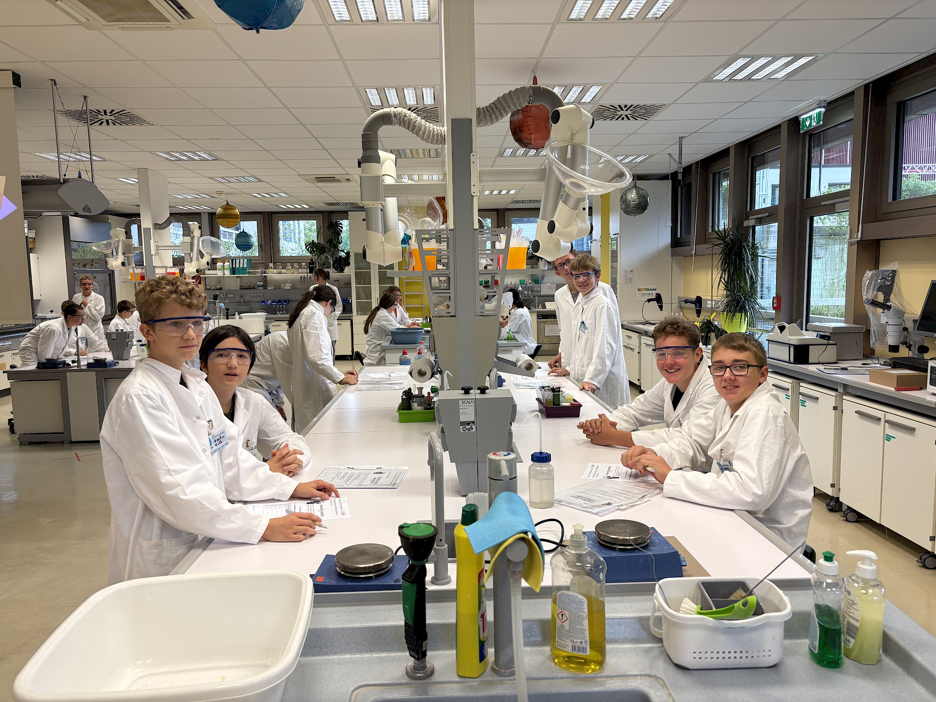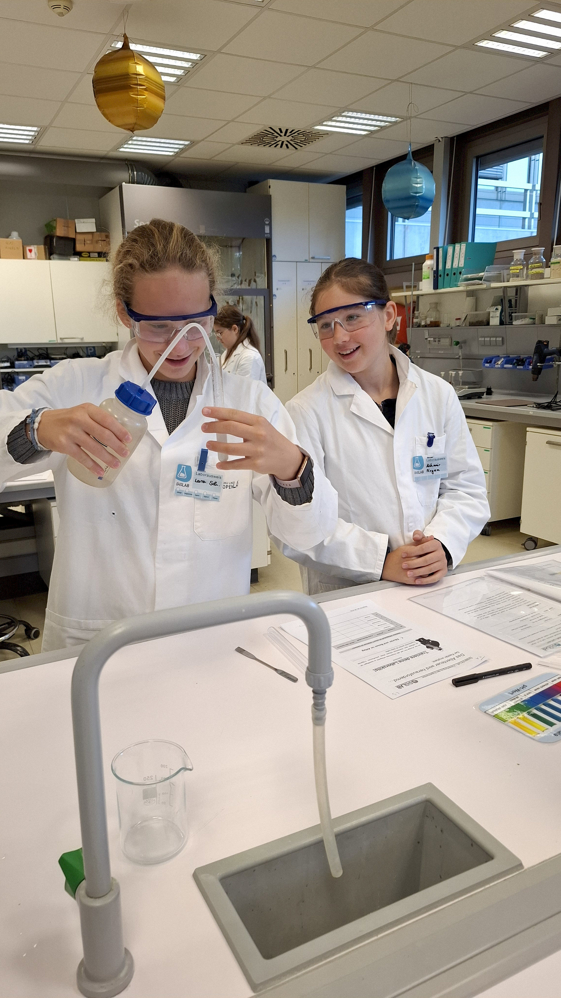 Für die Schüler*innen der 4NA und 4NB steht heuer Chemie-Labor auf dem Stundenplan. Aus diesem Grund stand gleich in den ersten Schulwochen ein Besuch im Open Lab der JKU Linz an. Ausgestattet mit der notwendigen Schutzkleidung durften die Schüler*innen dort selbst im Labor ausprobieren, ob man Flüssigkeiten stapeln kann oder was das Gegenteil von sauer ist. Außerdem wurde herausgefunden, wie die Farben in Feuerwerken entstehen und welche Möglichkeiten es gibt, Geheimschriften sichtbar zu machen.