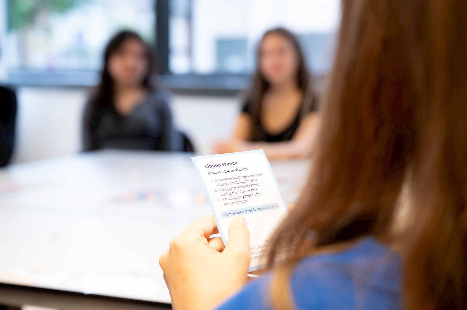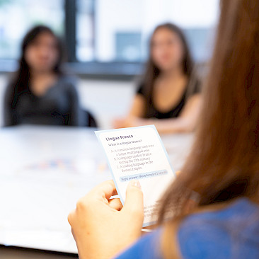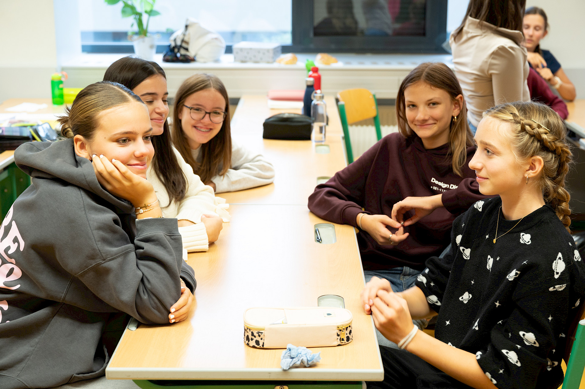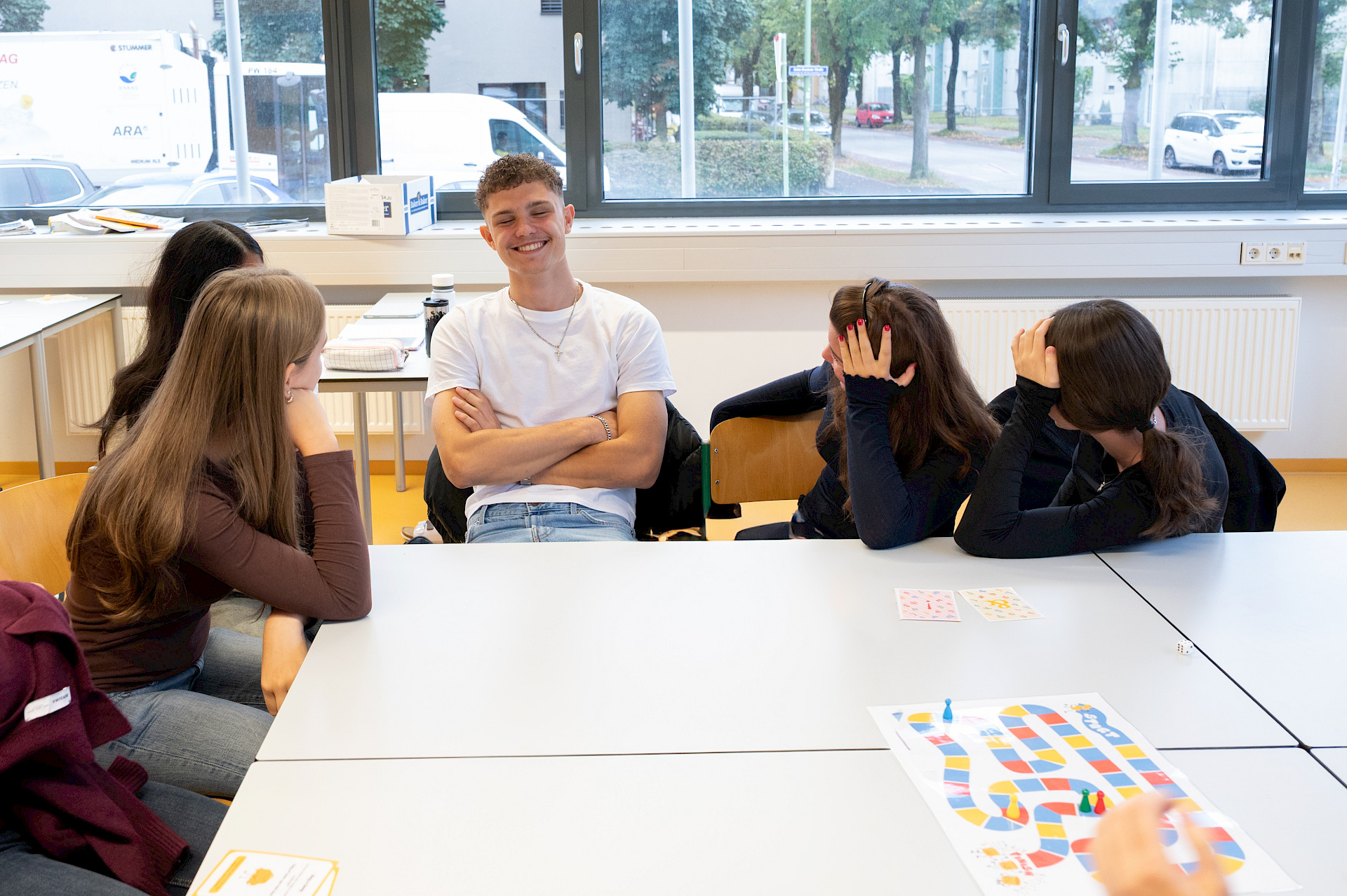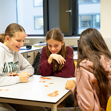 Alle Klassen beschäftigten sich auf spielerische Weise mit der Sprachenvielfalt unseres Kontinents: Während sich die 3A-Klasse mit einem englischen Buchstabenspiel vergnügte, setzten sich die übrigen Klassen des Sprachenzweigs (mit Ausnahme der achten Klasse, die sich bereits intensiv auf die Reifeprüfung vorbereitet), im Rahmen des Spiels „Linguine“ des Europäischen Fremdsprachenzentrums des Europarats mit den unterschiedlichsten europäischen Sprachen (einschließlich der Gebärdensprache) auseinander. Zur Stärkung spendierte die Direktion allen Teilnehmerinnen und Teilnehmern ein Croissant. Merci beaucoup!