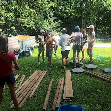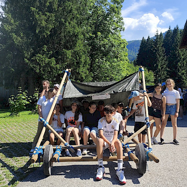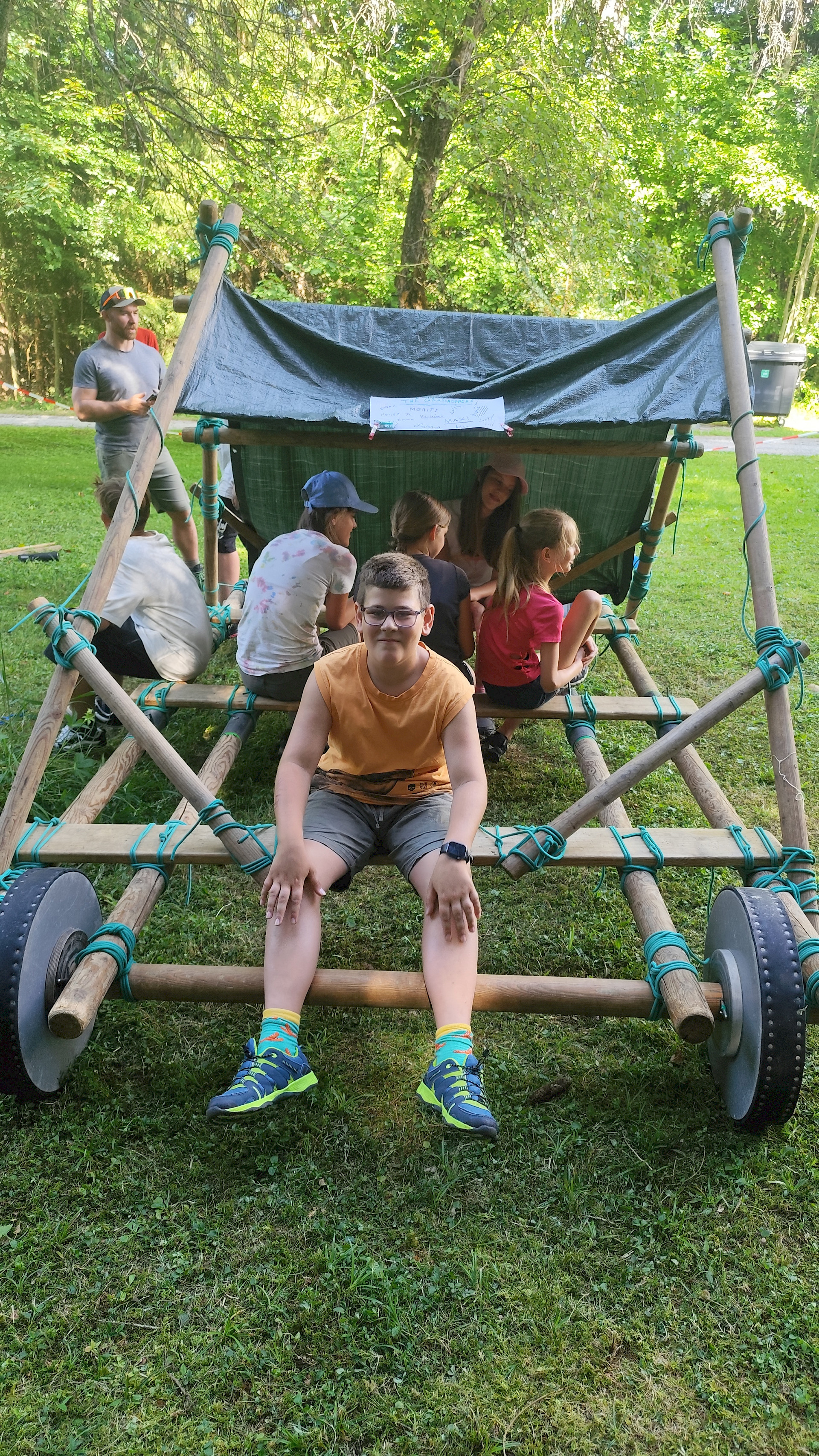 Ein besonderes Highlight war das Teambuilding-Projekt „Flintstones-Autobau“. Mit viel Kreativität, Zusammenarbeit und handwerklichem Geschick gelang es den Schülerinnen und Schülern, gemeinsam ein fahrbares Gefährt zu konstruieren – und natürlich auch erfolgreich auszuprobieren.