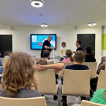 Am 25.9.25 erlebte die 1D zusammen mit Prof. Emminger, Prof. Keintzel (KV) und unterstützt durch zwei Mütter einen abwechslungsreichen Vormittag im Welios Wels. Ausgerüstet mit Regenschirm und Regenjacke marschierten wir zum Museum, dort angekommen konnte, aufgeteilt in Kleingruppen, das Haus erkundet und nach Herzenslust ausprobiert werden. Den krönenden Abschluss bildete eine Akustik-Show, in der mit verschiedenen Hilfsmitteln veranschaulicht wurde, wie Töne erzeugt werden, wie sich Schall ausbreitet und vieles mehr.