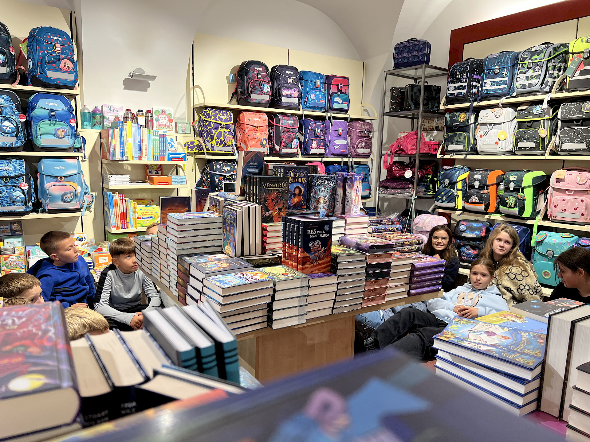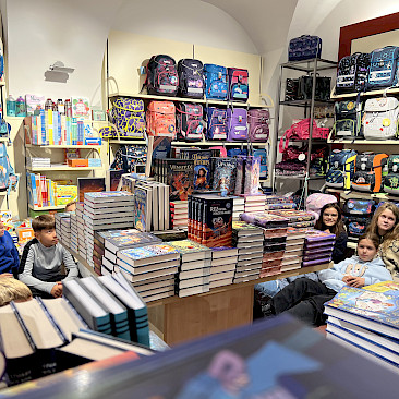Der zweite Projekttag führte uns – die 1D, begleitet durch Prof. Eberle und Prof. Keintzel,- am 6.10.25 in die Buchhandlung Skribo Haas, in der wir zum einen Einblick in die Geschichte und die verschiedenen Bereiche des Geschäfts erhielten, aber zum anderen nach Herzenslust in den dort vorrätigen Büchern geschmökert werden konnte. Neben einer weiteren Klassenaktivität war nämlich die Auswahl eines „Bankfachbuchs“ auch ein Ziel dieses Ausflugs.