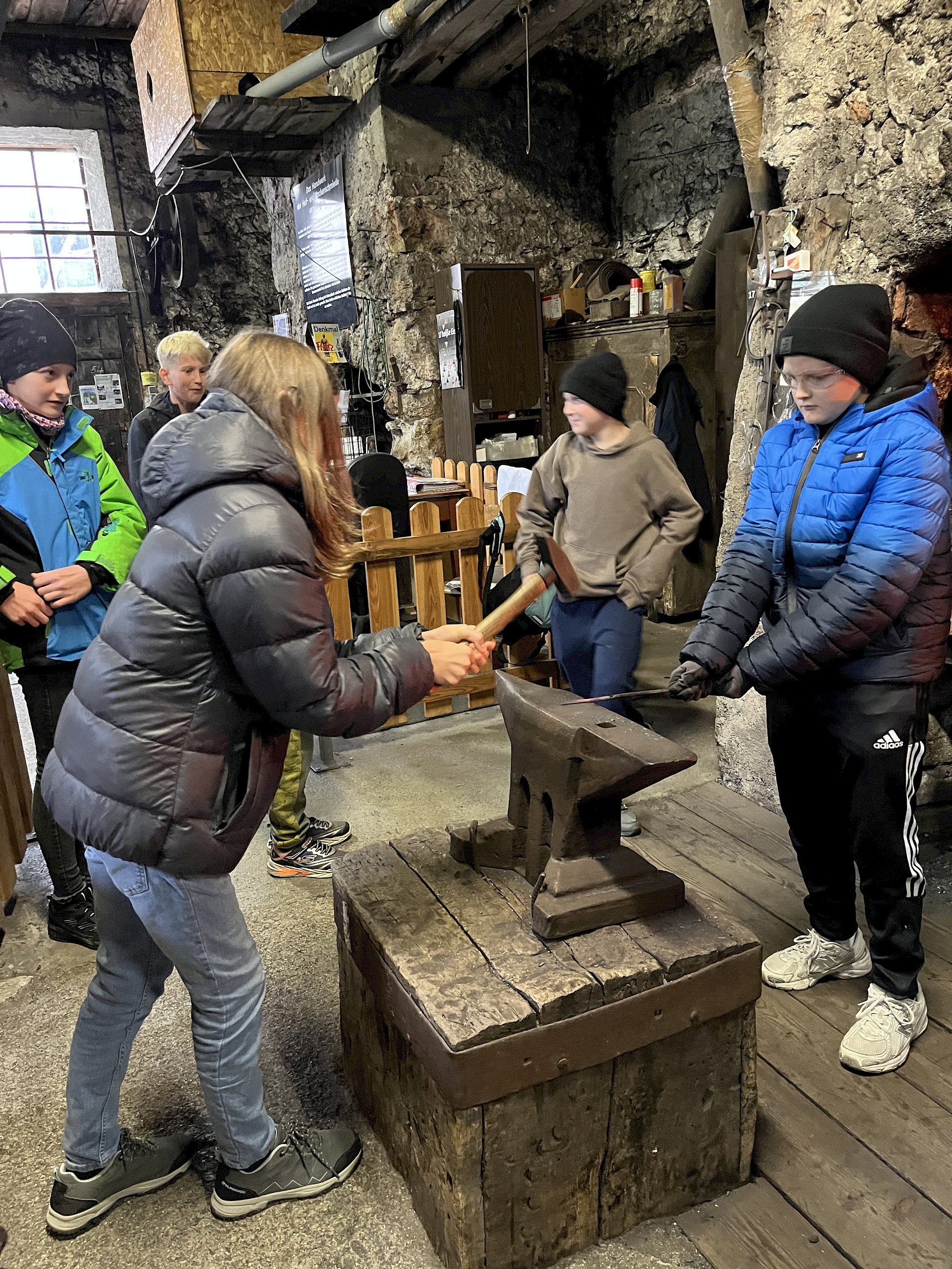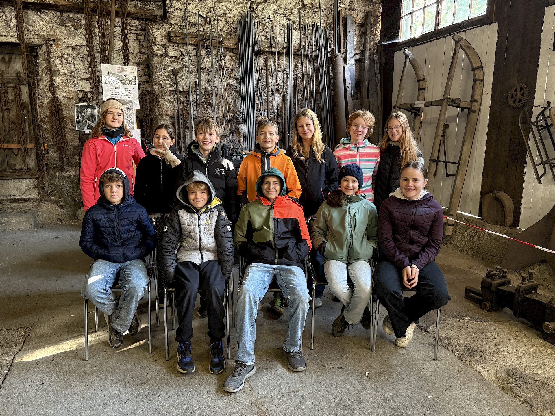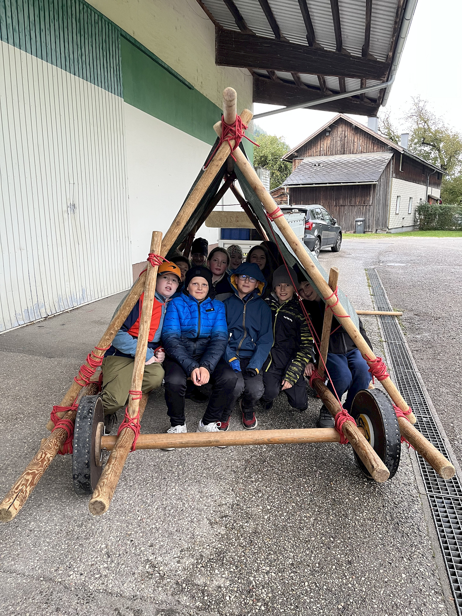 Auch der Zusammenhalt zwischen den Schüler*innen in der Klasse kann bei solchen Aktionen gestärkt werden und man lernt sich in einem anderen Rahmen kennen, als es im Klassenzimmer möglich wäre. Während einer kleinen Tour mit RangerInnen des Nationalparks Kalkalpen, beim Bauen von Flintstone-Autos, dem Besuch einer alten Hammerschmiede, dem Erzbergwerk oder der Stiftsbibliothek Admont gab es zahlreiche Gelegenheiten, gemeinsam Eindrücke zu erleben, die wir so schnell nicht vergessen werden. Das Bogenschießen, der Hochseilklettergarten und der Besuch der „Kreidelucka“ (einer Höhle, durch die wir etwa 1,5 Stunden gewandert sind – oft durch knietiefes Wasser!) stellten die Höhepunkte unseres Programms dar. Dabei mussten wir durchaus auch die persönliche Komfortzone verlassen, sodass man auf jeden Fall über sich hinauswuchs.