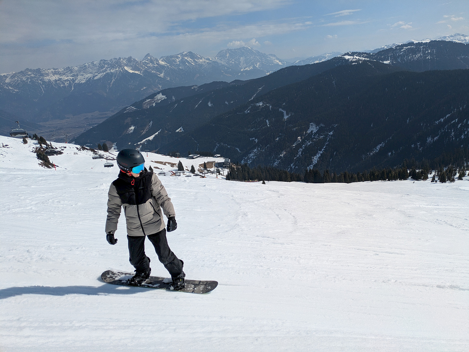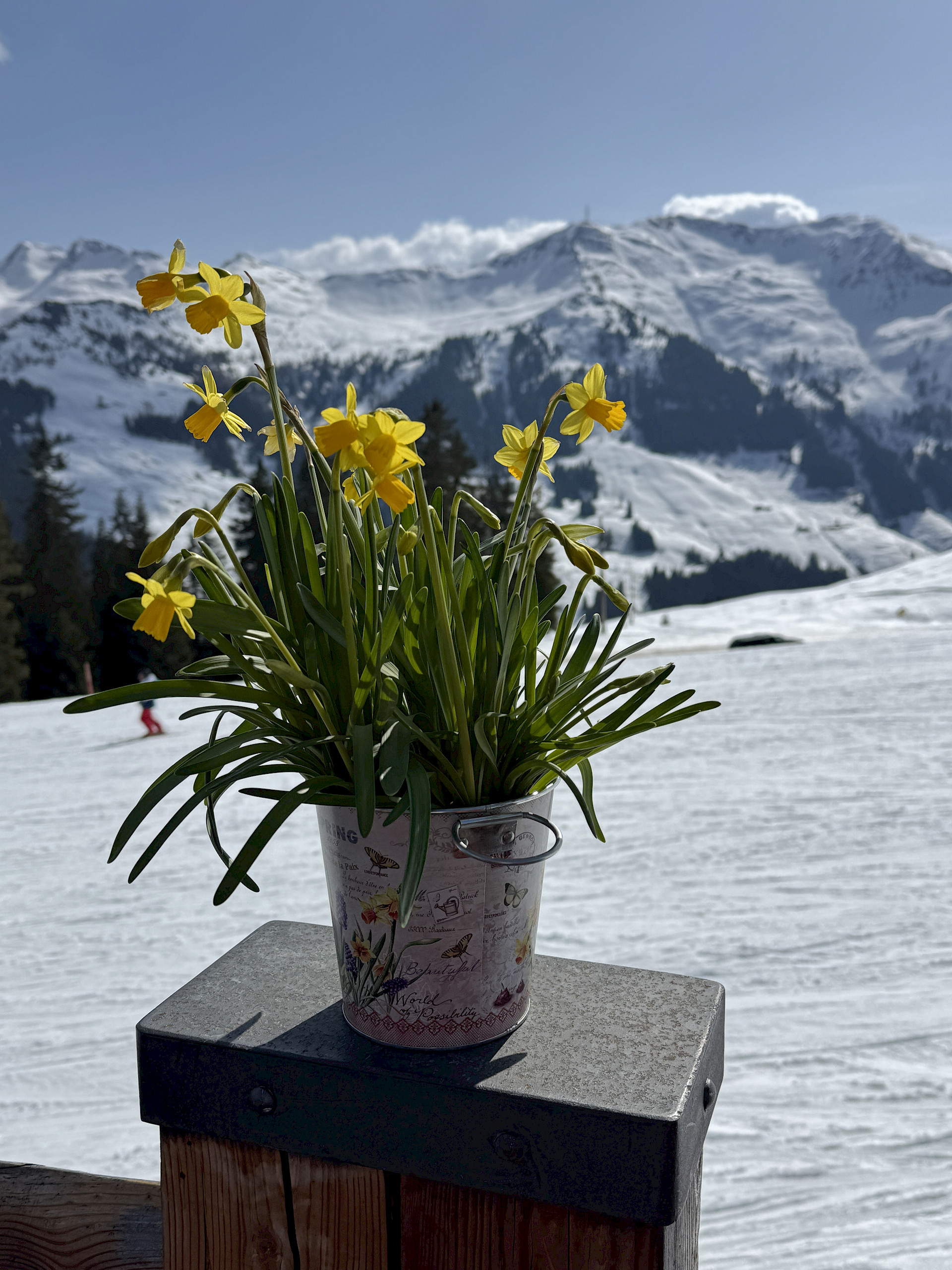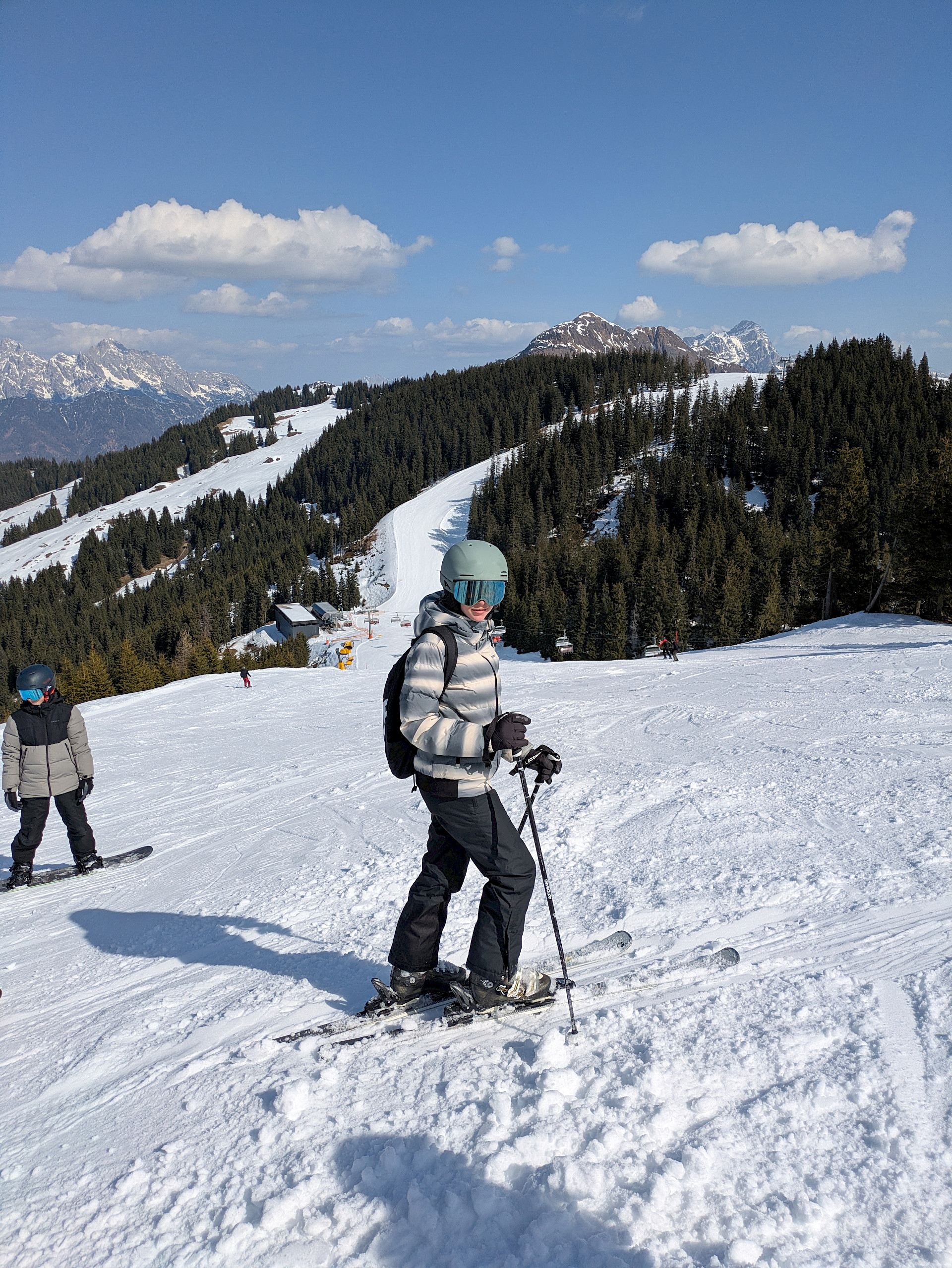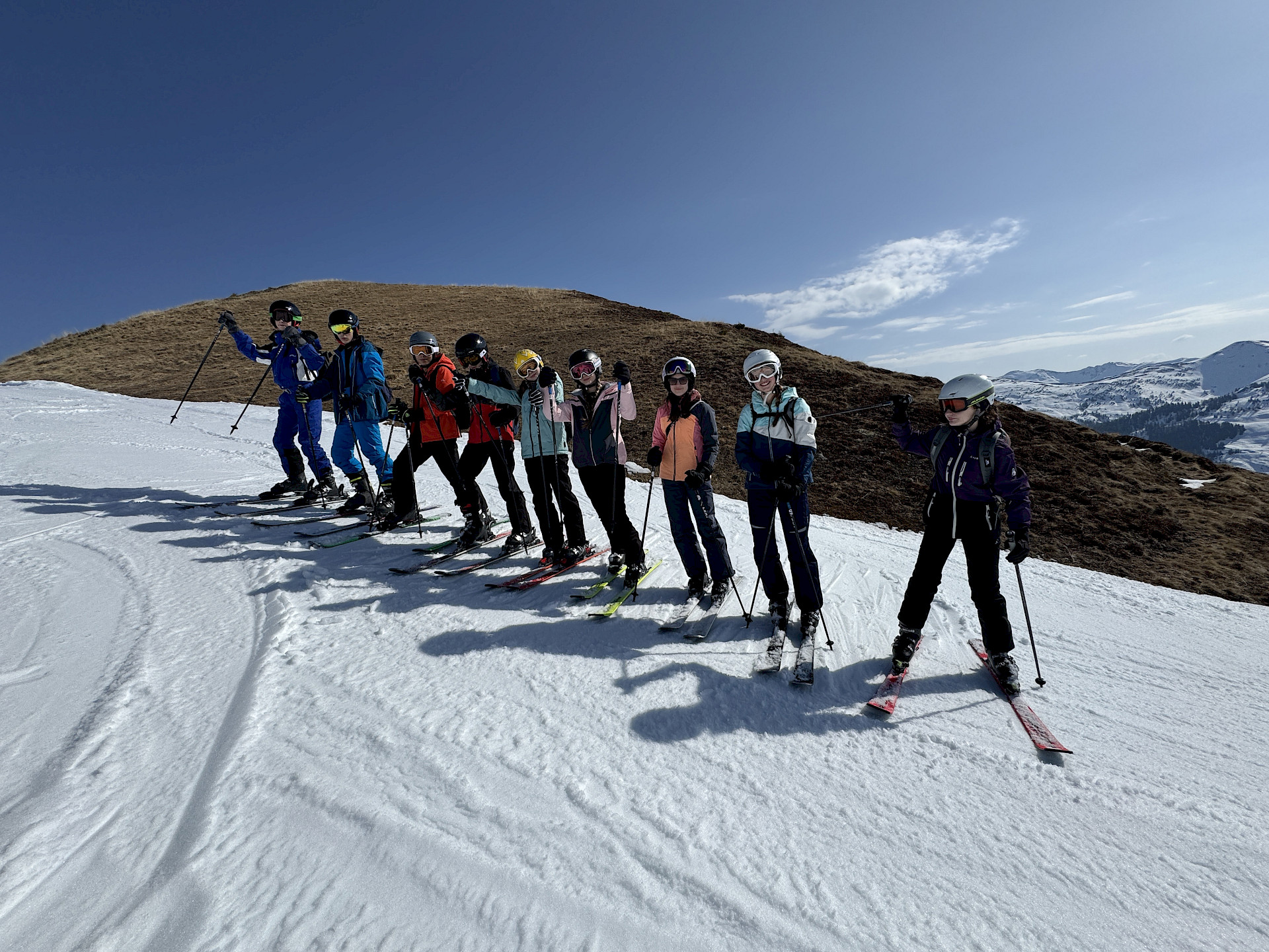 Jeden Tag wurde das Skigebiet von den insgesamt 9 Gruppen erkundet. Die Anfänger*innen konnten ihre Skikünste, die sie letztes Jahr erworben hatten, noch auf den einfacheren Hängen zeigen, während die fortgeschritteneren Gruppen schon die steileren Pisten hinunterflitzten. Die meiste Zeit schien Sonne, aber am Donnerstag schneite es ein paar Flocken.