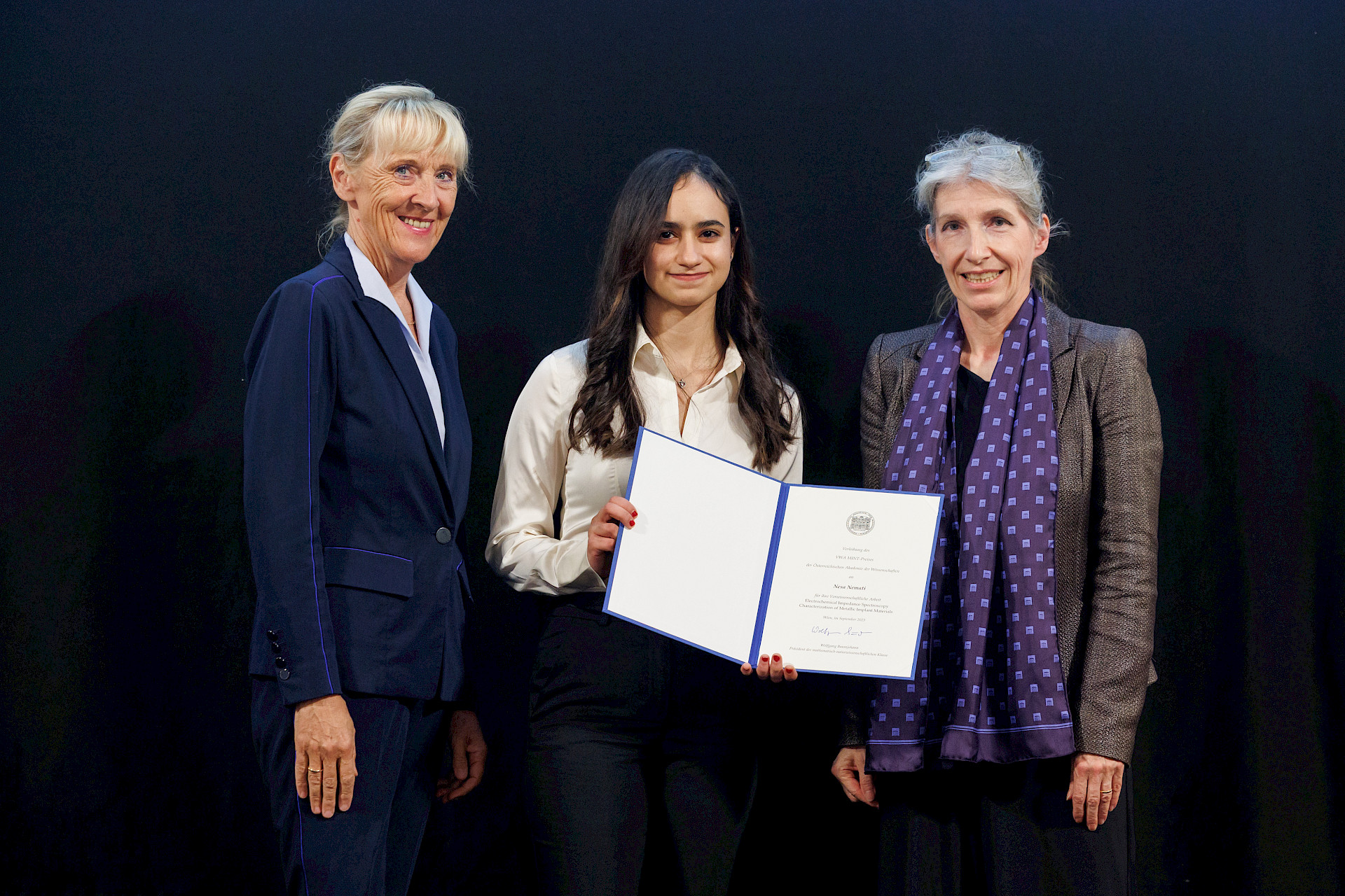 …die bereits mit dem Hans Riegel Hauptpreis Chemie in Oberösterreich und auch mit einem von der österreichisch chemischen Gesellschaft ausgezeichneten Hauptpreis österreichweit prämierten, englisch verfassten ABA mit dem Titel „Electrochemical Impedance Spectroscopy Characterization of Metallic Implant Materials“ wurde nochmals mit dem ABA MINT Preis der Akademie der Wissenschaften Österreichs zur Förderung von Frauen in den MINT Fächern in Wien ausgezeichnet.