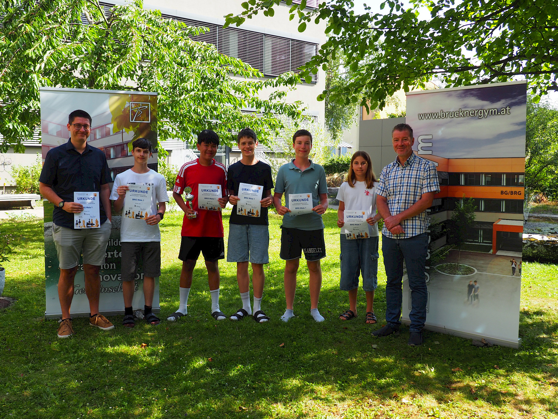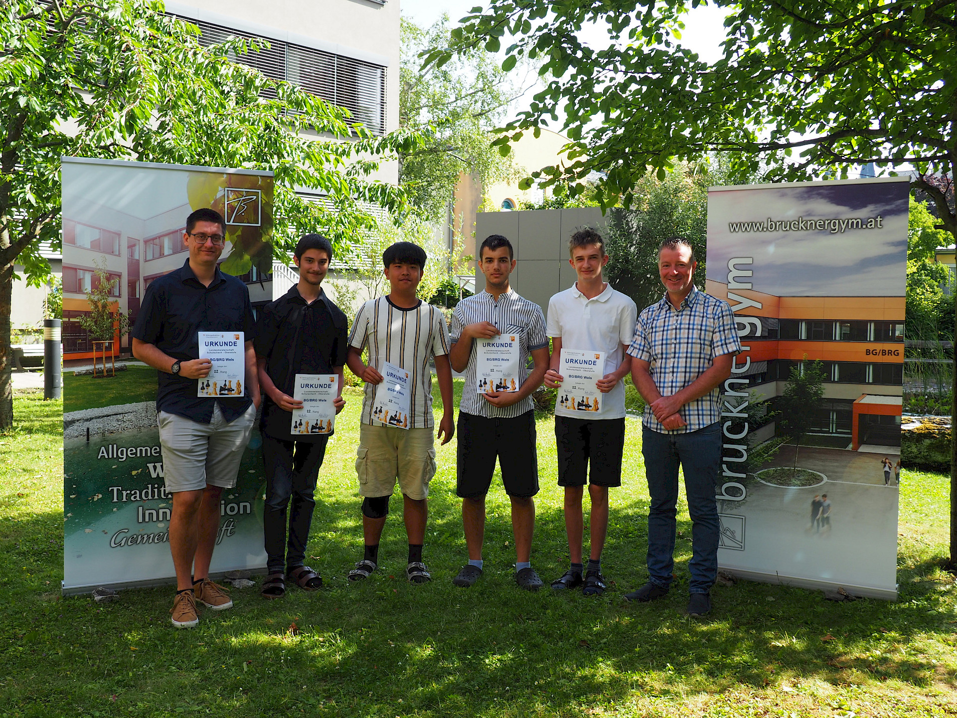 Das Team BG/BRG Brucknerstraße Wels 2, bestehend aus Thomas Wiesinger (2E), Maximilian Spitzer (2E), Marin Jukicic (3B), Clemens Schürz (1B) und Jan Stelzhammer (1B), belegte den 40. Platz. Für die meisten war es die erste Teilnahme an einem großen Turnier, und alle sammelten wertvolle Erfahrungen. Jede*r Spieler*in steuerte wichtige Punkte zur Endplatzierung bei und zeigte tolle Partien. Insgesamt erreichte das Team 11 von 28 Punkten.