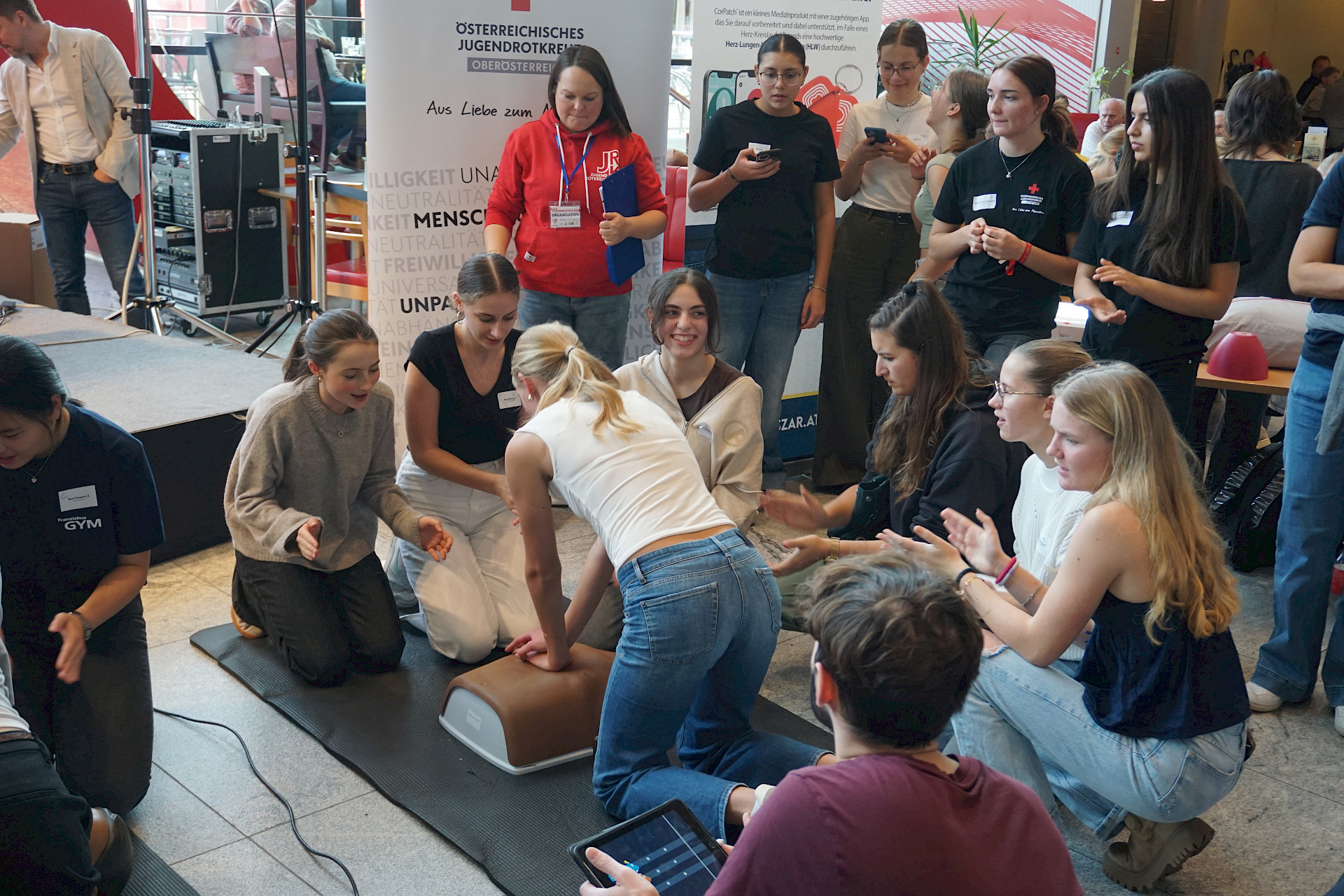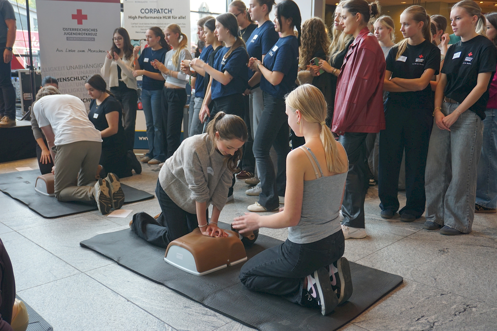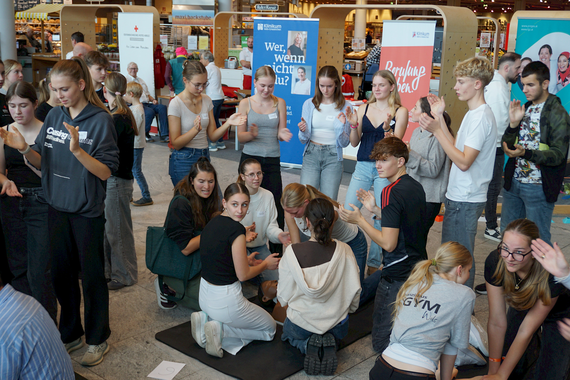 Am 10. Oktober 2025 war das Max Center in Wels Schauplatz einer ganz besonderen Veranstaltung: der QCPR Challenge 2025, organisiert vom Jugendrotkreuz (JRK) und dem Klinikum Wels-Grieskirchen. Ziel des Wettbewerbs: zeigen, wie gut und effektiv Wiederbelebung bereits an Schulen praktiziert wird – und dass unsere Schüler*innen im Notfall beherzt zupacken können!