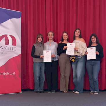 Einmal mehr erwies sich unser Brucknergym als Talenteschmiede für Fremdsprachen. Am 26. September 2025, dem Europäischen Tag der Sprachen, fand zum vierten Mal das Finale des Concours de lecture à haute voix, veranstaltet von der Amitié France-Autriche Linz, im Festsaal des Linzer Kreuzschwesterngymnasiums statt. Frankophile Schüler*innen aus ganz Oberösterreich trugen einer Native-Speaker-Jury einen vorgegebenen französischen Text vor. Dabei boten unsere Kandidatinnen, die wir in einer schulinternen Vorausscheidung ermittelt hatten, auf allen drei Niveaus überragende Leistungen.