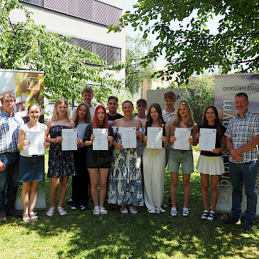 Sehr erfreulich war, dass sich 14 Schüler*innen aus allen vier 7. Klassen entschlossen haben, die letzte Herausforderung , das Modul UP, anzugehen und auch zur Abschlussprüfung bei der Meisterprüfungsstelle der WKO anzutreten. Noch erfreulicher war, dass alle 14 Kandidat*innen diese Prüfung bestanden haben, fünf Mal sogar mit Auszeichnung, und damit den kaufmännischen Teil der Unternehmerprüfung erfüllt haben. Herzliche Gratulation zu dieser beeindruckenden Leistung.