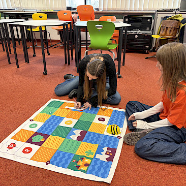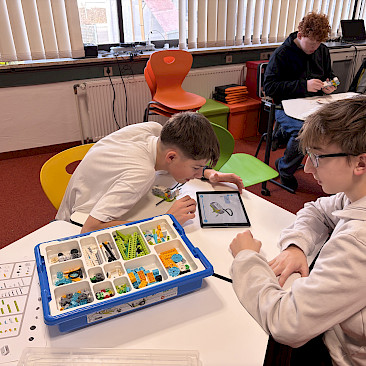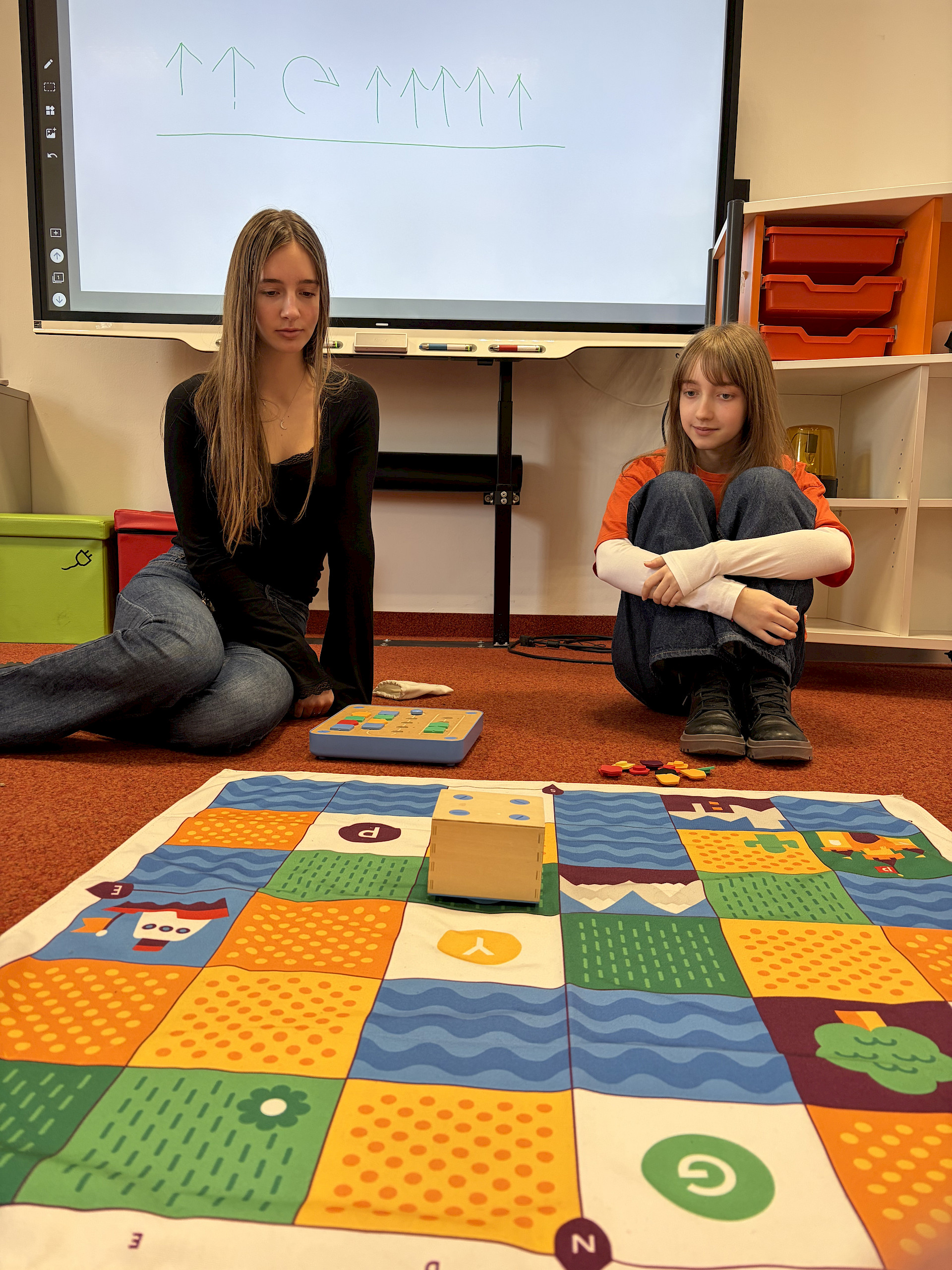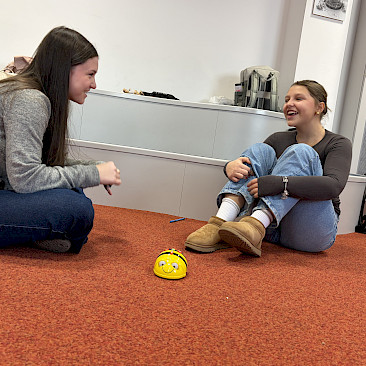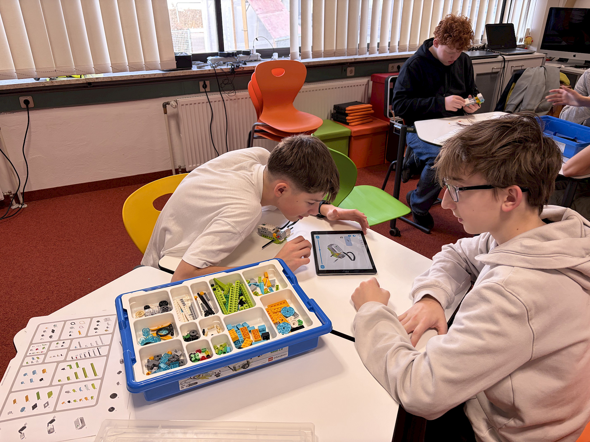 Besonders großen Spaß hatten die Schüler*innen beim Programmieren der Bee Bots. Mit diesen einfach zu bedienenden Robotern gelang der Einstieg in die Welt des Codings spielerisch und anschaulich. Um den Perspektivenwechsel gut zu verstehen, programmierten sie die Bee Bots in einer kleinen Land- bzw. Stadtumgebung auf einem Spieleteppich und mussten dabei genau überlegen, welche Befehle notwendig sind, um das gewünschte Ziel zu erreichen. Anschließend wurden Legoautos gebaut und mit Lego Education Sets programmiert. Hier wurde nicht nur getüftelt, sondern auch geforscht: Wie wird mein Auto schneller? Welche Soundeffekte kann ich einsetzen? Welche Faktoren beeinflussen die Bewegung? Ganz nebenbei wurden physikalische Hintergründe erforscht und ausprobiert. Natürlich durfte auch ein kreative „Pimp up“ mit zusätzlichen Legosteinen nicht fehlen – Technik und Gestaltung gingen Hand in Hand.