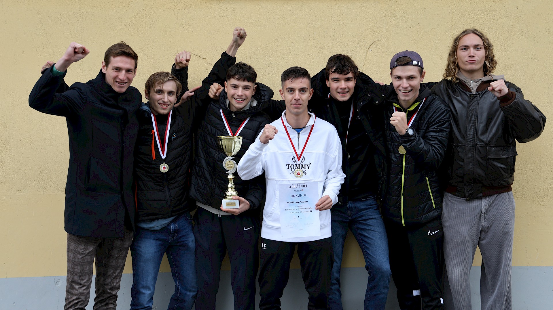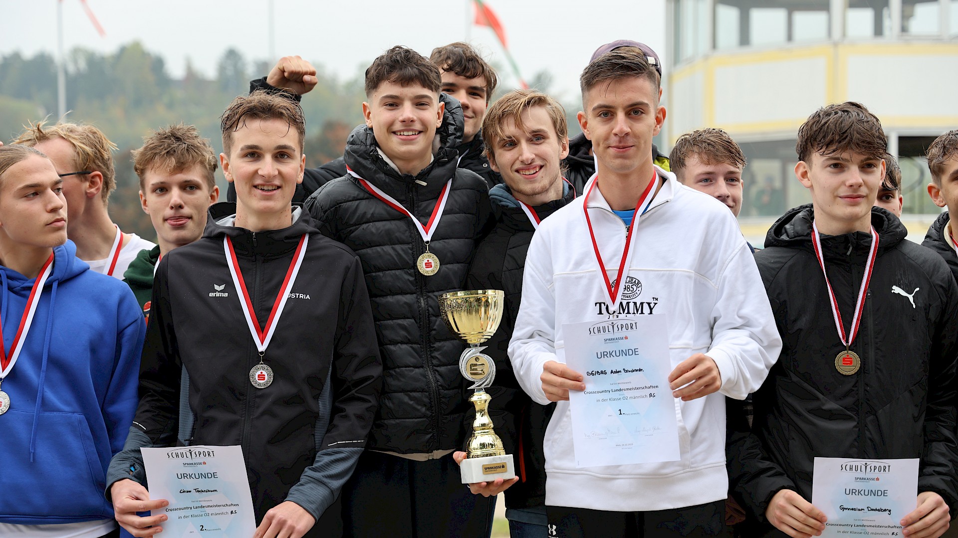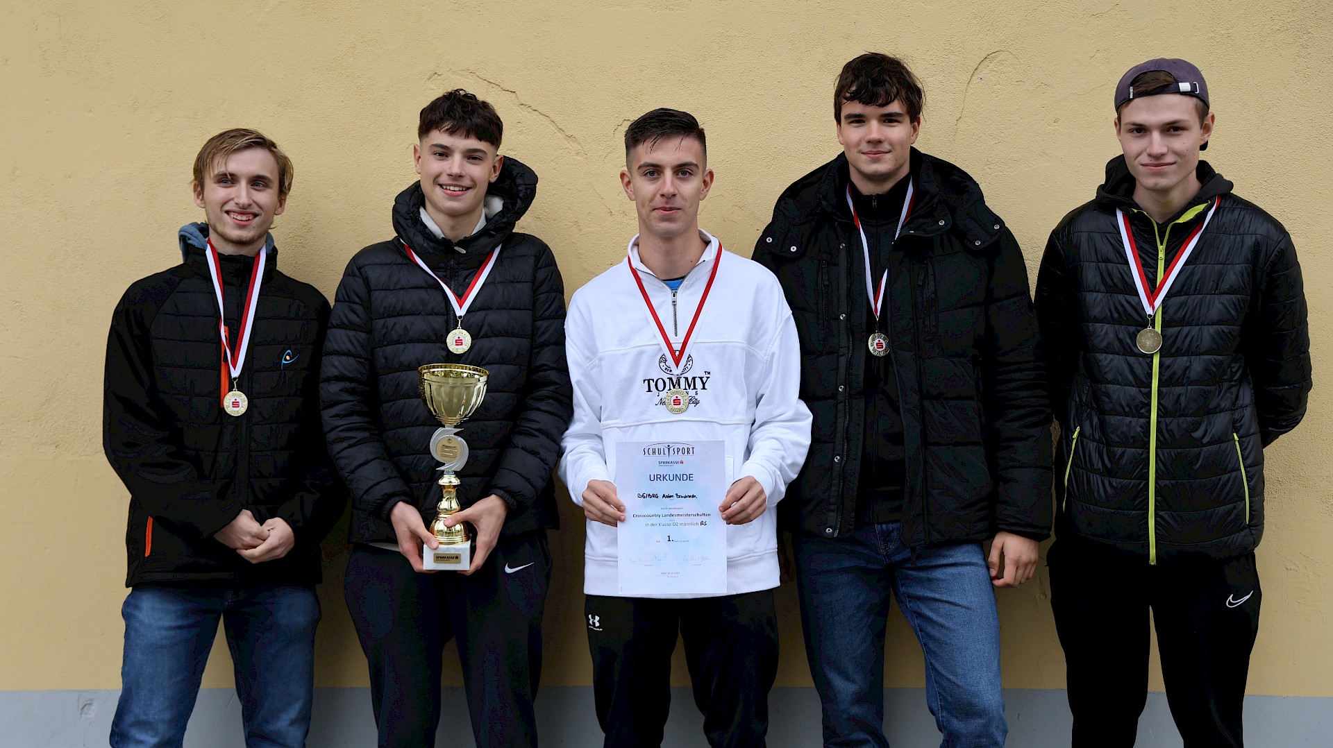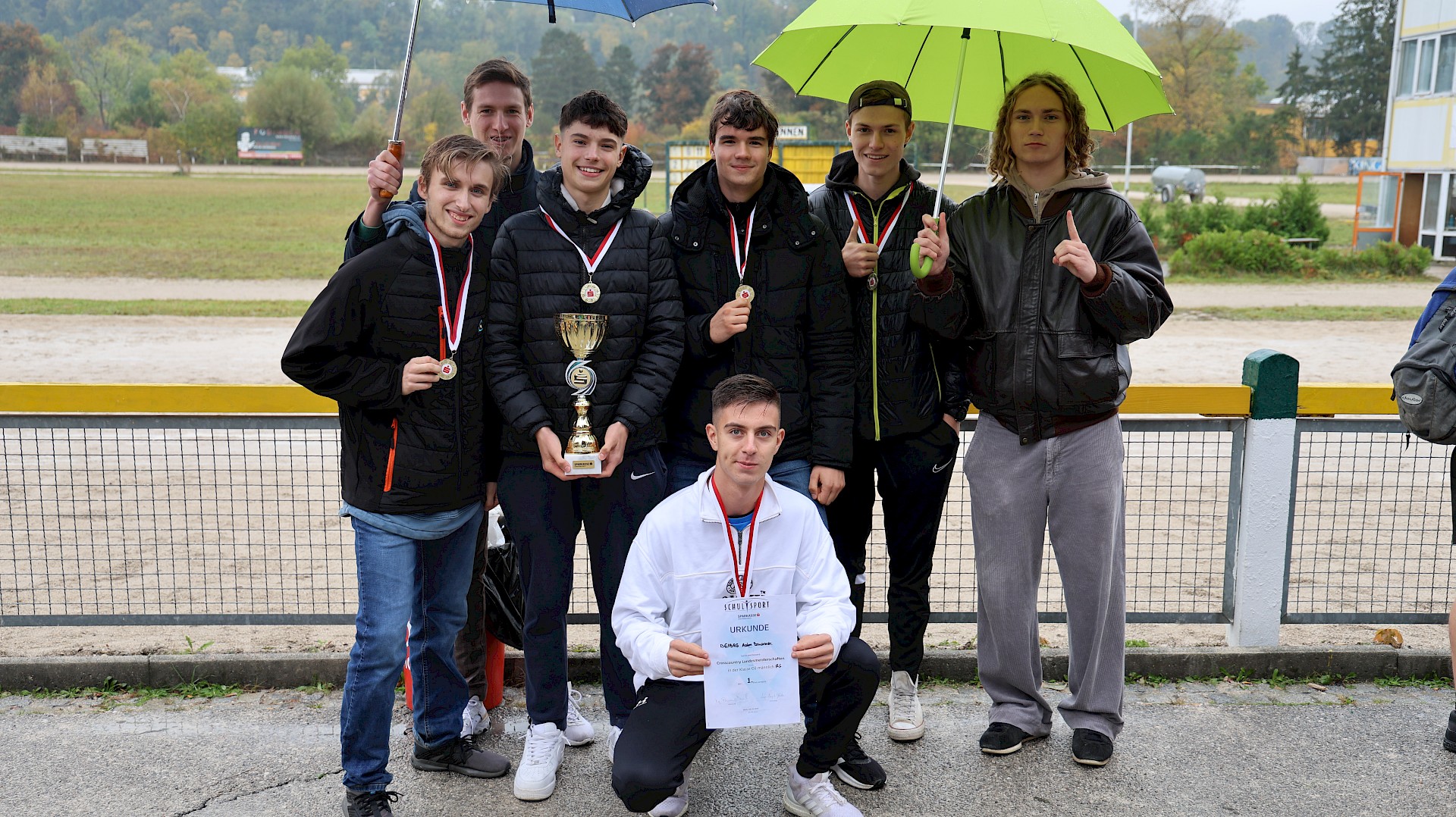 Kostiantyn Gnatiuk, Jakob Haidinger, Bernhard Kogler, Bruno Oberzaucher & Raphael Strasser mit den Ersatzläufern Jonas Peterwagner und Balthasar Jereb gewannen überraschend den Teambewerb in der Klasse Oberstufe 2 (7. und 8. Klassen) der Crosslauflandesmeisterschaft am 24. Oktober 2023.