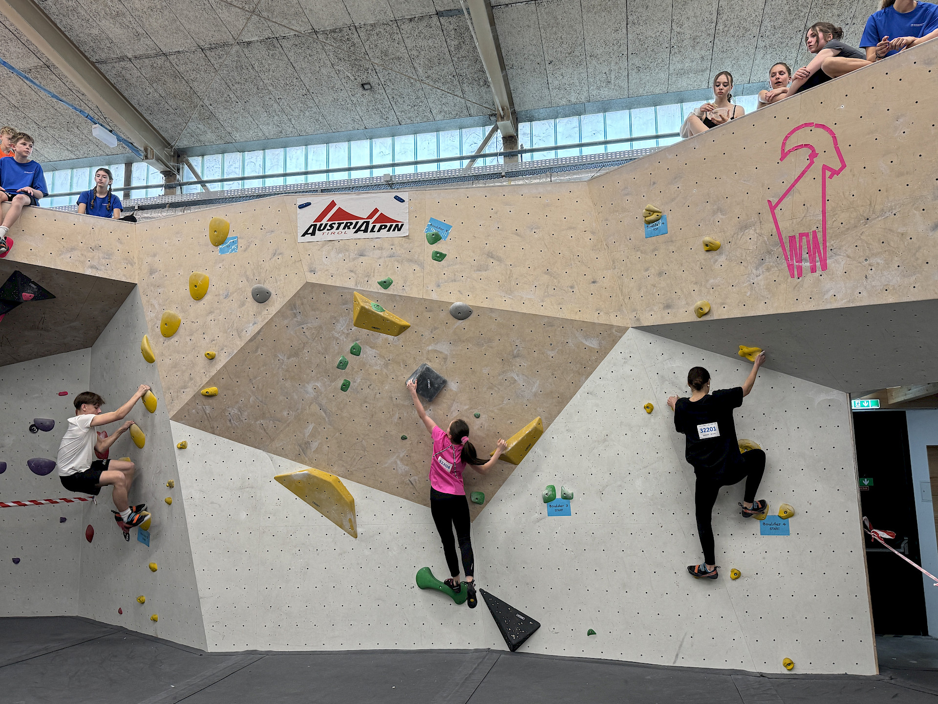 Das Bouldern entwickelte sich in den letzten Jahren zu einer richtigen Trendsportart. Das konnte man in Linz zum einen am leistungsstarken Teilnehmerfeld beobachten, und zum anderen wurde heuer erneut ein Teilnehmerrekord von über 500 Schüler*innen aus Mittelschulen, Gymnasien und berufsbildenden Schulen erzielt.