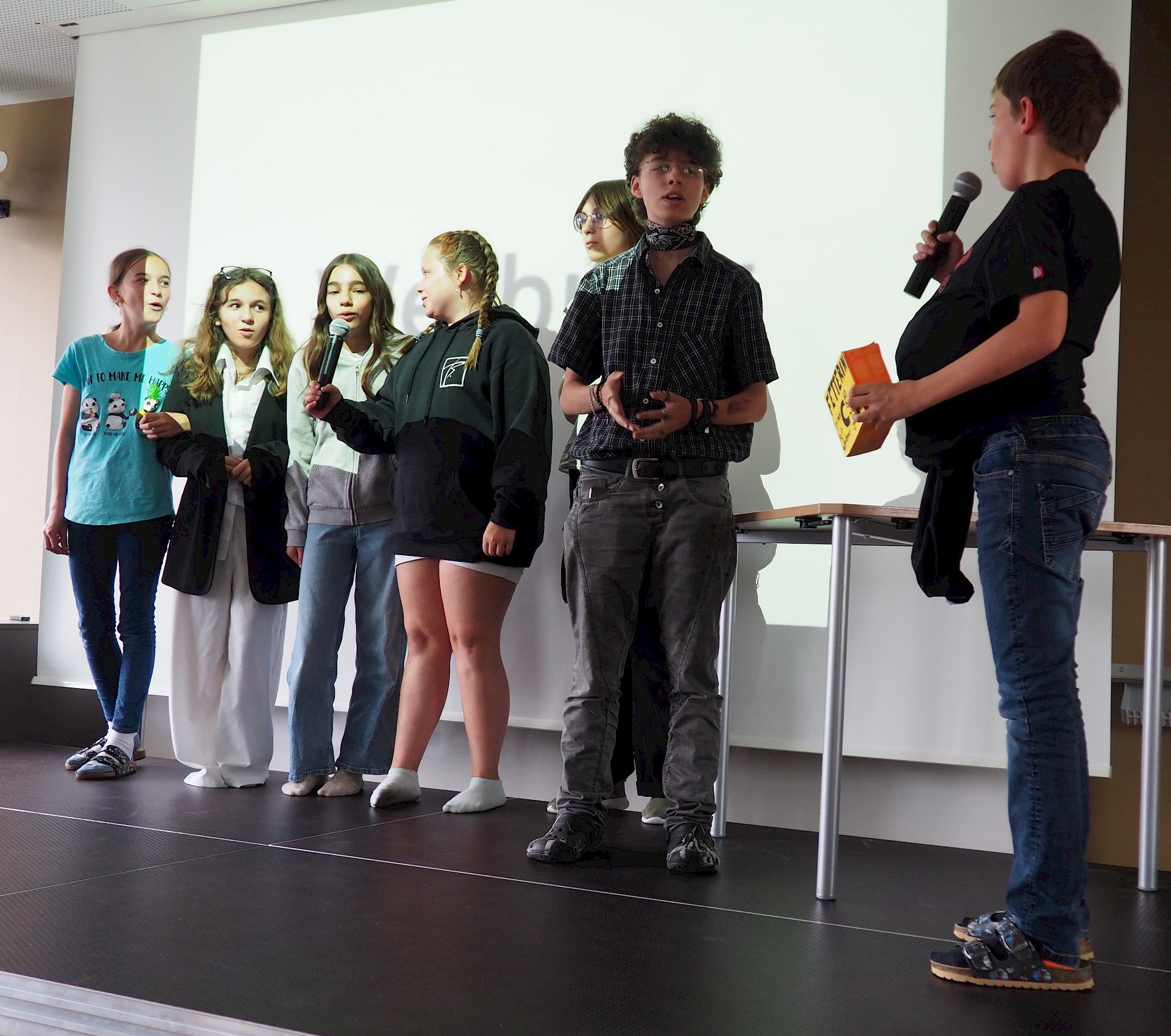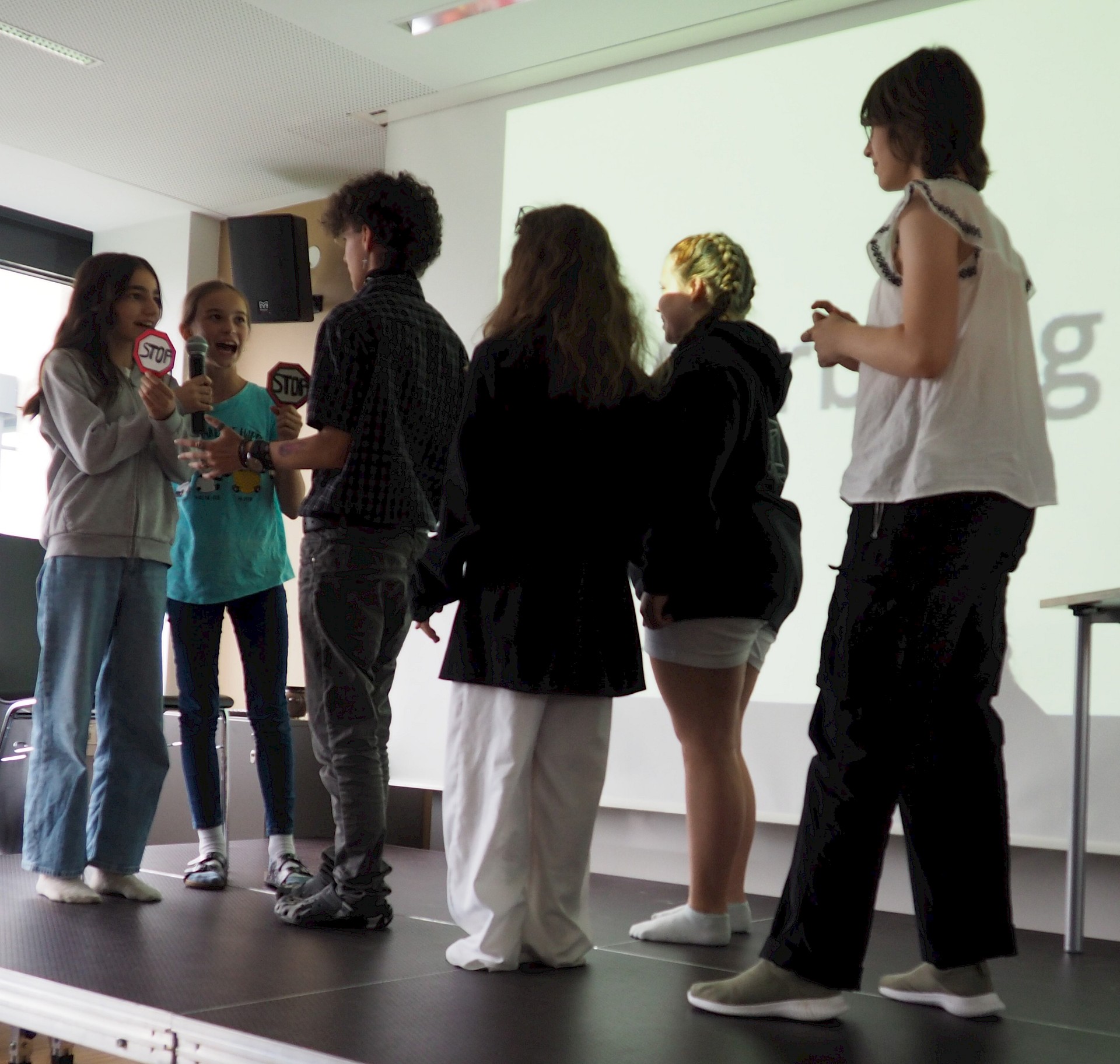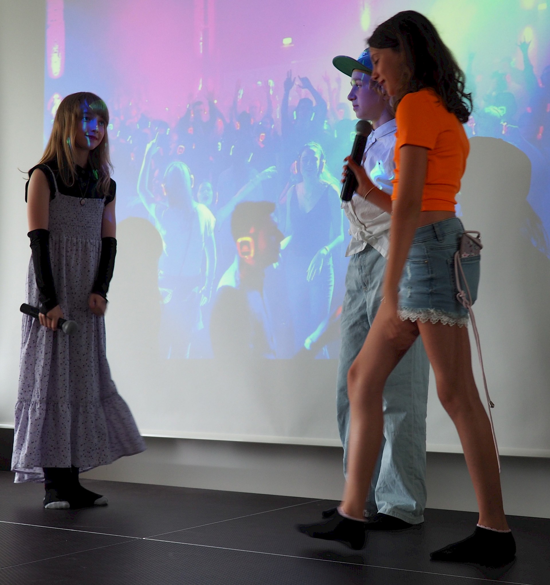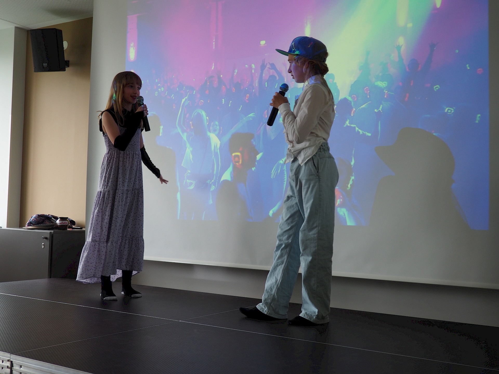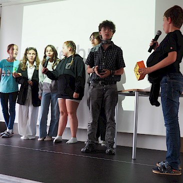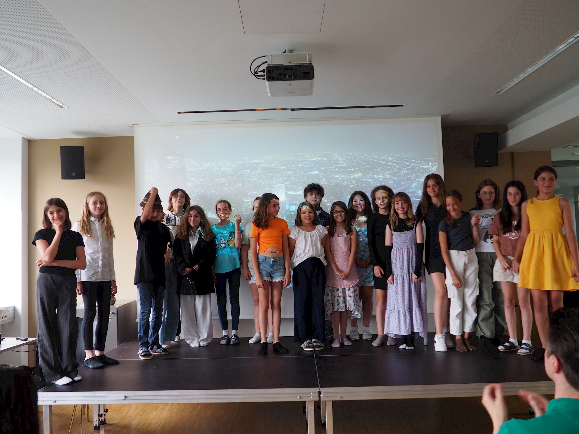 Kurz vor den Sommerferien wagten wir uns an eine Abendvorstellung, zu der auch die Eltern geladen waren: Am 27. Juni 2023 wurden unsere beiden Sommerstücke auf der großen Bühne im Festsaal mit großem Erfolg uraufgeführt.