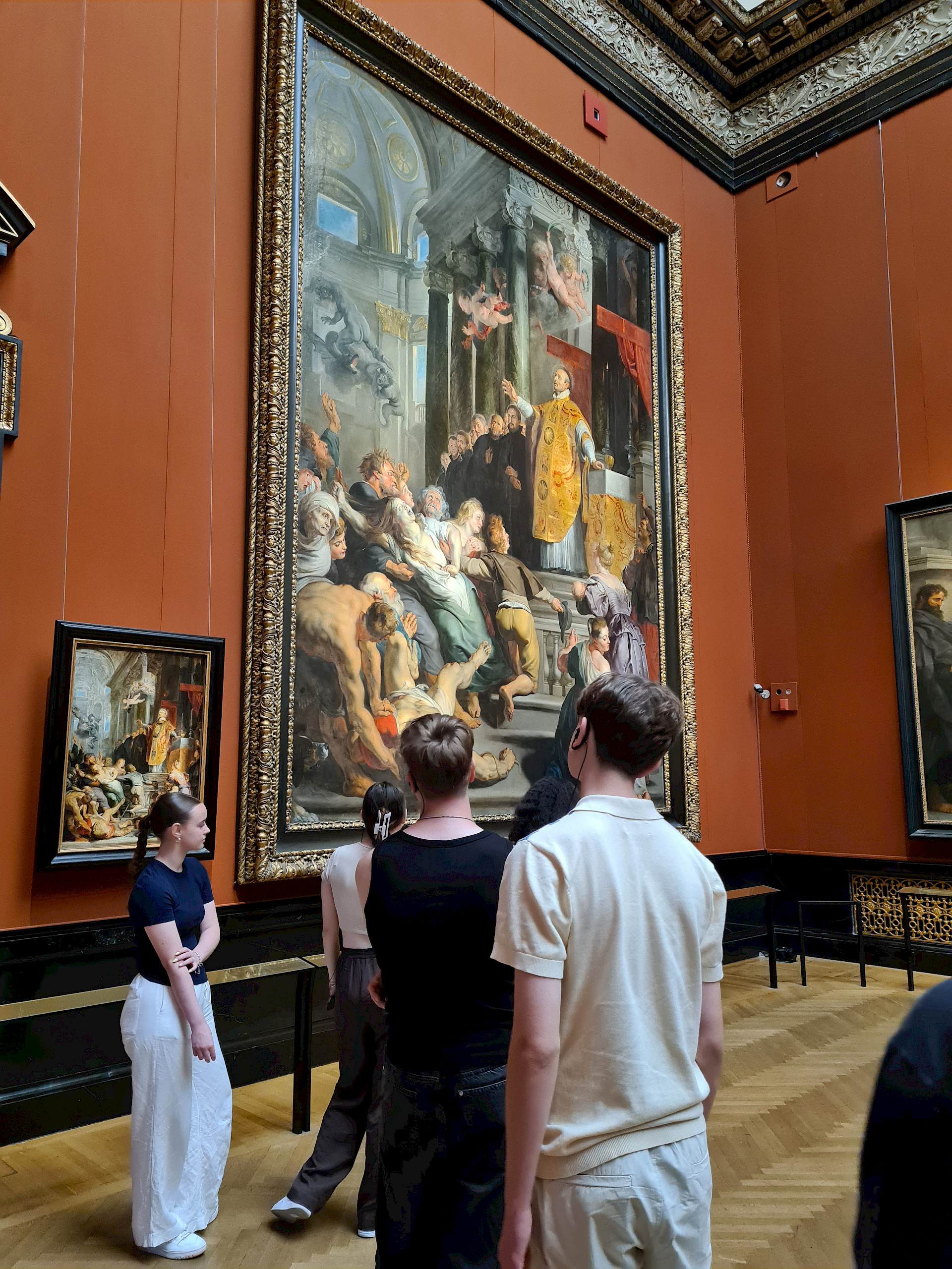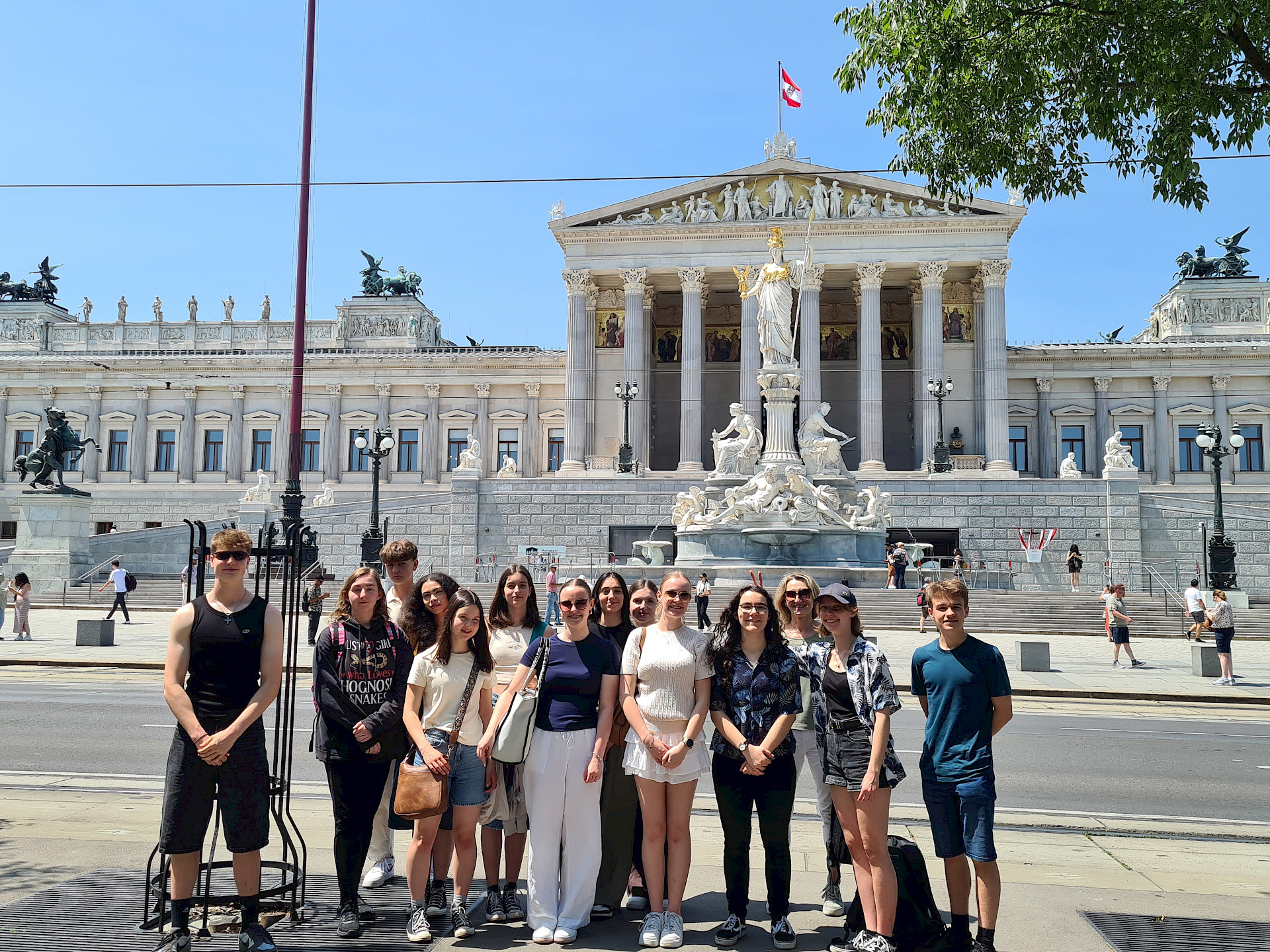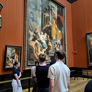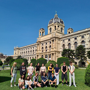 Die Schüler*innen betrachteten dabei im Rahmen einer Führung die Kunstwerke von Caravaggio, Rubens, Tizian und Raffael, sowie deren Komposition, Malweise und Lichtführung. Außerdem erfuhren sie mehr über die Entstehungsgeschichte der jeweiligen Bilder. Danach flanierten wir bei strahlendem Wetter an berühmten Ringstraßenbauten wie dem Parlament, Rathaus und Burgtheater vorbei zur Universität und übten uns an der Zuordnung von Baustilen.