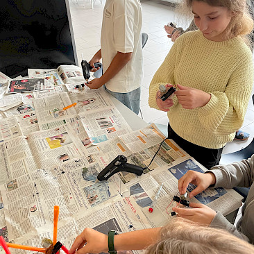 Zum Abschluss wurden alle Modelle präsentiert, Schwierigkeiten besprochen und die Ergebnisse fotografisch sowie grafisch festgehalten. Ein Roboter-Wrestling bildete den gemeinsamen Abschluss des Projekts.