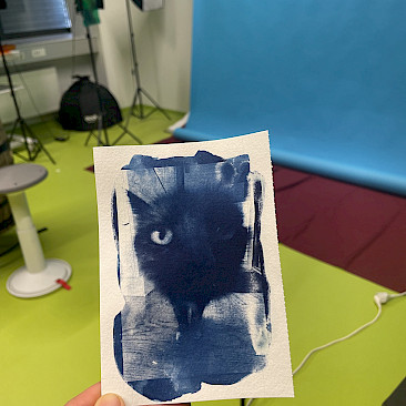 Im Rahmen des Medienkompetenz-Unterrichts haben die Schüler*innen der Klasse 7B ein historisches fotografisches Verfahren zur Bildfixierung auf verschiedenen Untergründen kennengelernt und praktisch erprobt: die Cyanotypie.