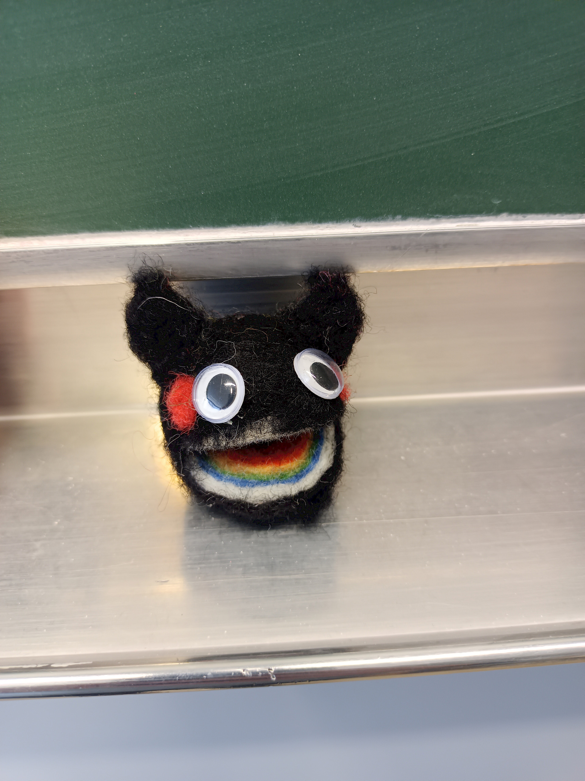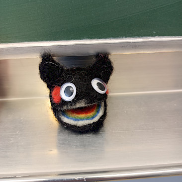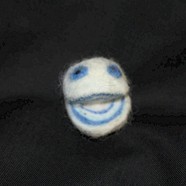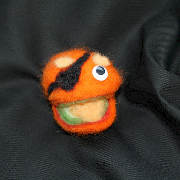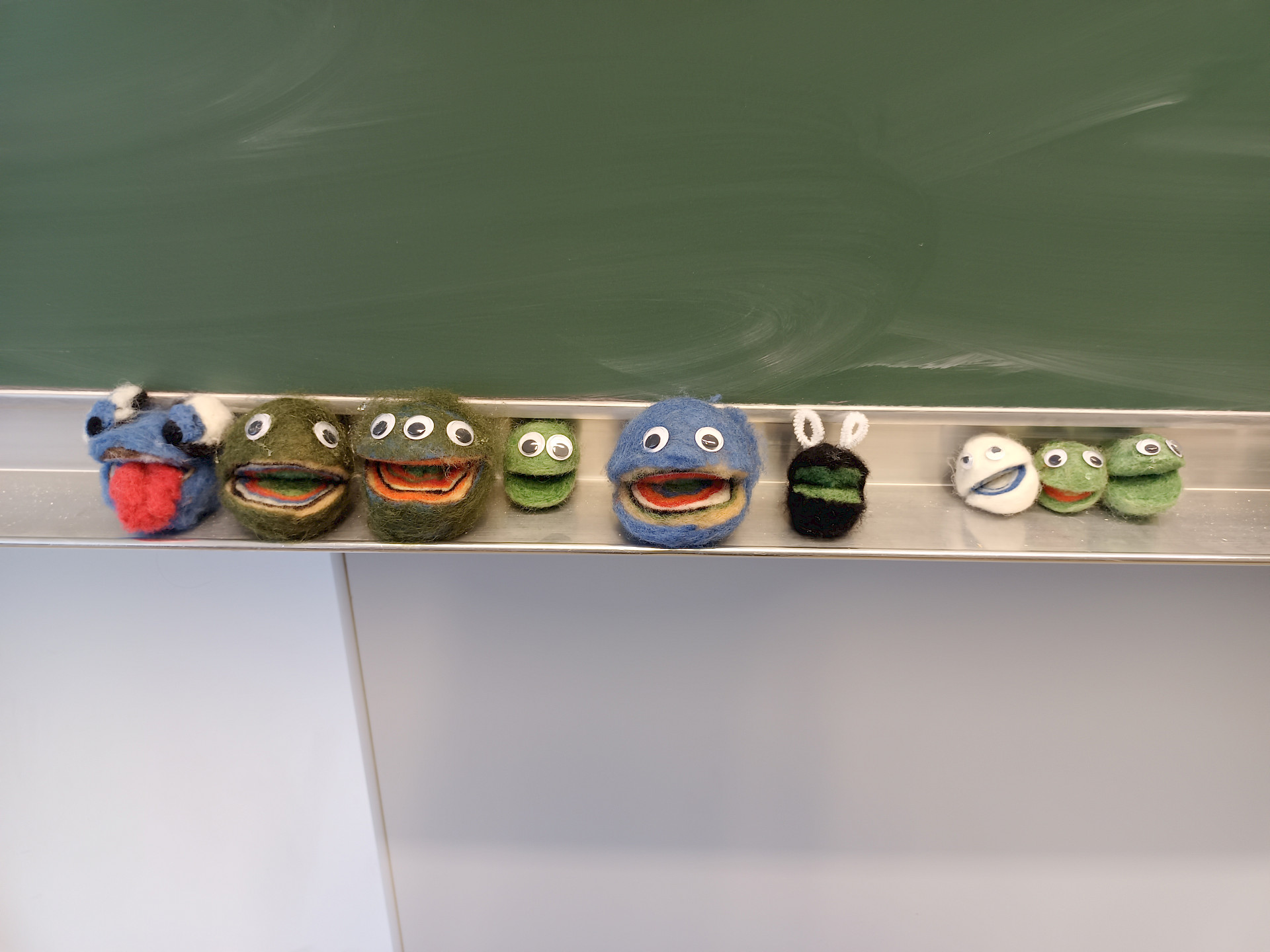 Durch die Nassfilztechnik wurden Filzkugeln in verschiedenen Farben schichtweise gefilzt und dann getrocknet. Danach konnte man die Filzkugeln auseinanderschneiden und weiter dekorieren zu kleinen Filzmonstern.