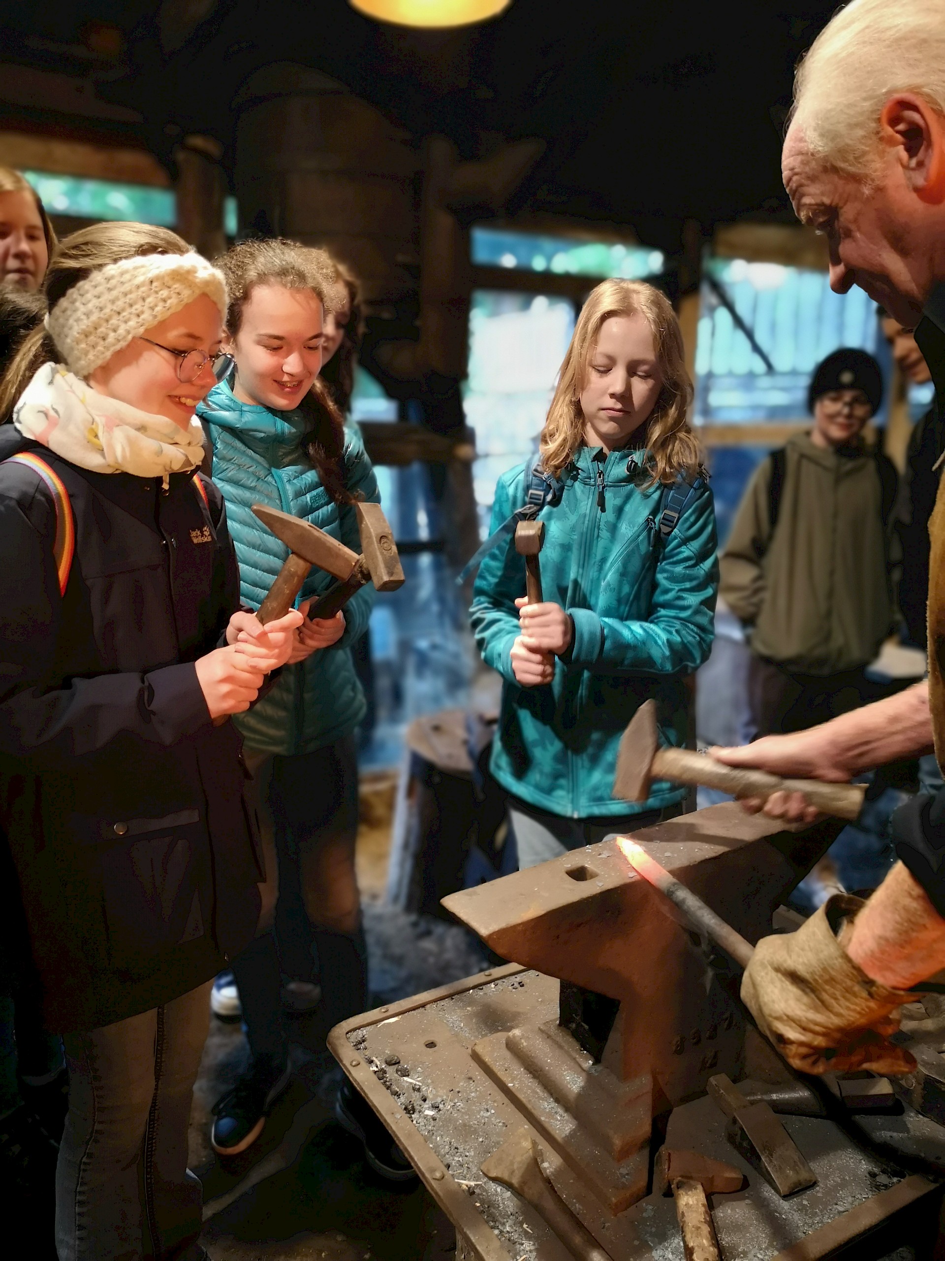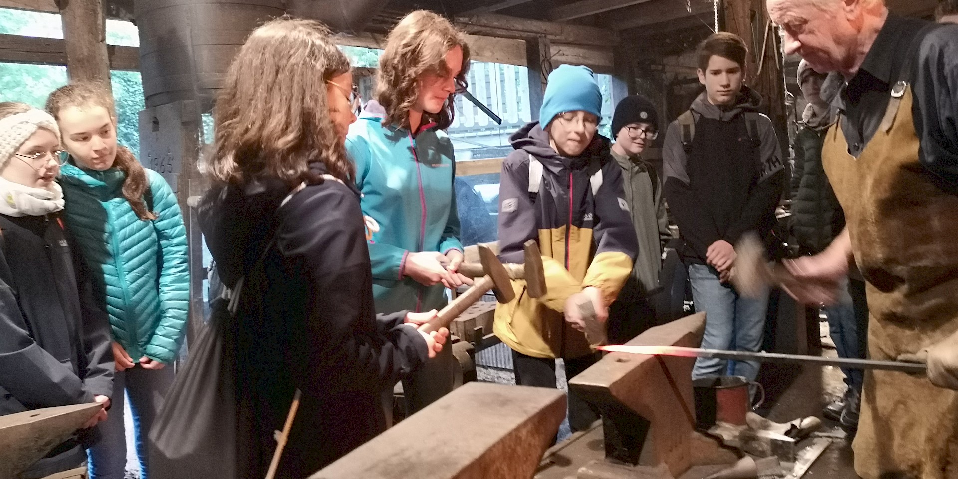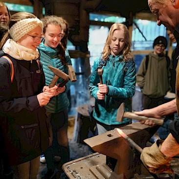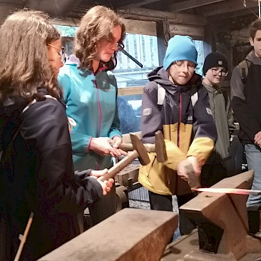 Schmied Karl lehrte uns im Anschluss die seit Jahrhunderten bestehende Tradition der Metallbearbeitung. Zu guter Letzt durften wir alle unser Geschick am Amboss unter Beweis stellen.