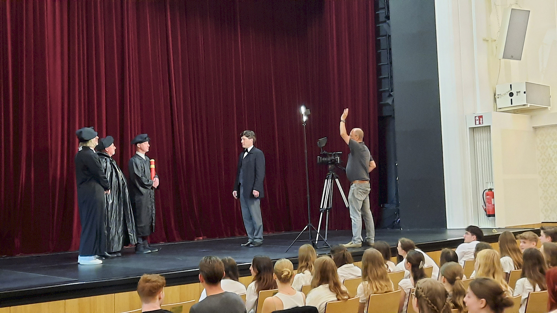 Hollywood-Feeling stellte sich schließlich bei der Filmpremiere im BG/BRG Anton-Brucknerstraße am 22. November 2024 in Wels ein: Für das Premierenpublikum wurde der rote Teppich ausgerollt, die Besucher*innen strömten in den Saal und zeigten sich begeistert von der gelungenen Produktion. Der Applaus war der schönste Lohn für alle Beteiligten.