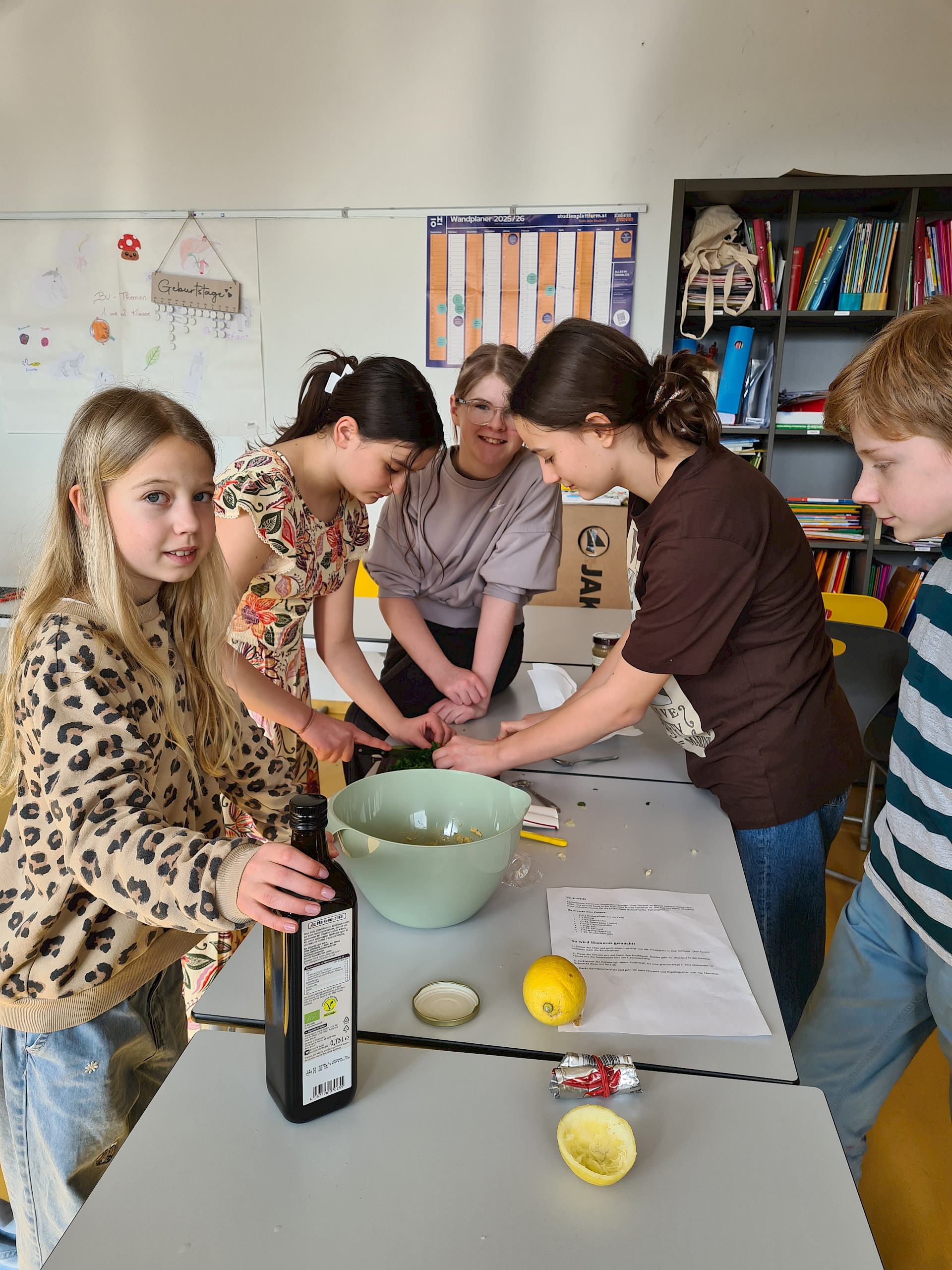Das dachten sich die Schüler*innen der 2E am 27. Februar 2026 vielleicht auch, als sie im Zuge des Geschichteunterrichts zwei ägyptische Gerichte in kleinen Gruppen nachkochten: Hummus und Feigenmus.