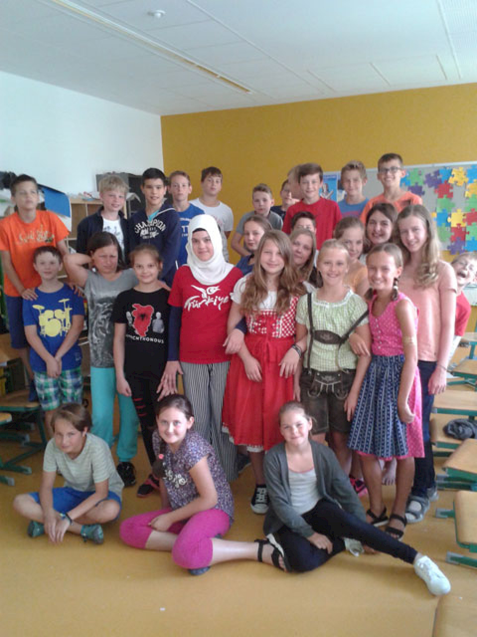 Es gibt wohl kaum idealere Voraussetzungen für ein Multikulti-Sprachenprojekt als in der 1E-Klasse, wird sie doch von Schüler*innen ganz unterschiedlicher Muttersprachen besucht: Albanisch, Bosnisch, Kroatisch, Französisch, Portugiesisch, Türkisch und Ungarisch. Am Montag, dem 4.Juli 2016 war es dann soweit: Nach einer Vorstellungsrunde, in der unsere Schüler*innen mit Migrationshintergrund ihren sprachlichen und familiären Background skizzierten, hatten alle Schüler*innen die Gelegenheit, einen Mini-Sprachkurs bei einem der Native Speaker zu besuchen. Sogar die Gebärdensprache stand auf dem Programm.