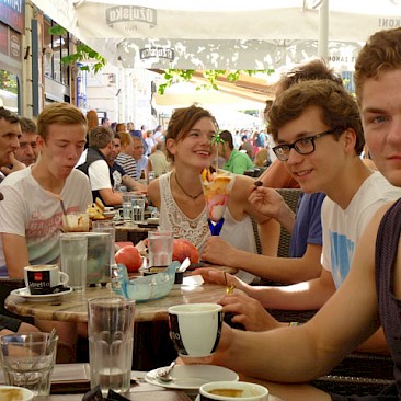 Neben den kulturellen Aspekten wollten wir natürlich auch etwas über die kulinarischen Gepflogenheiten dieser schönen Stadt erfahren. Die zahlreichen Lokale und Cafe´s luden zum Verweilen ein. So besuchten wir an unserem Abschlussabend noch ein gemütliches Restaurant und ließen bei sehr geschmackvollen Pizza-, Nudel- und Fischgerichten die wunderschöne Meeresbiologische Woche bei Sonnenuntergang ausklingen.