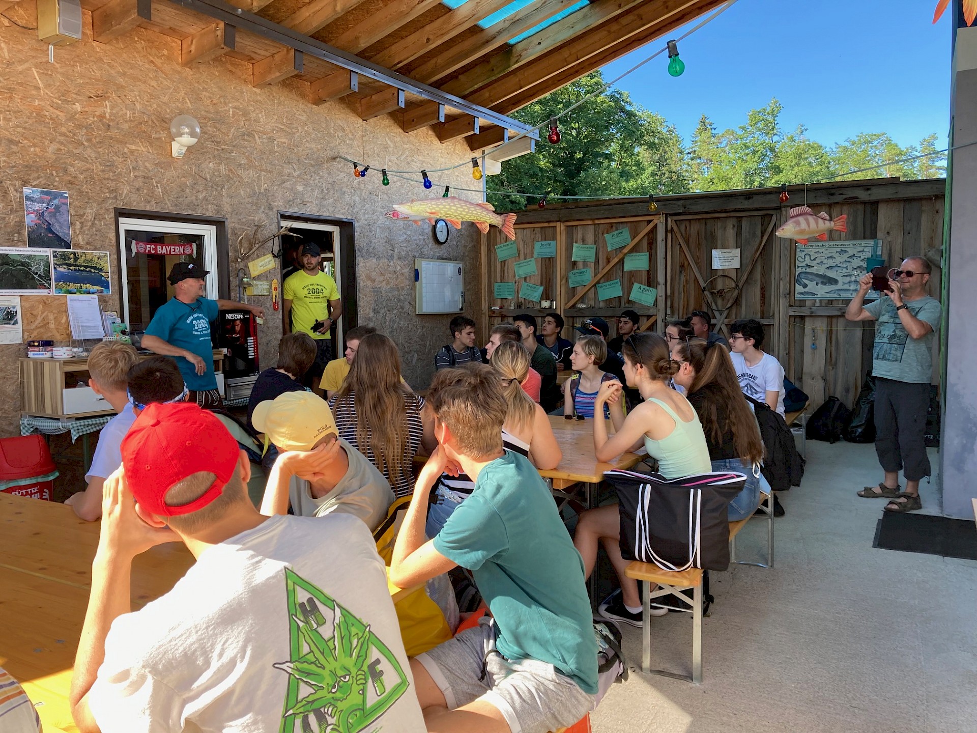 Aus diesem Grund machten wir uns für den Projekttag in den Süden unseres Bundeslandes auf, um den Tag unter das Motto „Fluss- und Seenlandschaften“ zu stellen. Wir fuhren also nach Roitham, wo wir in der Tauchbasis „Magic Dive“ eine kurze Einführung ins Flussschnorcheln erhielten. Nachdem alle Schüler*innen optimal mit Schnorchelausrüstung versorgt waren, machten wir uns in 3 Kleingruppen mit jeweils einem erfahrenen Schnorchelguide auf, den wahrscheinlich schönsten Flussabschnitt der Traun zu erkunden. Auch dieses Mal stand der Ausflug nicht unter dem besten Stern, denn eigentlich hätten wir die Tour unterhalb des Kraftwerkes Roitham gebucht. Wir erwarteten glasklares, türkises Wasser und unterirdische Flusslandschaften sowie märchenhaft ausgeschwemmte Felswände. Leider wurden die Schleusen des Kraftwerkes an diesem Morgen geöffnet, weshalb wir leider auf die Tour unterhalb des Kraftwerkes Siebenbrunn ausweichen mussten. Wir stellten jedoch schnell fest, dass auch diese Tour einige Highlights zu bieten hatte. Wir konnten zahlreiche Fische in ihrem angestammten Lebensraum beobachten und ließen uns mit der Strömung durch den Fluss treiben.