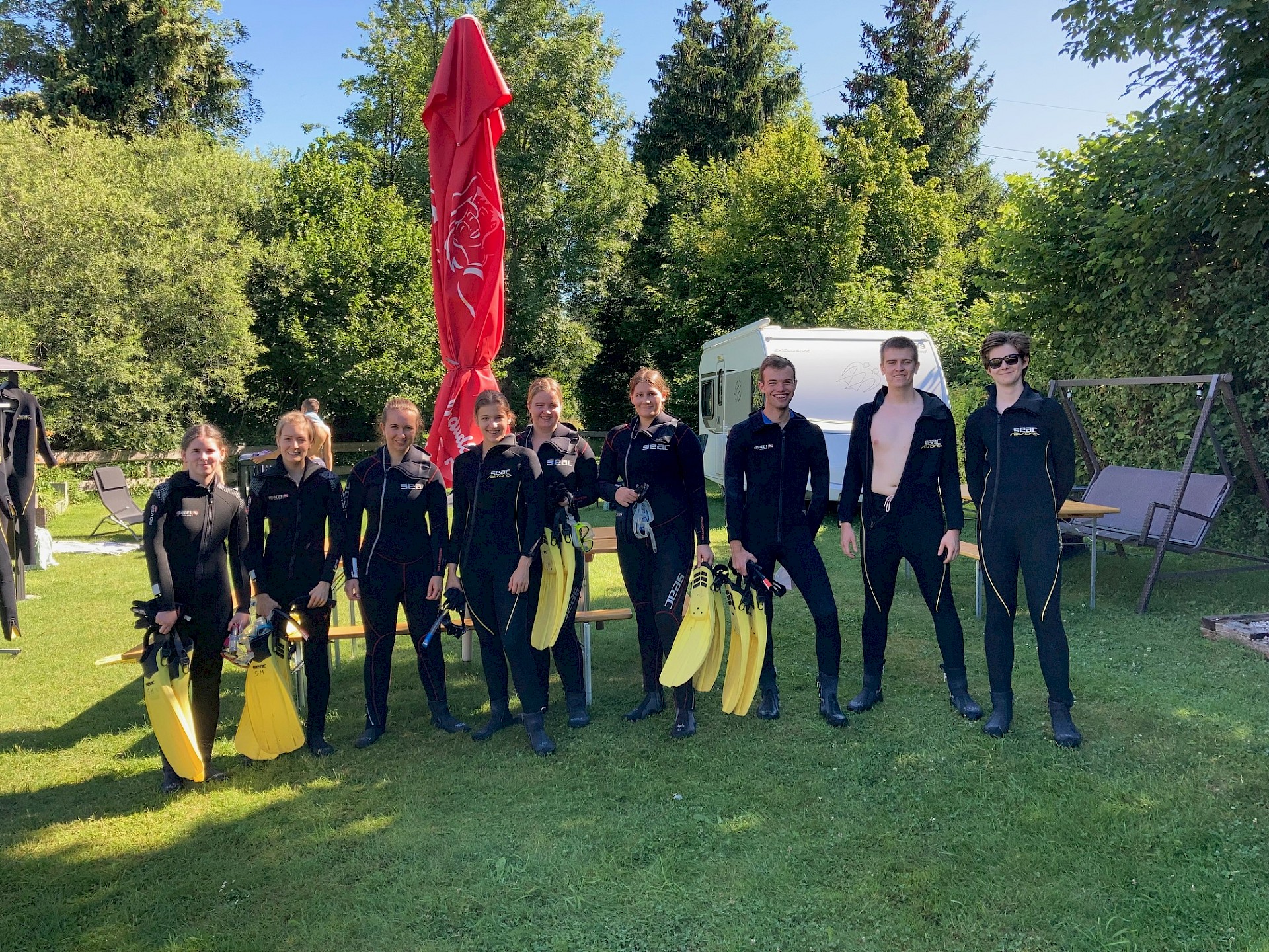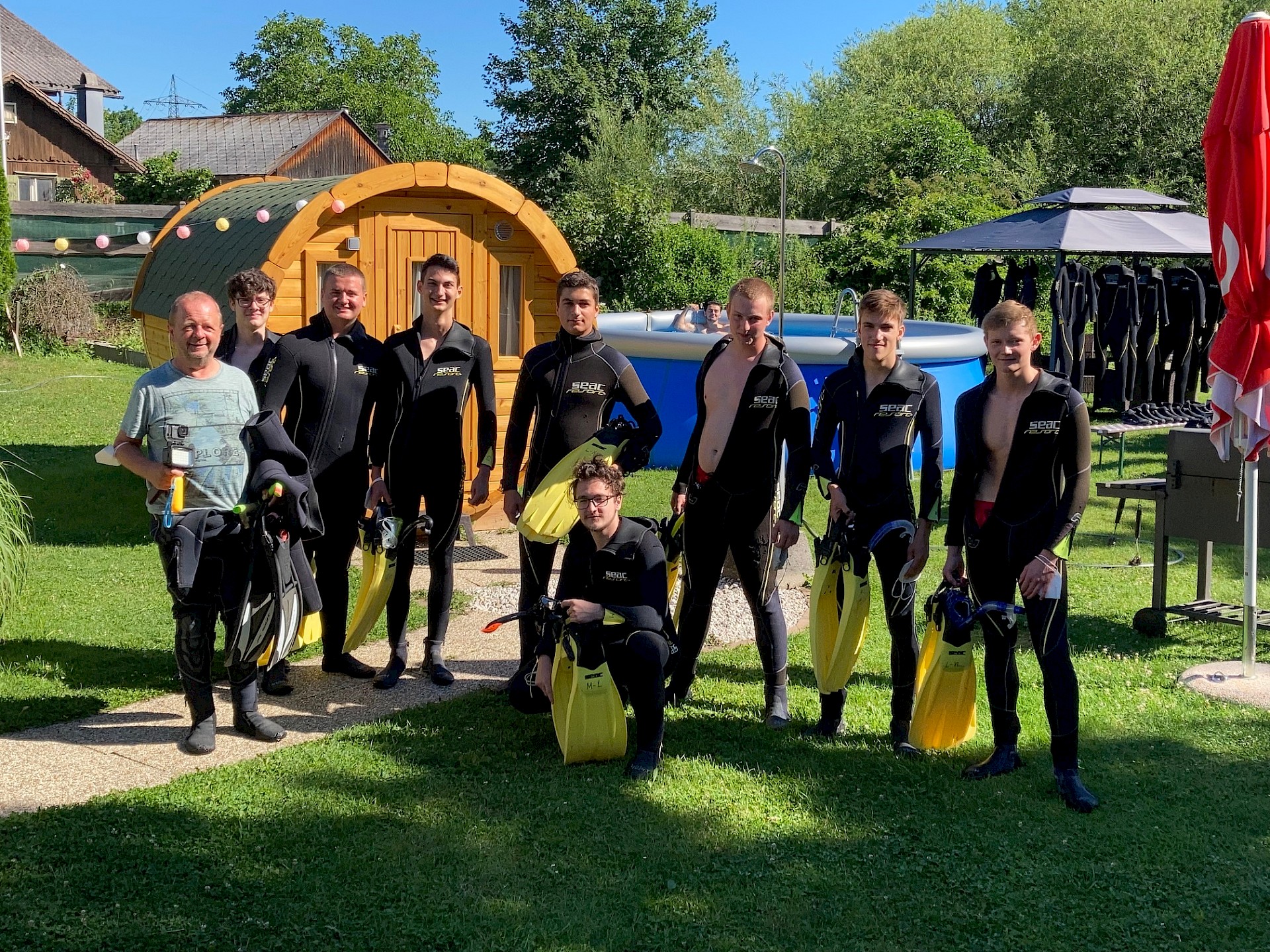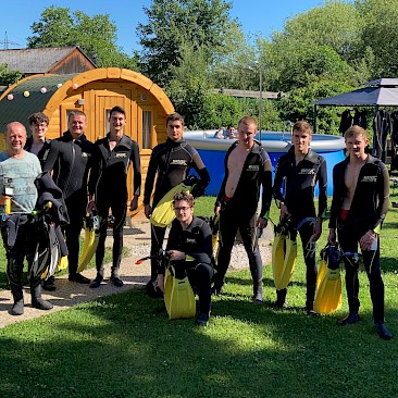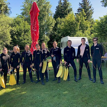 Forellen und Äschen und hin und wieder ein Flusskrebs rundeten das Erlebnis „Scuben in der Traun“ ab. Ziemlich ausgefroren, aber mit vielen neuen Eindrücken in Gepäck, verließen wir den Fluss wieder und machten uns zum gemütlichen Teil des Tages auf: Baden im Attersee.
