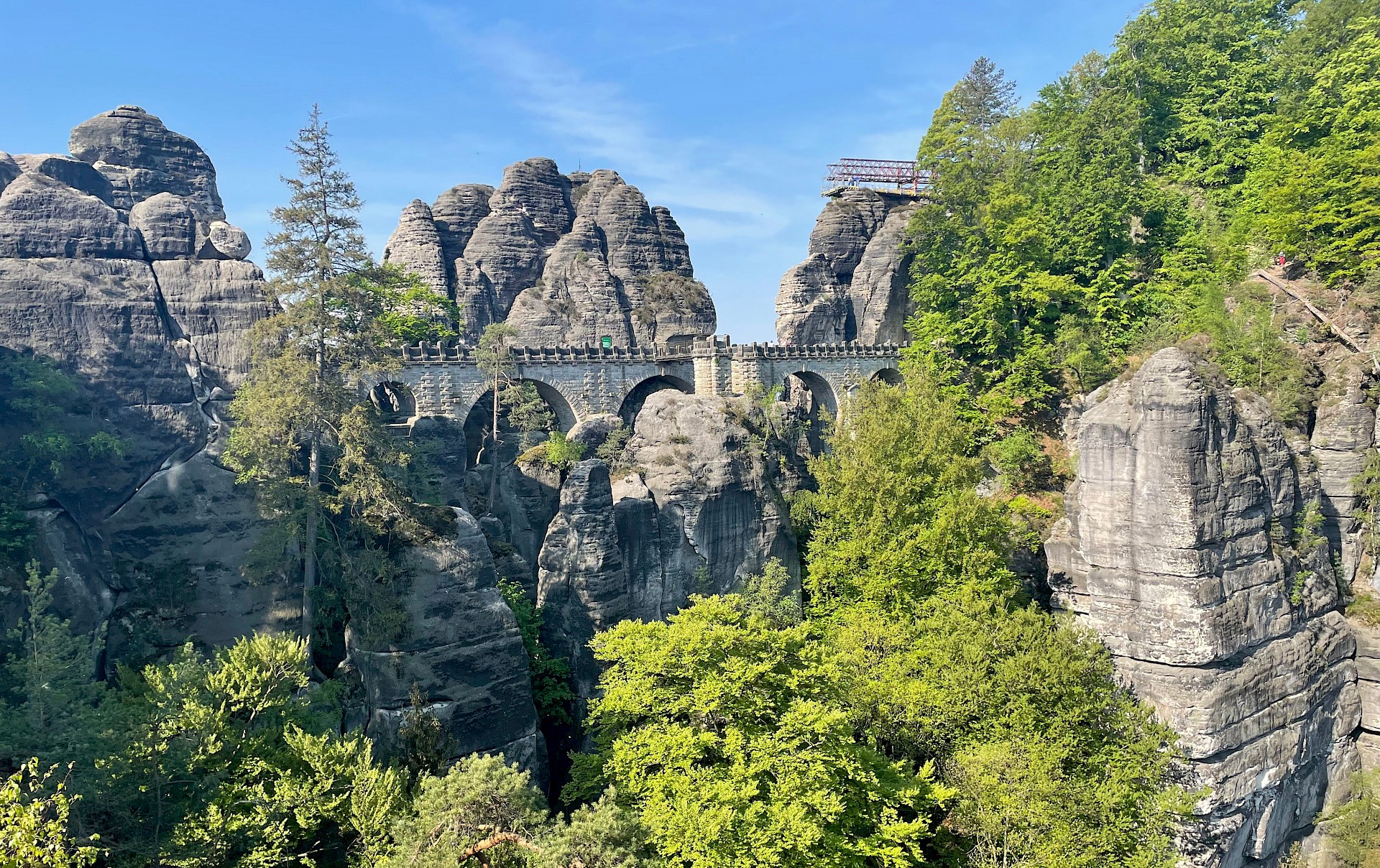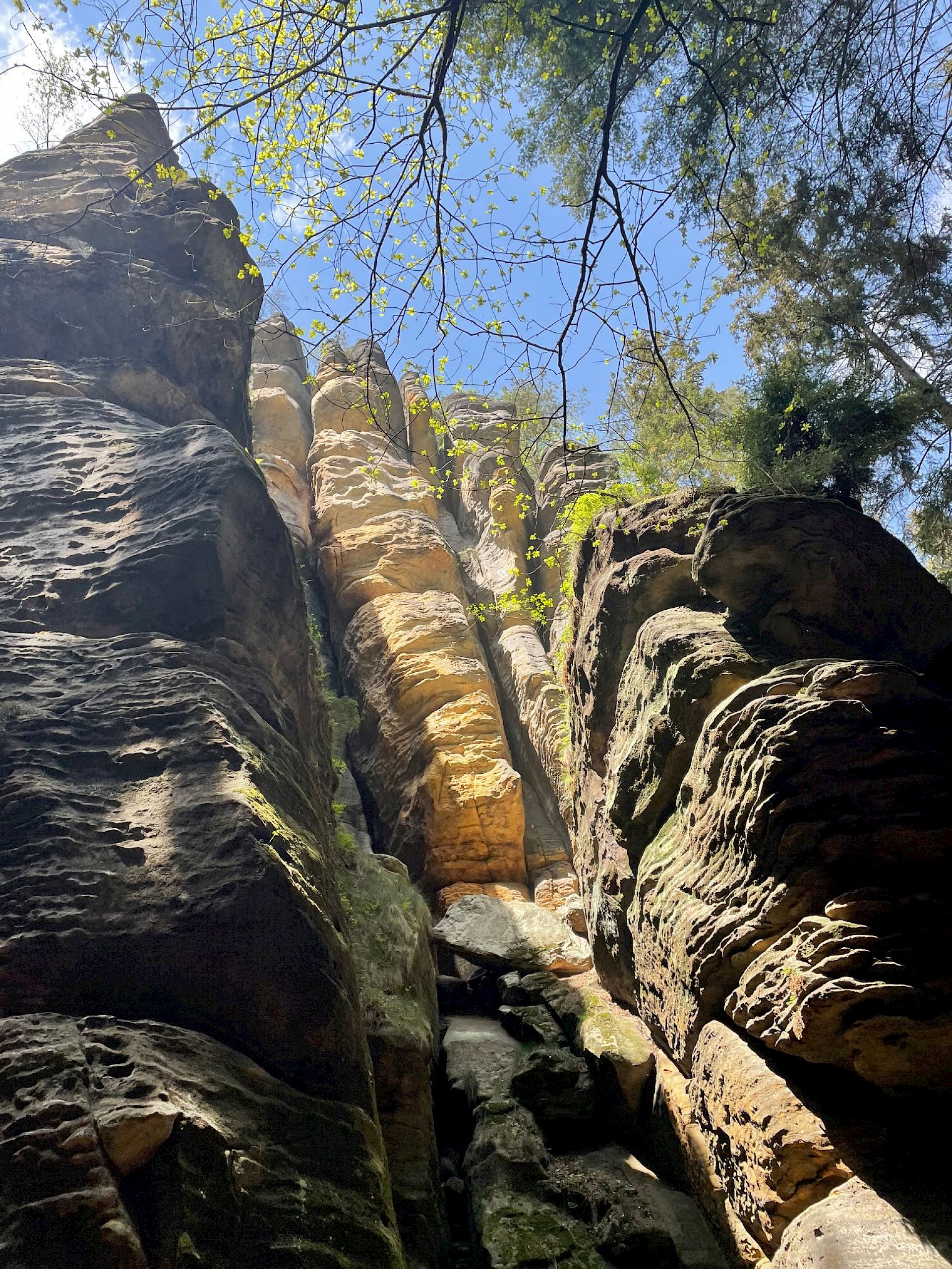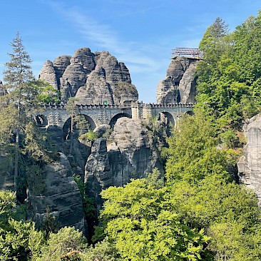 Von dort ging es am nächsten Tag auch gleich zu Fuß los in die Felsenwelt. Wir wanderten zunächst durch zahlreiche Schluchten zur Bastei. Die Bastei ist einer der markantesten Aussichtspunkte der Sächsischen Schweiz und zählt pro Jahr etwa 1,5 Millionen Besucher. Es gibt in den deutschen Nationalparks keinen anderen Punkt mit einer so hohen Besucherdichte. Von dort ging es durch den Uttewalder Grund weiter bis zur entzückenden Stadt Wehlen an der Elbe.