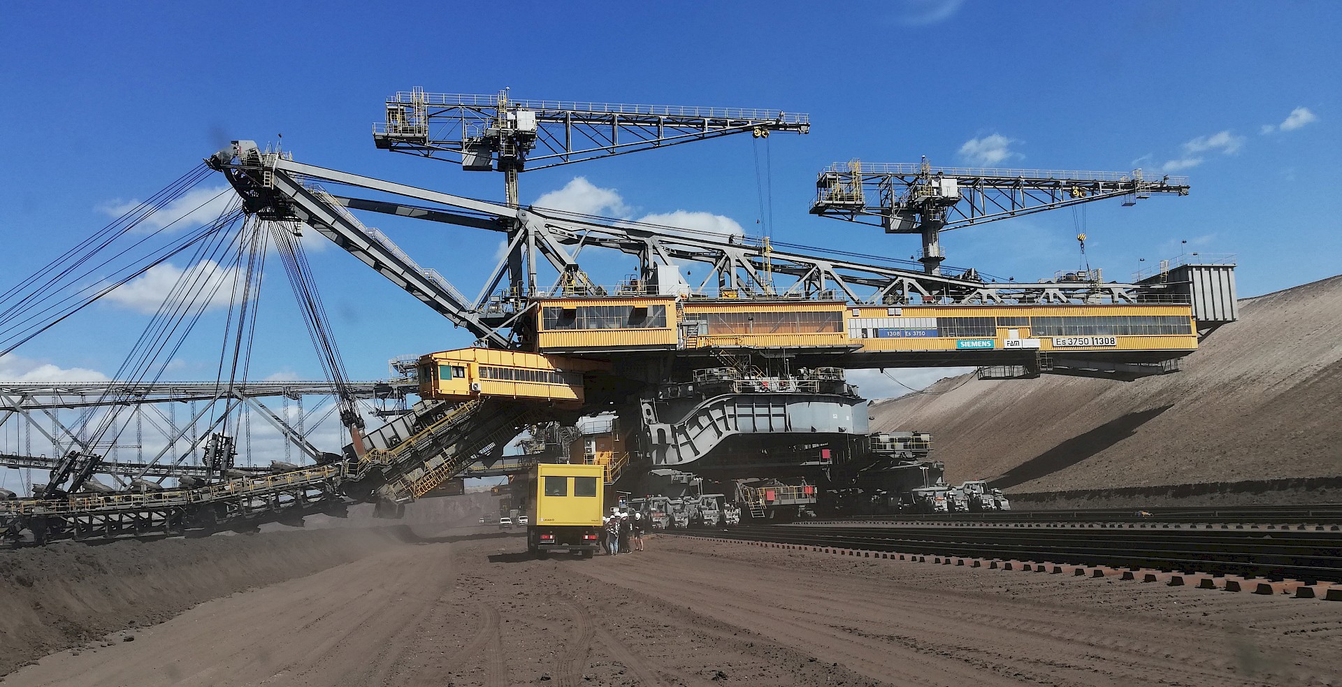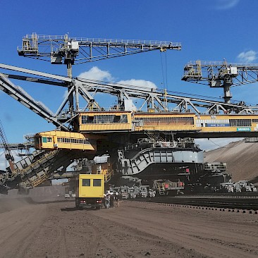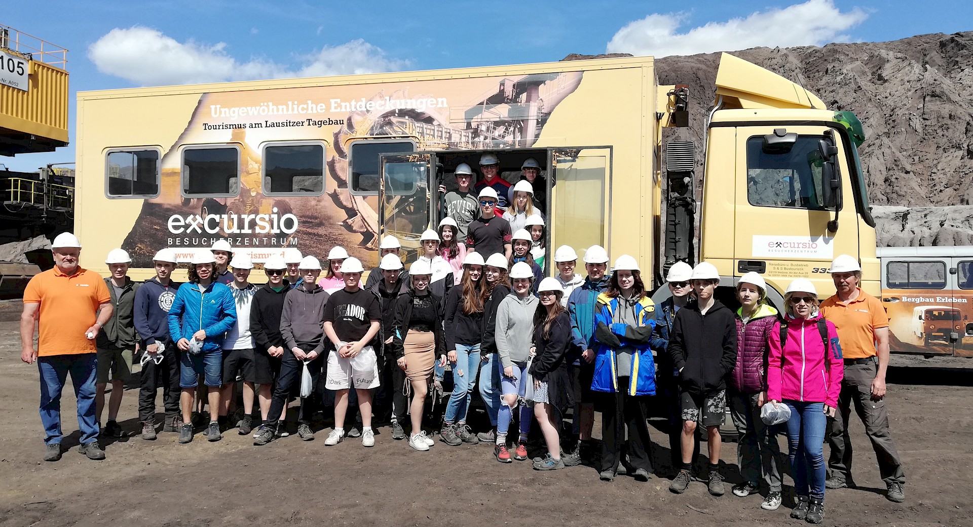 Wir erkundeten auch die Lausitzer Seenplatte. Dort konnten wir bei einer mehrstündigen Abenteuerführung den Braunkohletagebau Welzow-Süd besichtigen. In dem für österreichische Verhältnisse unvorstellbar riesigen Bergwerk werden aus 2 Flözen bis zu 20 Millionen Tonnen Braunkohle im Jahr gefördert. Mit geländegängigen Fahrzeugen fuhren wir zu allen Großgeräten und konnten dabei die einzelnen Abbauschritte live bei ihrer Arbeit beobachten. Besonders eindrucksvoll war die Abraumförderbrücke F60, die zu den größten weltweit gehört. Insgesamt werden damit pro Jahr 130 Mio. m3 Abraum bewegt. Uns wurden auch die Rekultivierungsmaßnahmen vorgestellt. Nach der Verfüllung der offenen Gruben wird dort wieder Landwirtschaft betrieben und teilweise sogar Wein angebaut.