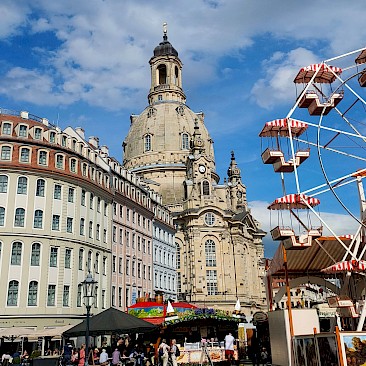 Zu einem Besuch in Sachsen gehört unbedingt auch eine Dampferfahrt mit einem Raddampfer der Sächsischen Dampfschifffahrtsgesellschaft. Der Raddampfer „Pirna“ (Baujahr 1889) brachte uns bei einer beschaulichen Fahrt und feinstem Frühsommerwetter vom Kurort Rathen vorbei an der Festung Königstein und in einem Elbmäander rund um das Wahrzeichen der Sächsischen Schweiz, den Lilienstein, bis nach Bad Schandau. Schließlich konnten wir im Rahmen der Projektwoche auch die Hauptsehenswürdigkeiten von Dresden besichtigen. Alle waren vom Zwinger, der Frauenkirche, der Semperoper und der Altstadt beeindruckt.