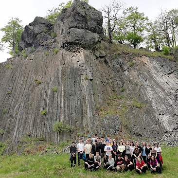 Am Anreisetag fuhren wir zunächst über Linz auf den Spuren der ehemaligen Pferdeeisenbahn nach Budweis in Tschechien und über Ústí nad Labem (Aussig) weiter nach Nordböhmen bis in das Lausitzer Gebirge, wo wir bei einer Wanderung am Goldberg (Zlatý vrch, 627 m) eine geologische Besonderheit von Weltrang studieren konnten. Dort sind nämlich in einem alten Basaltsteinbruch mehrere tausend perfekt ausgebildete Basaltsäulen zu bewundern. Sie gehören zu den schönsten überhaupt, deshalb ist der ganze Berg heute als Nationales Naturdenkmal ausgewiesen. Danach besuchten wir nach einem langen Fahrtag in Bad Schandau noch das Nationalparkzentrum. Dort lernten wir bei einer Führung die wichtigsten naturkundlichen Besonderheiten des international bedeutenden Schutzgebietes kennen. Unser Quartier war ein einfacher Gasthof im idyllisch gelegen Polenztal mitten im Nationalparkgebiet.